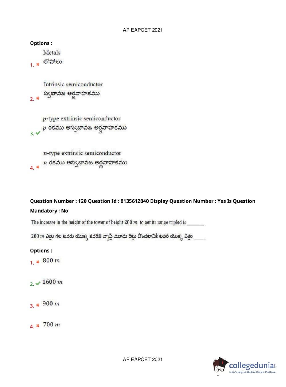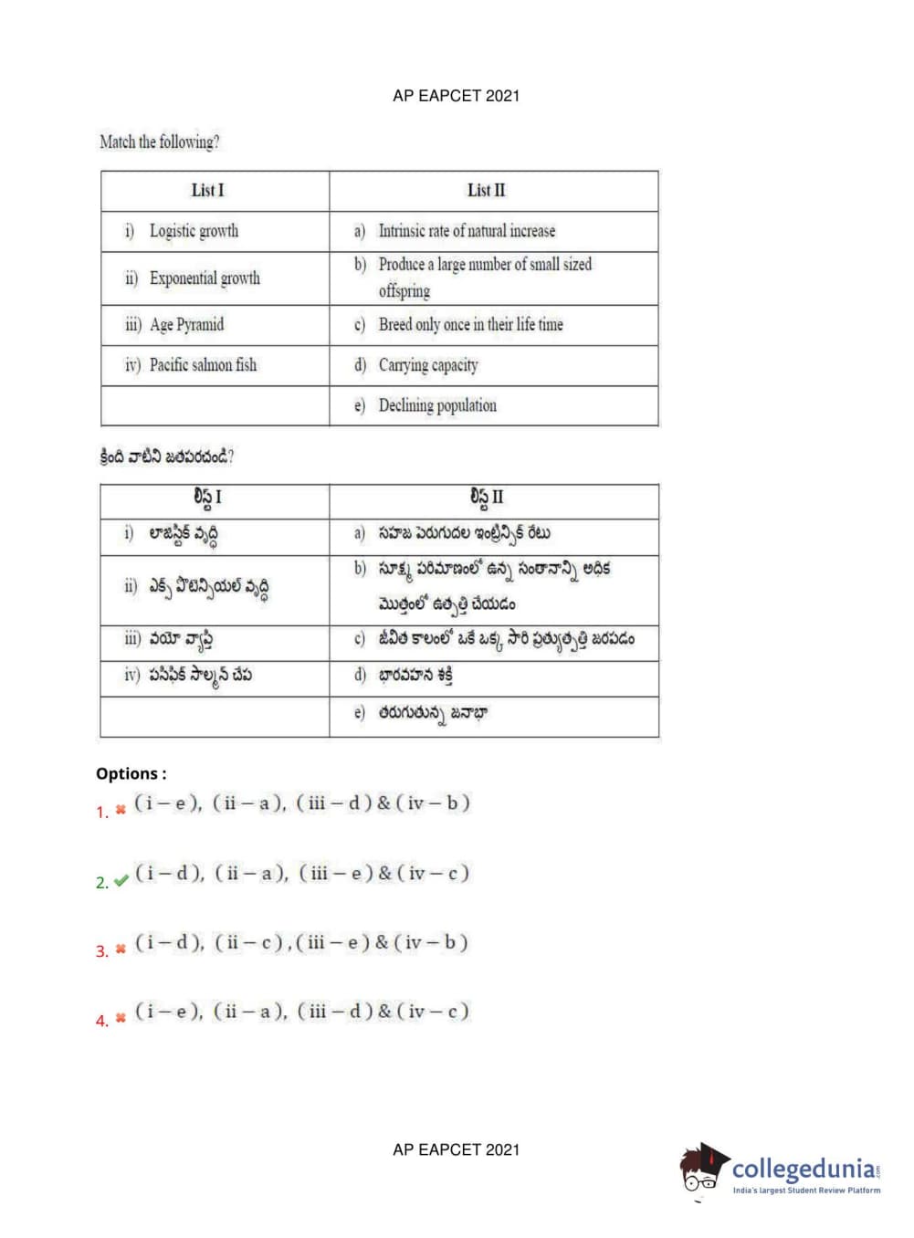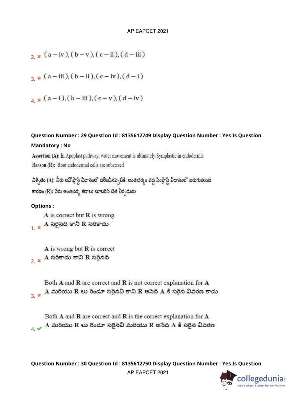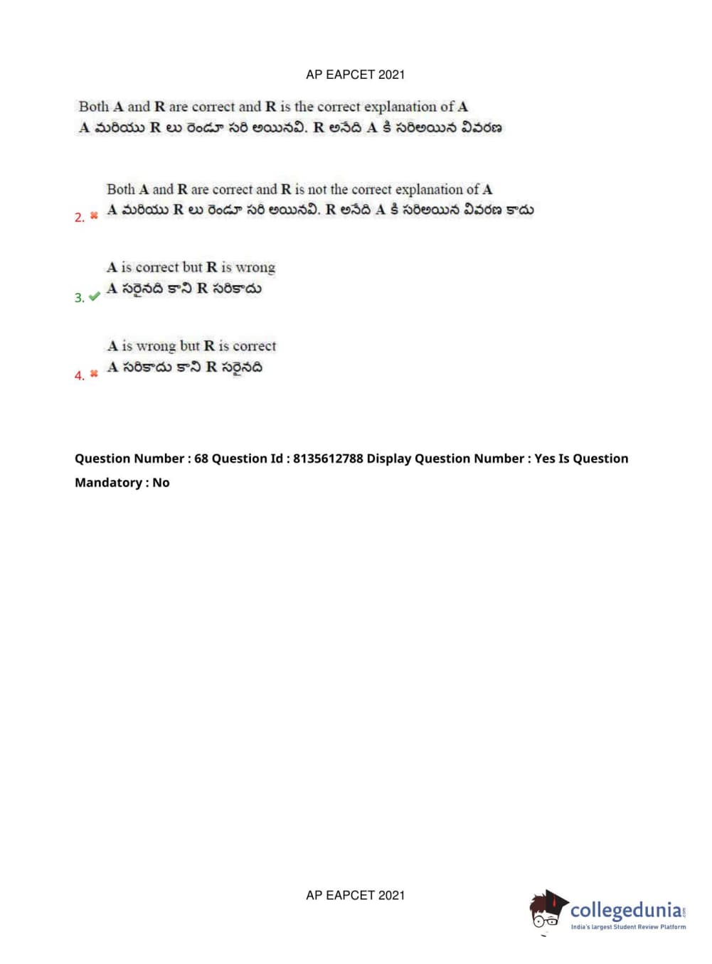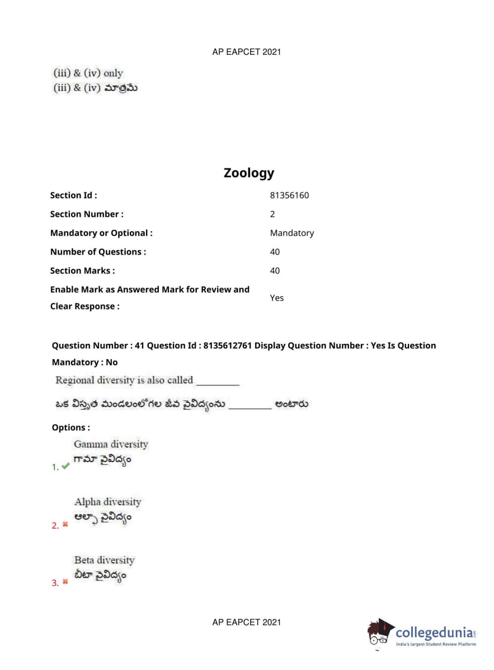 AP EAPCET 2021 Agriculture and Pharmacy Question Paper with Answer Key PDFs Afternoon Session