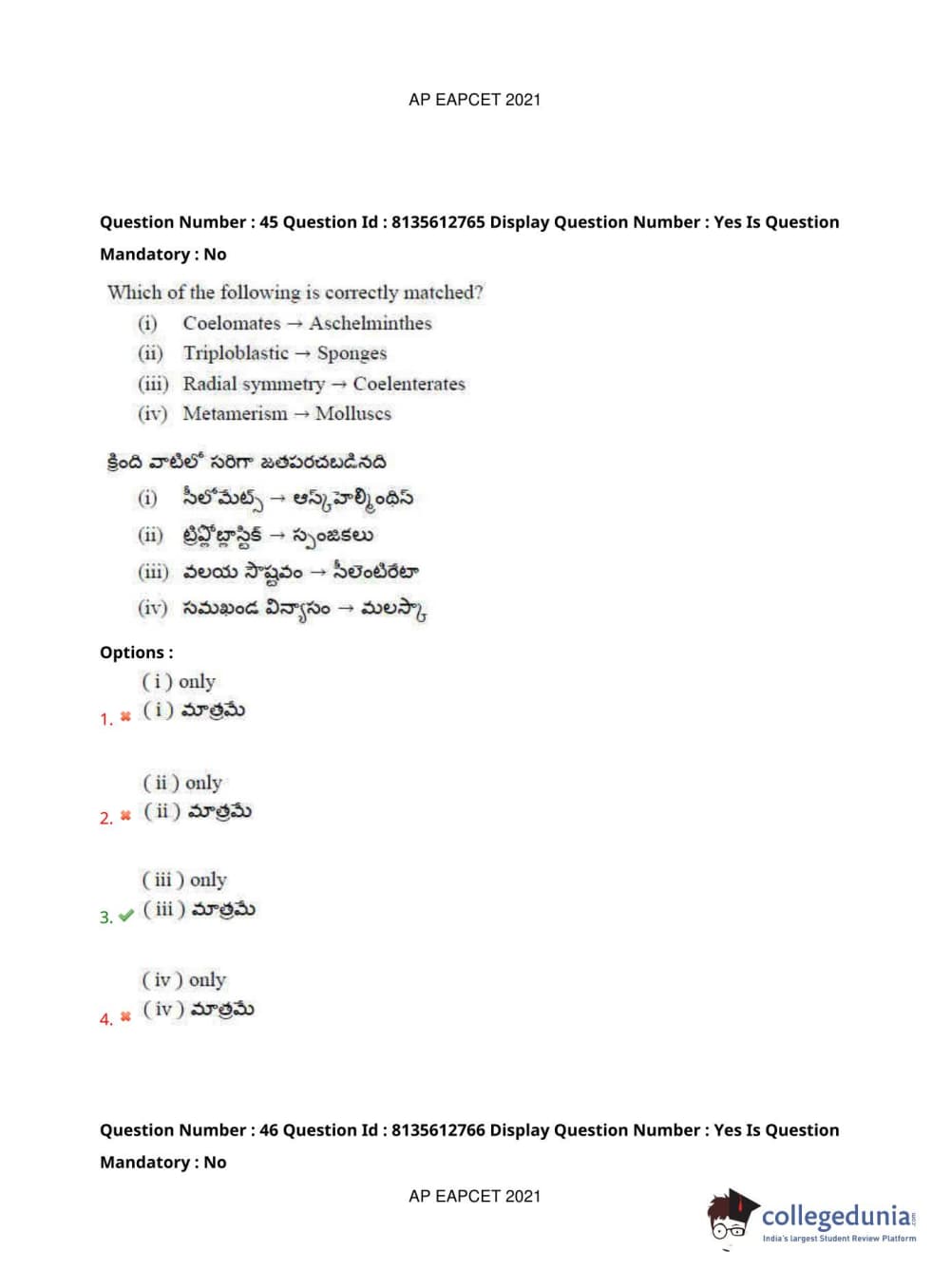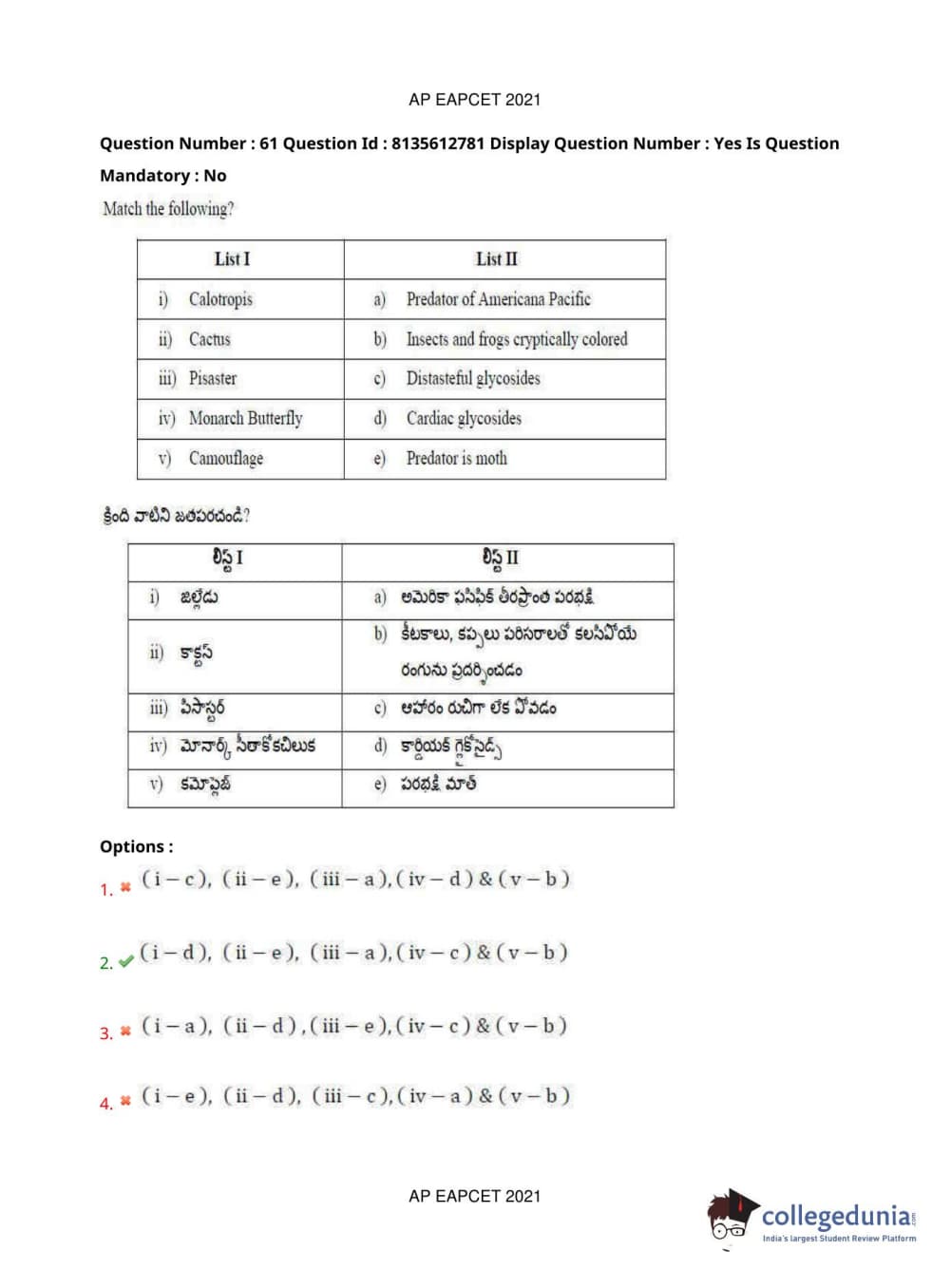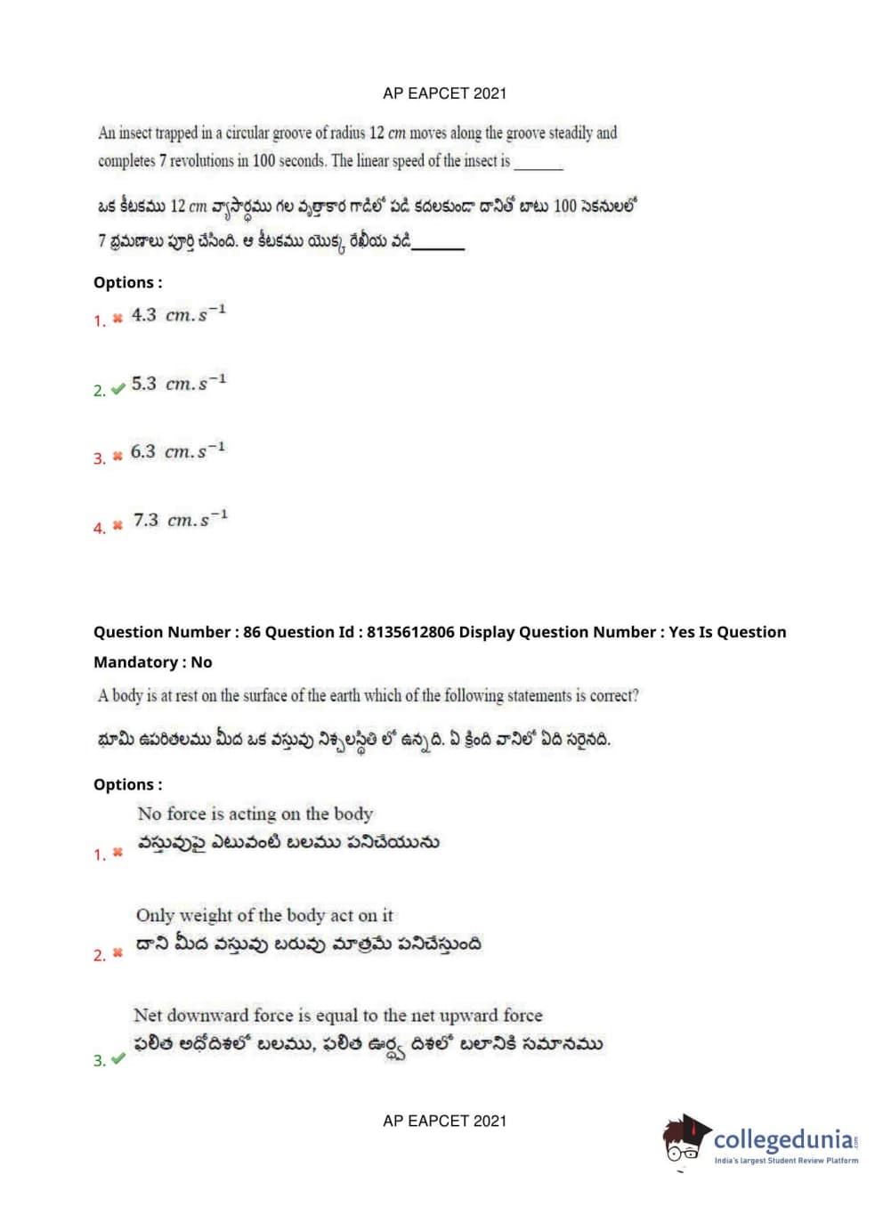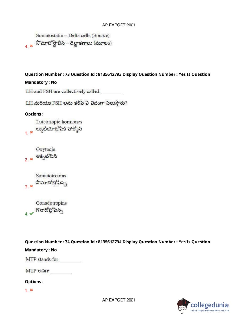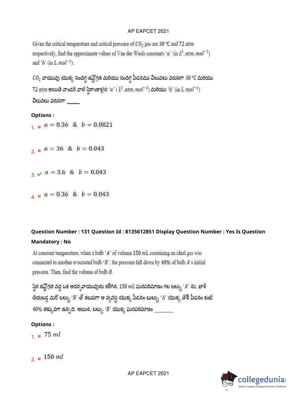 AP EAPCET 2021 Agriculture and Pharmacy Question Paper with Answer Key PDFs Afternoon Session