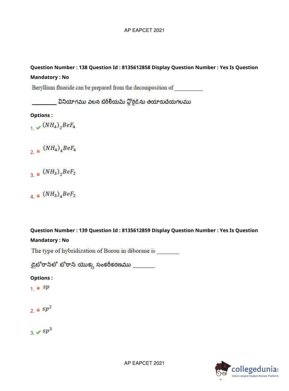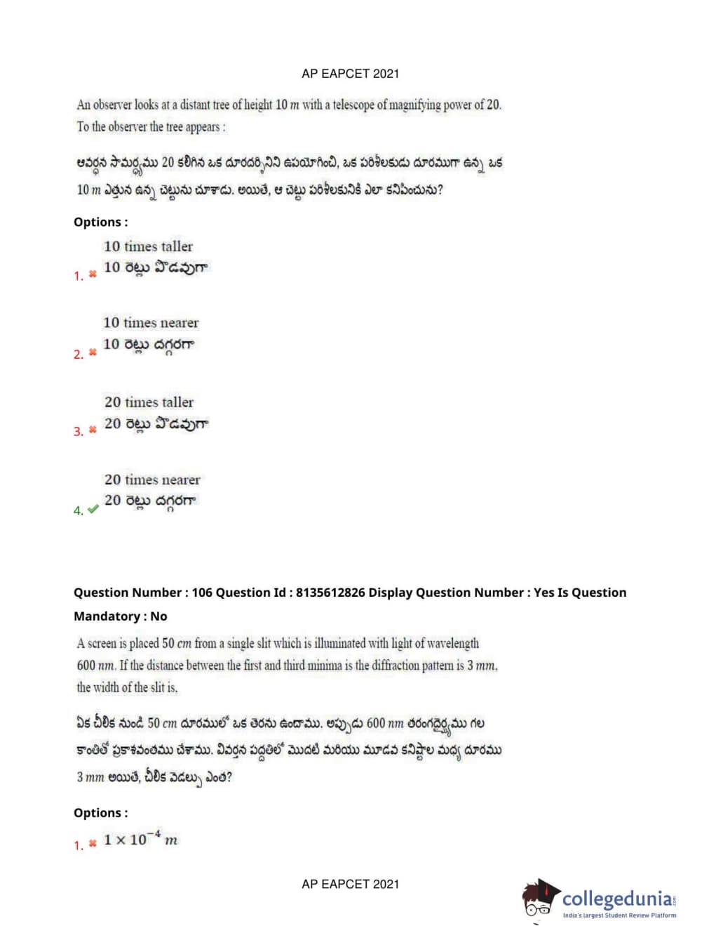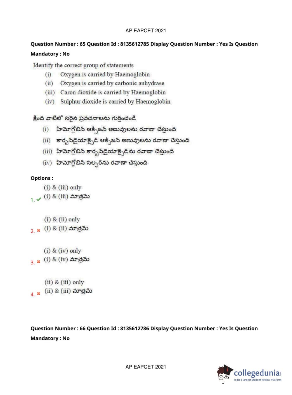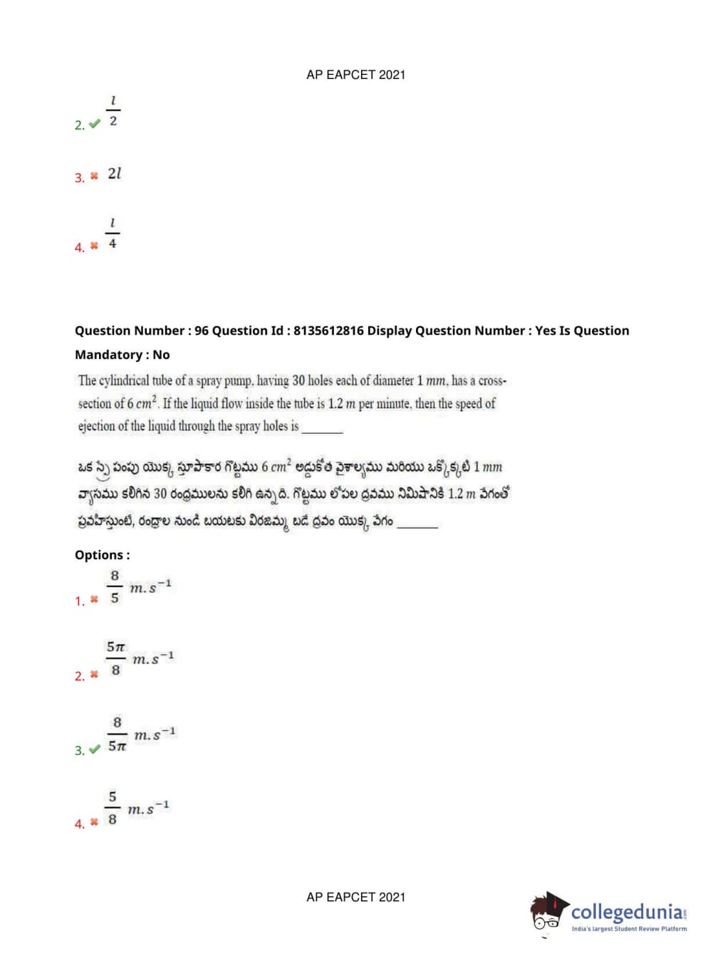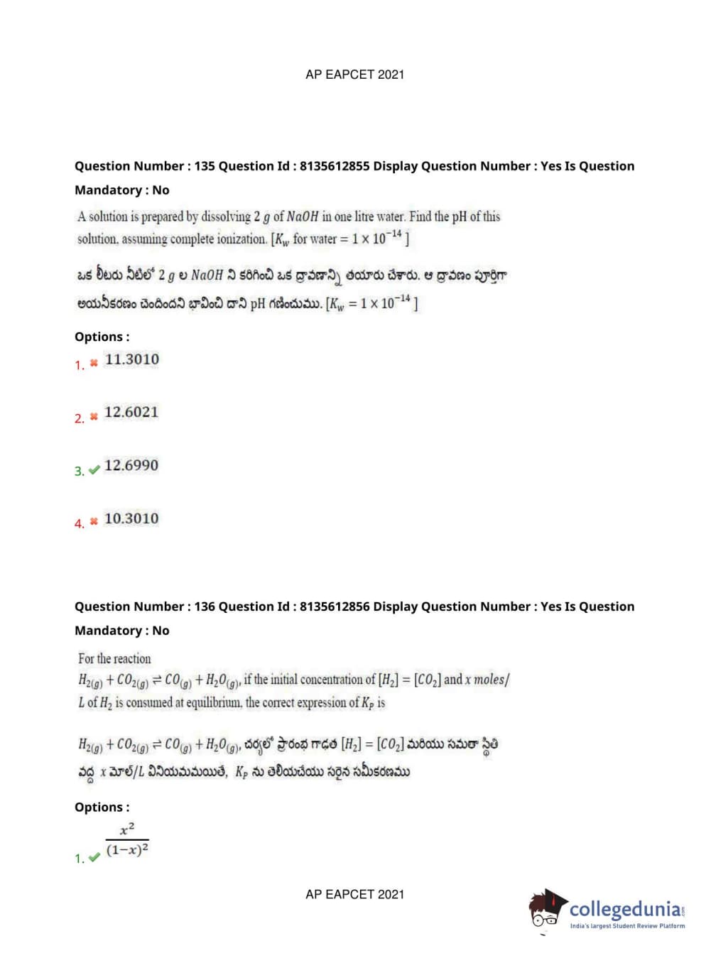AP EAPCET 2021 Agriculture and Pharmacy Question Paper with Answer Key PDFs Afternoon Session