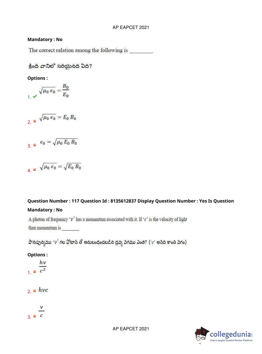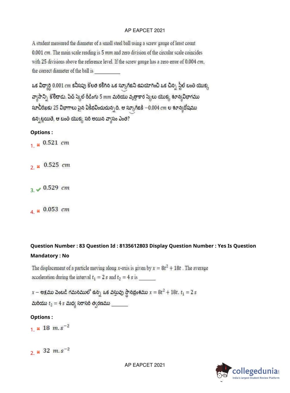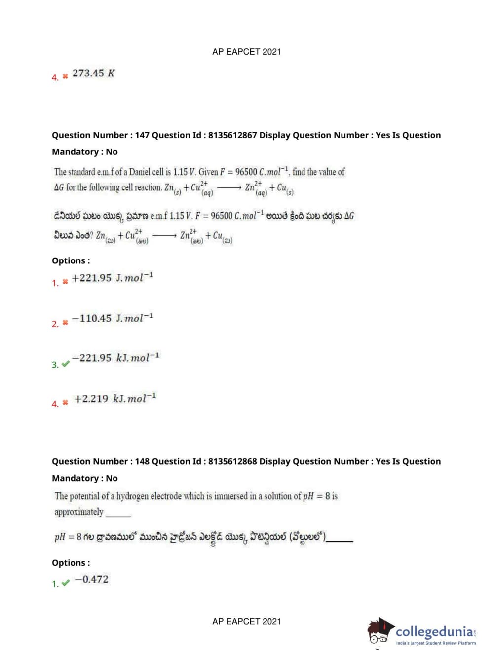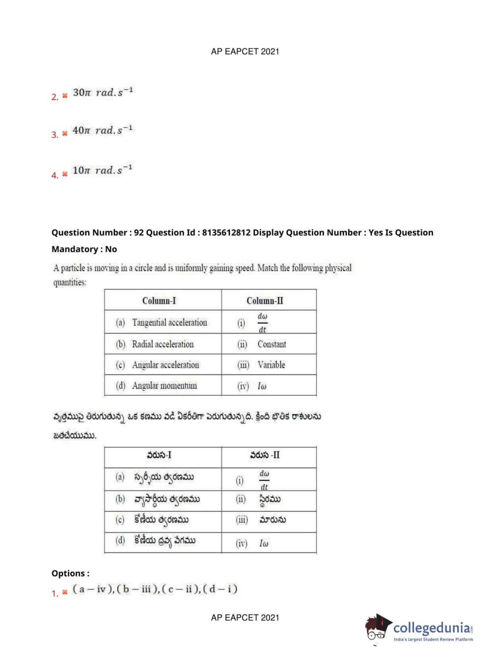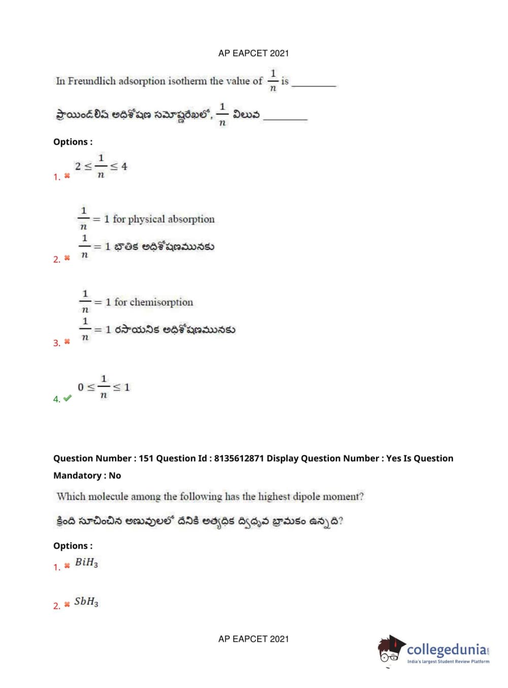 AP EAPCET 2021 Agriculture and Pharmacy Question Paper with Answer Key PDFs Afternoon Session