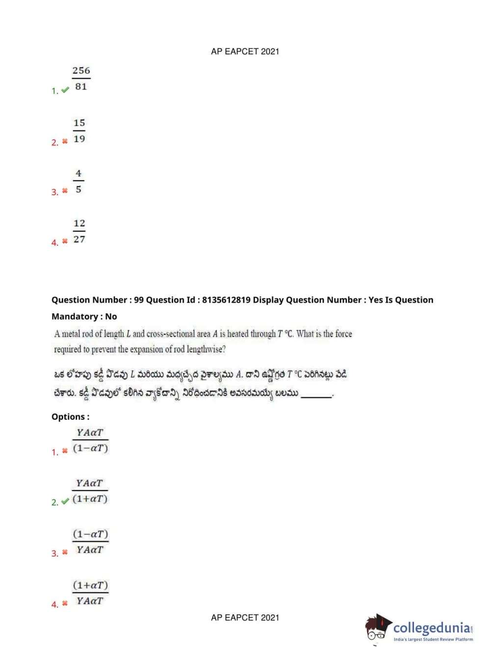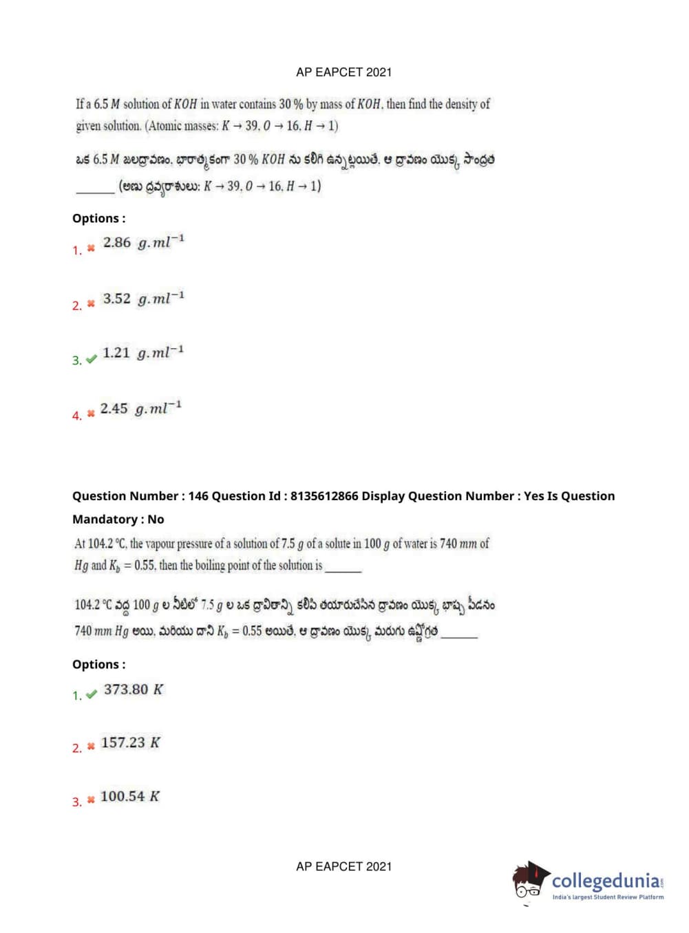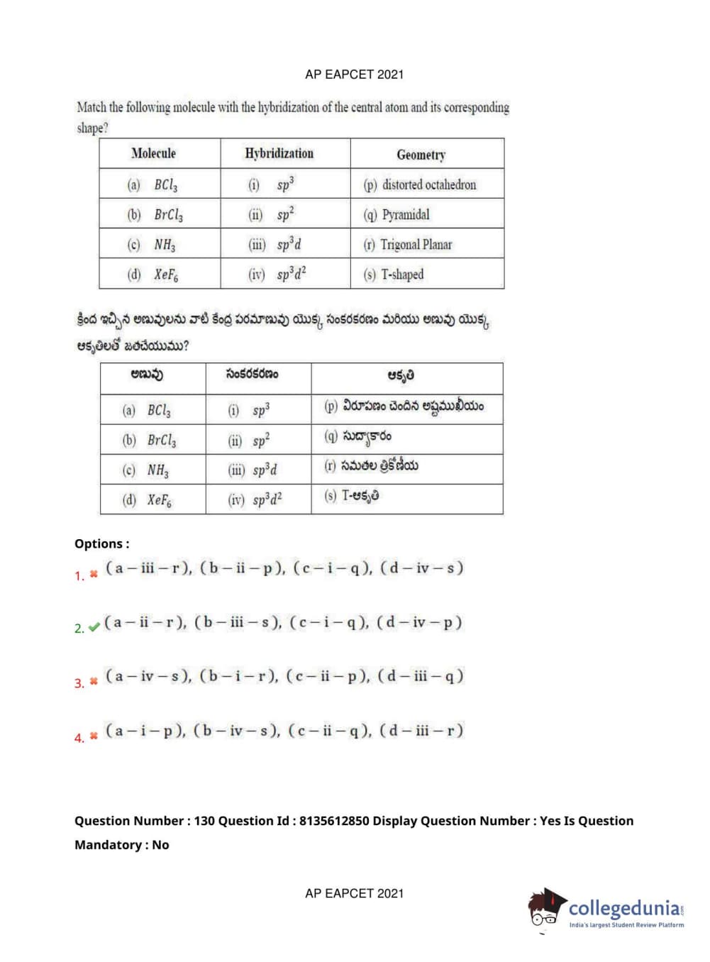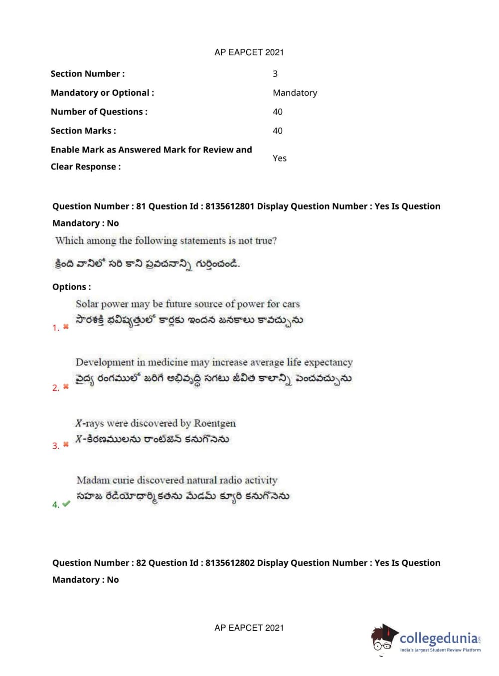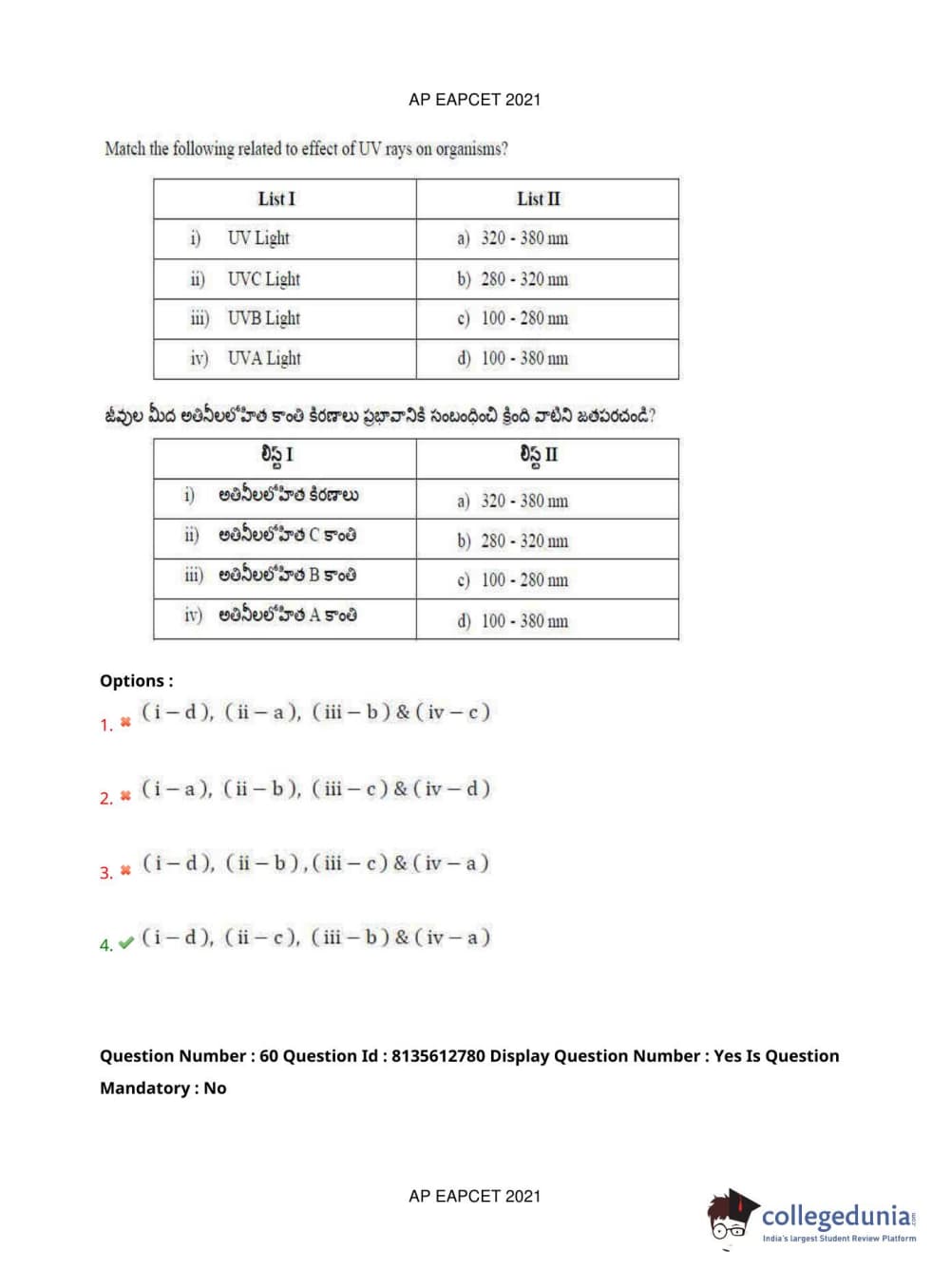 AP EAPCET 2021 Agriculture and Pharmacy Question Paper with Answer Key PDFs Afternoon Session