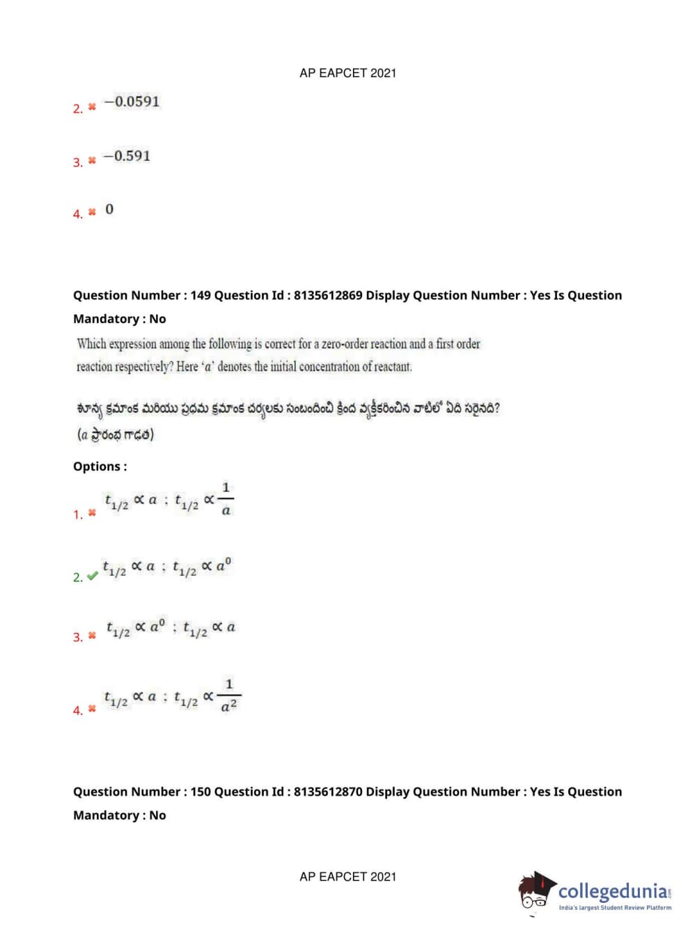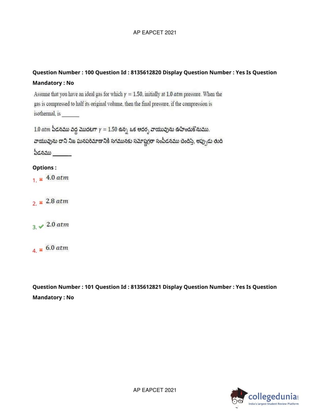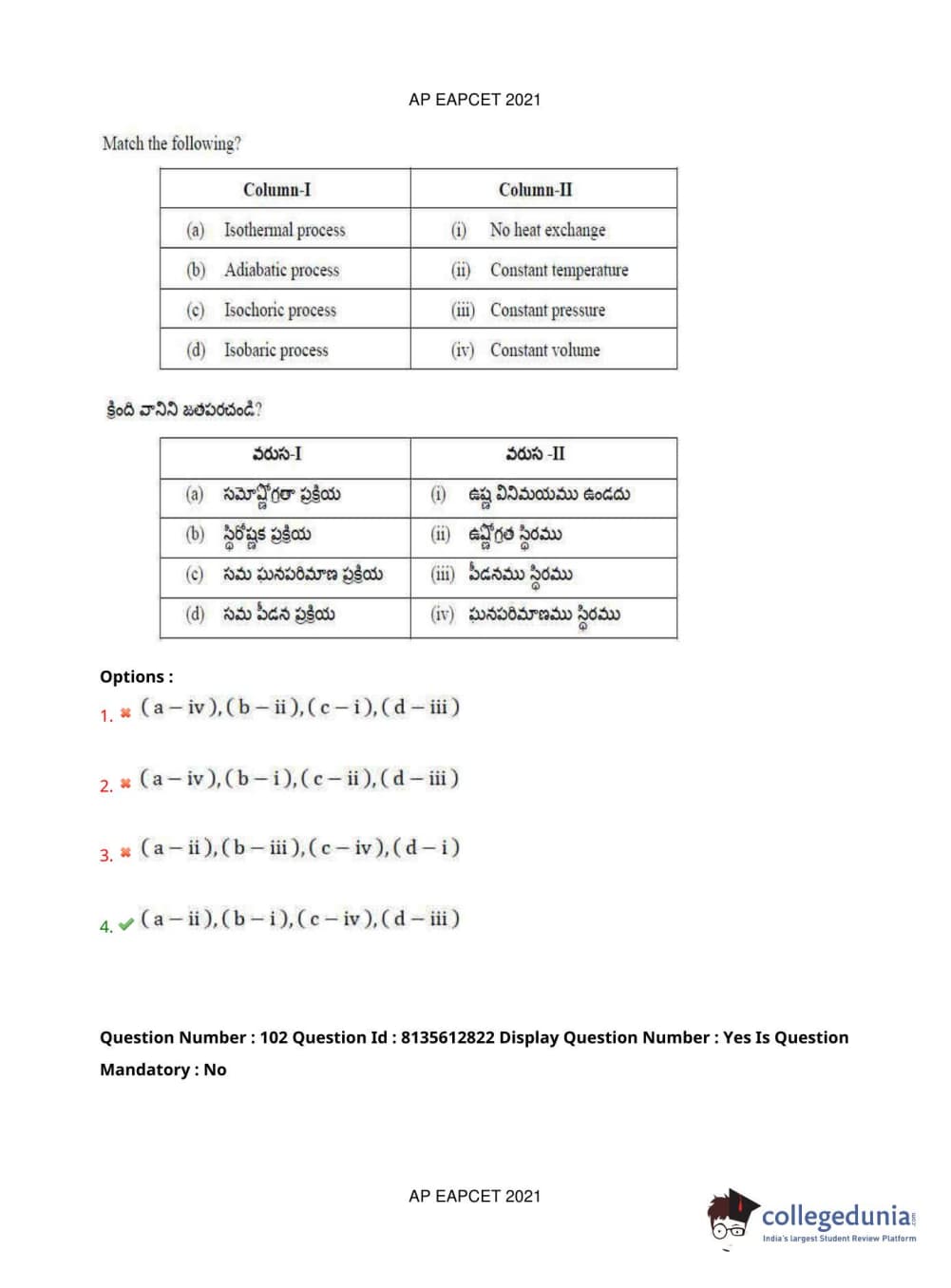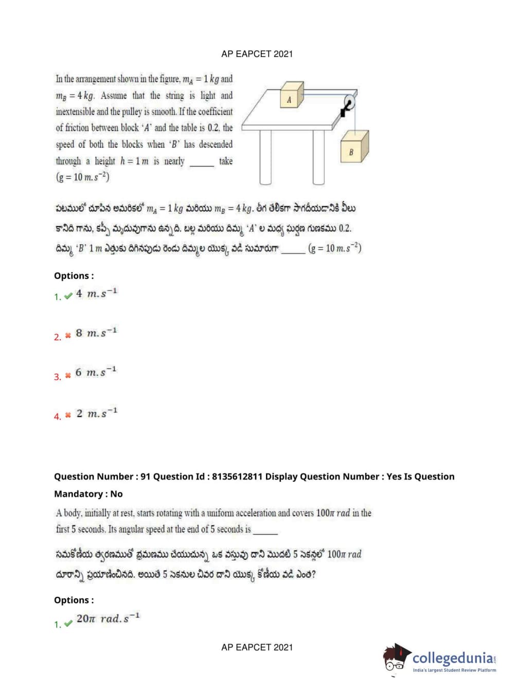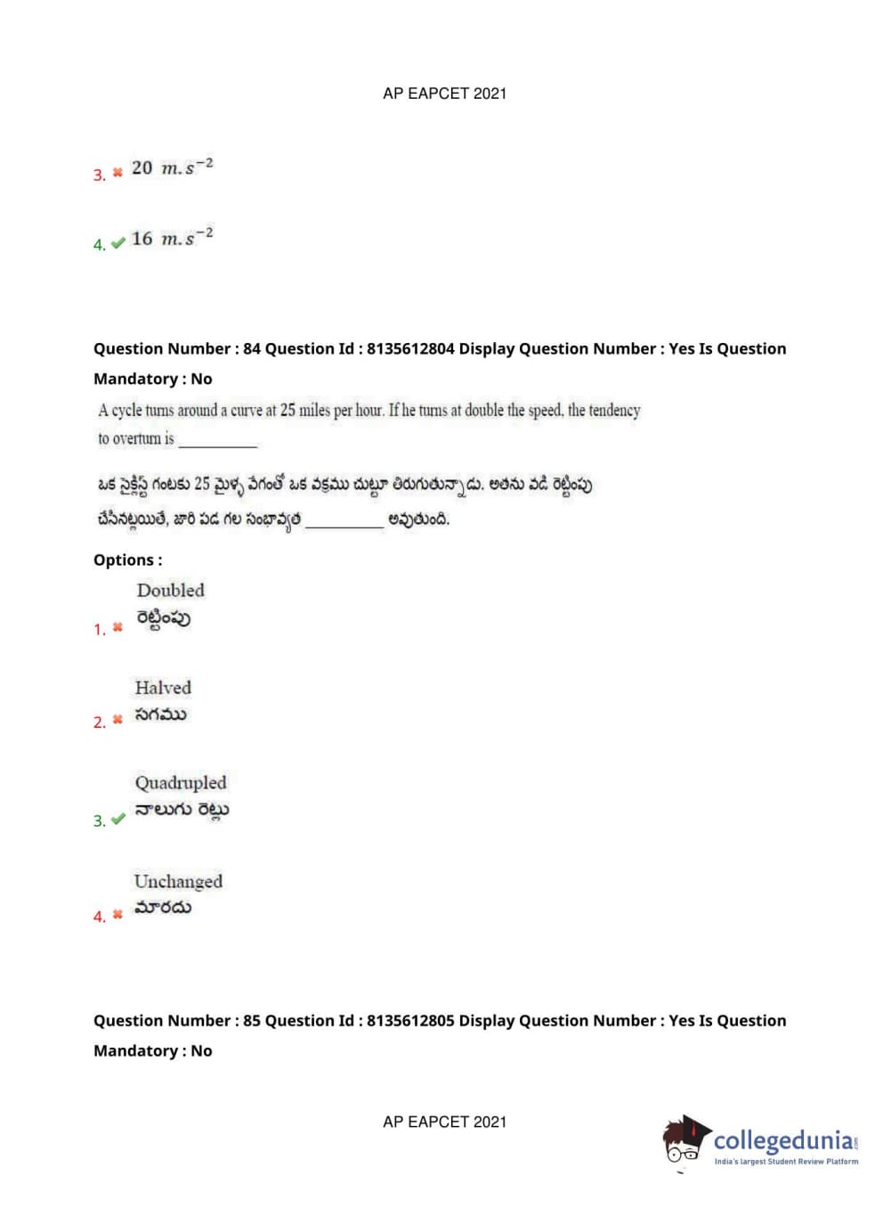 AP EAPCET 2021 Agriculture and Pharmacy Question Paper with Answer Key PDFs Afternoon Session
