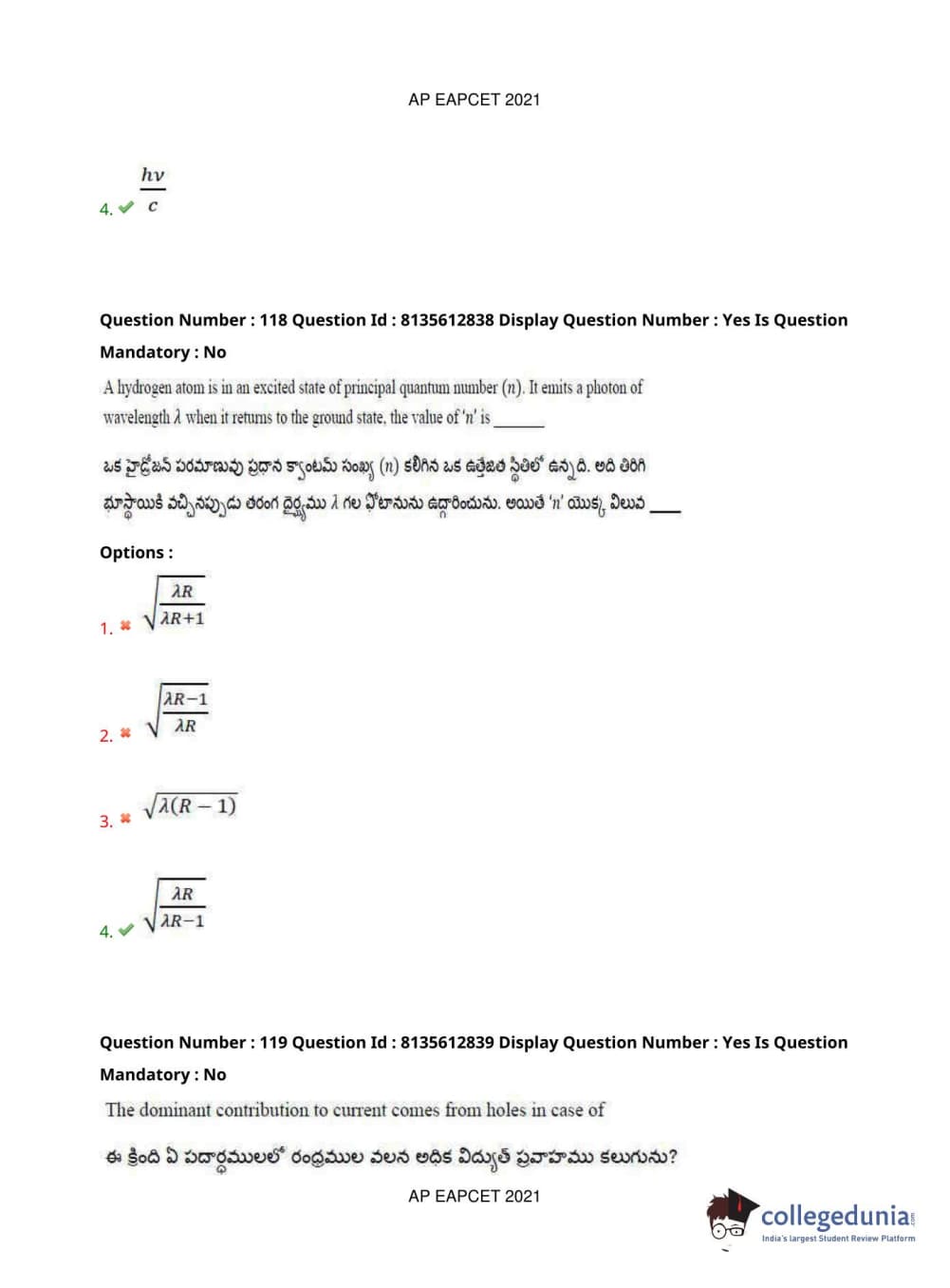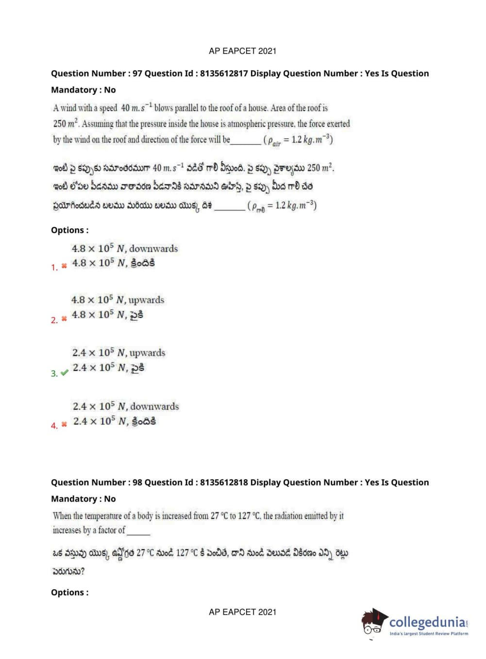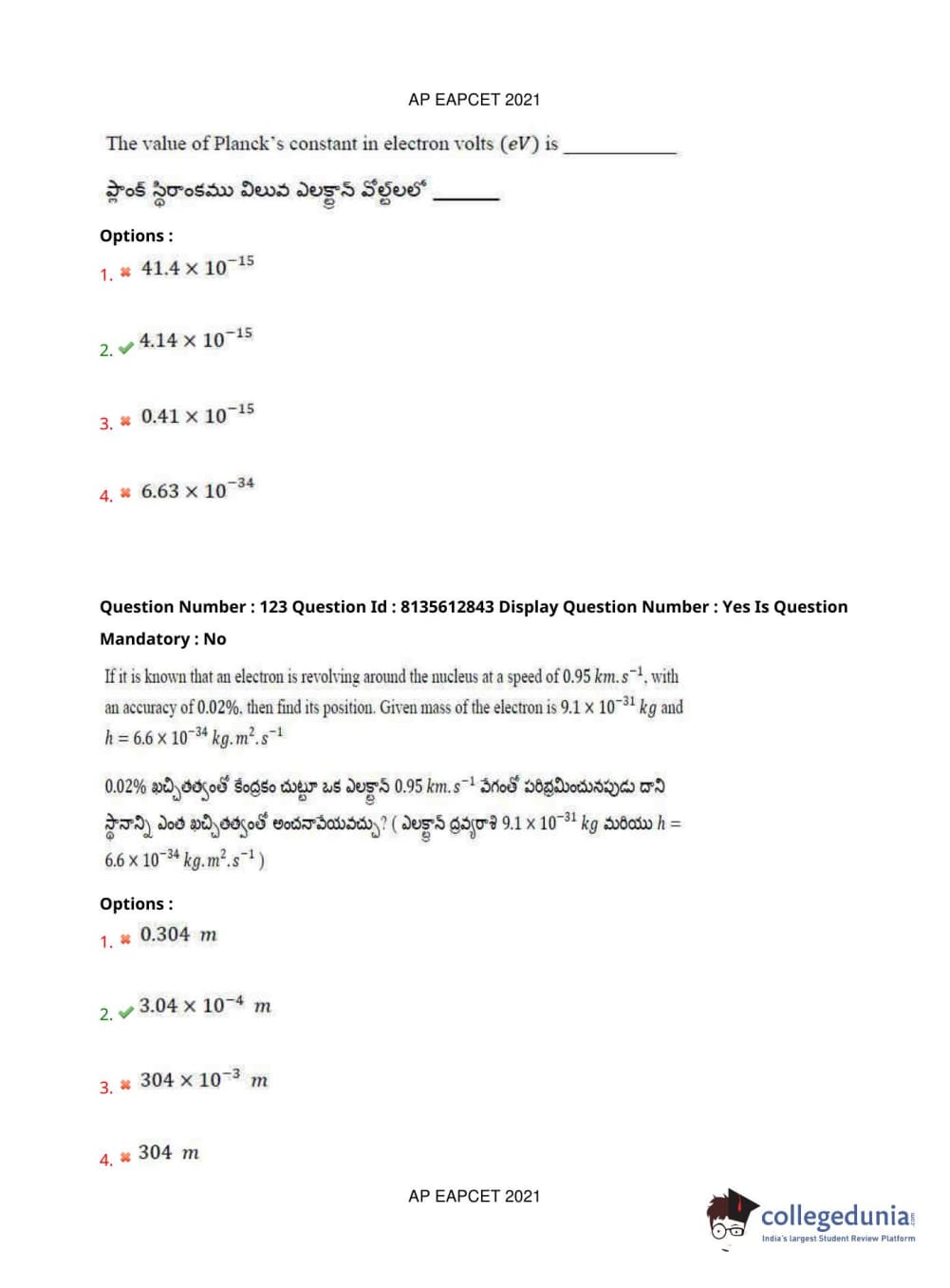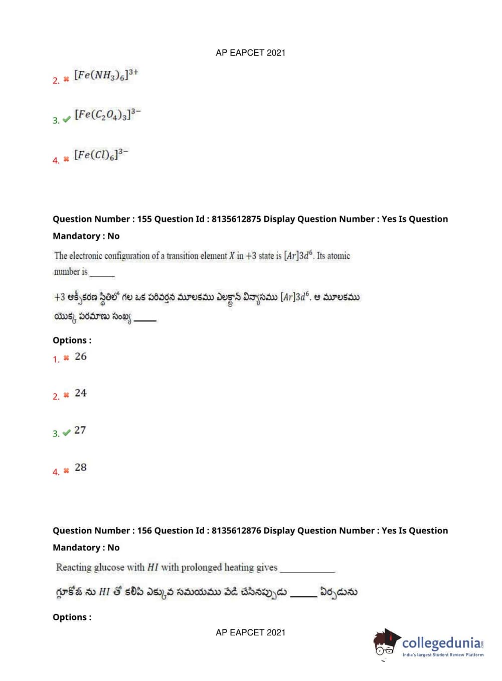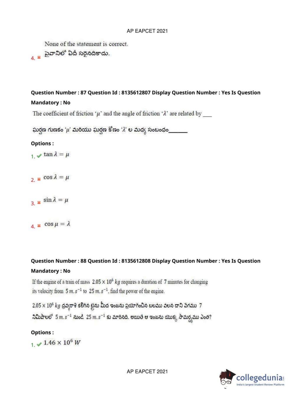 AP EAPCET 2021 Agriculture and Pharmacy Question Paper with Answer Key PDFs Afternoon Session