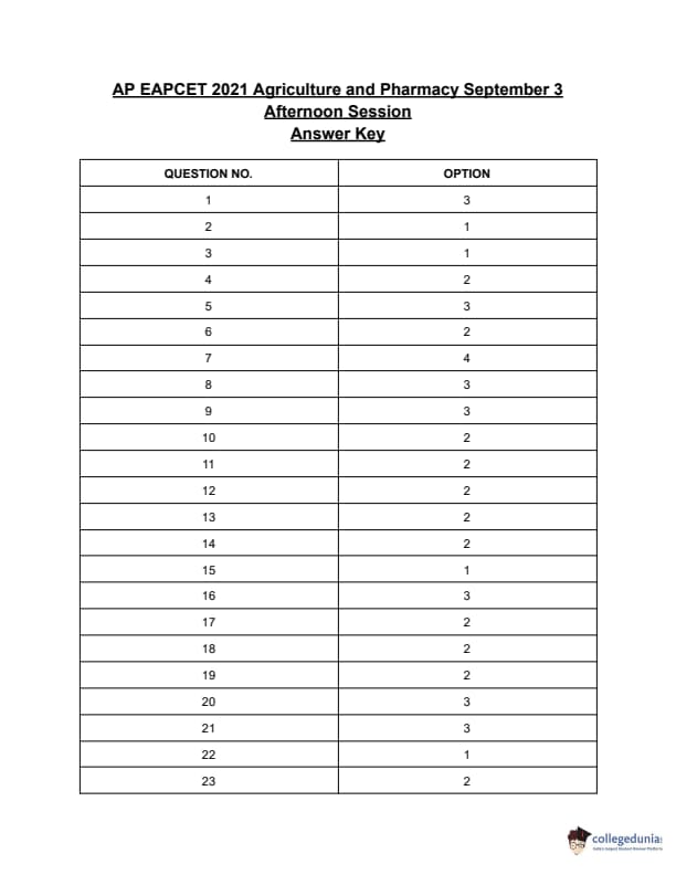 | AP EAPCET 2021 Agriculture and Pharmacy Question Paper PDF | AP EAPCET 2021 Agriculture and Pharmacy Answer Key PDF |