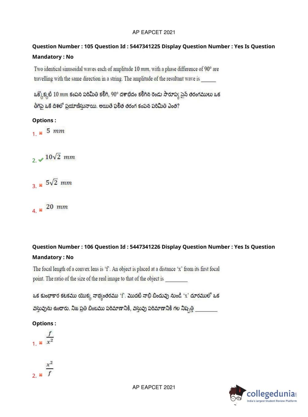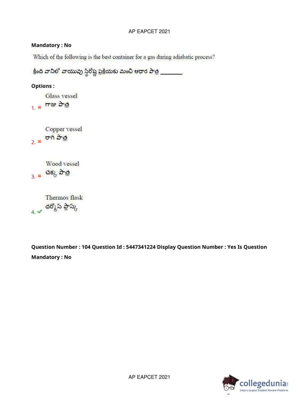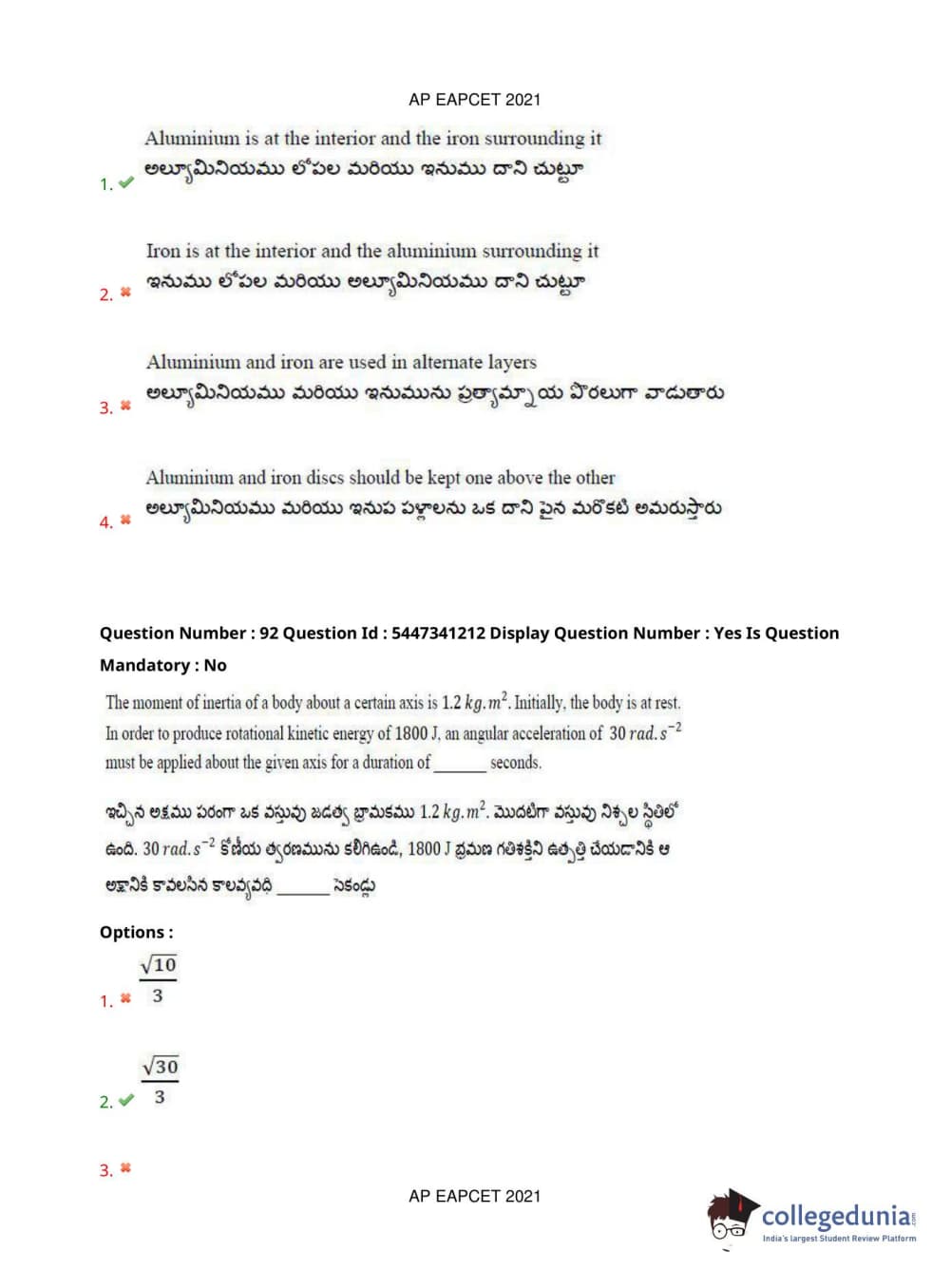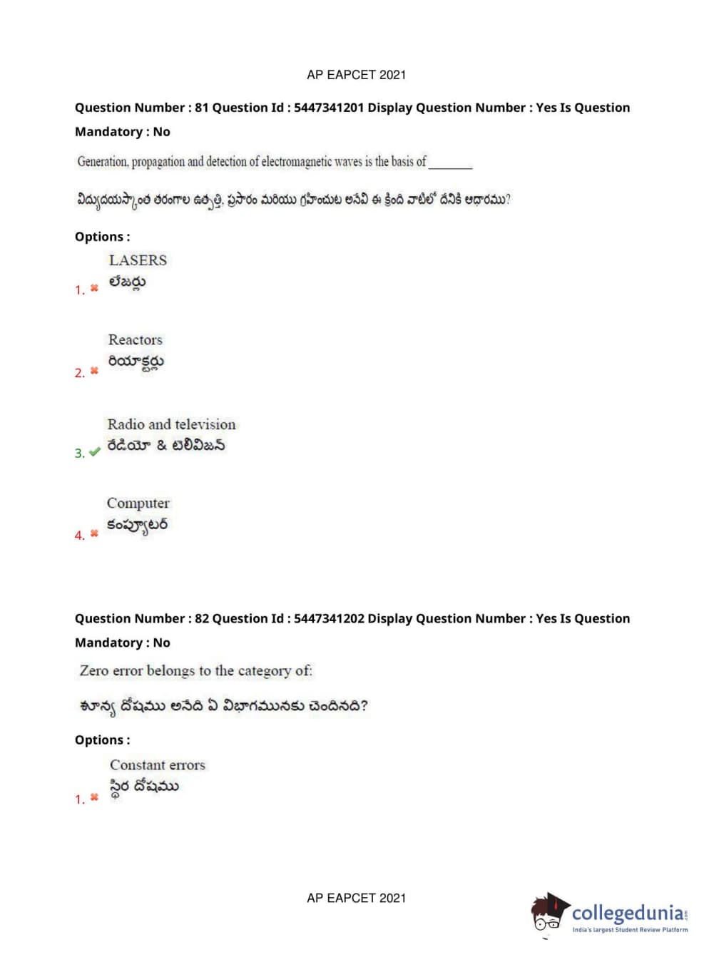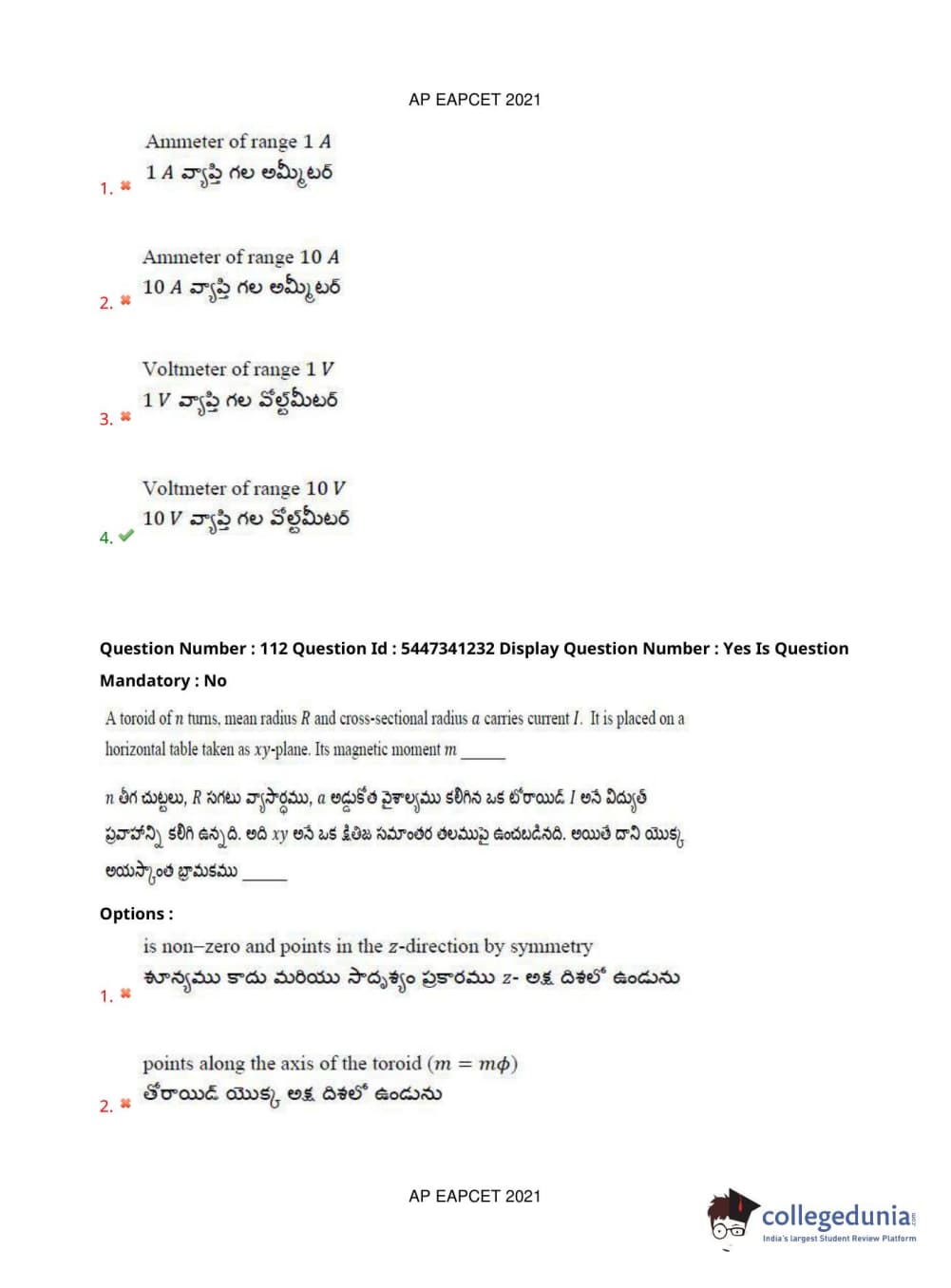 AP EAPCET 2021 Engineering Question Paper with Answer Key PDFs Afternoon Session