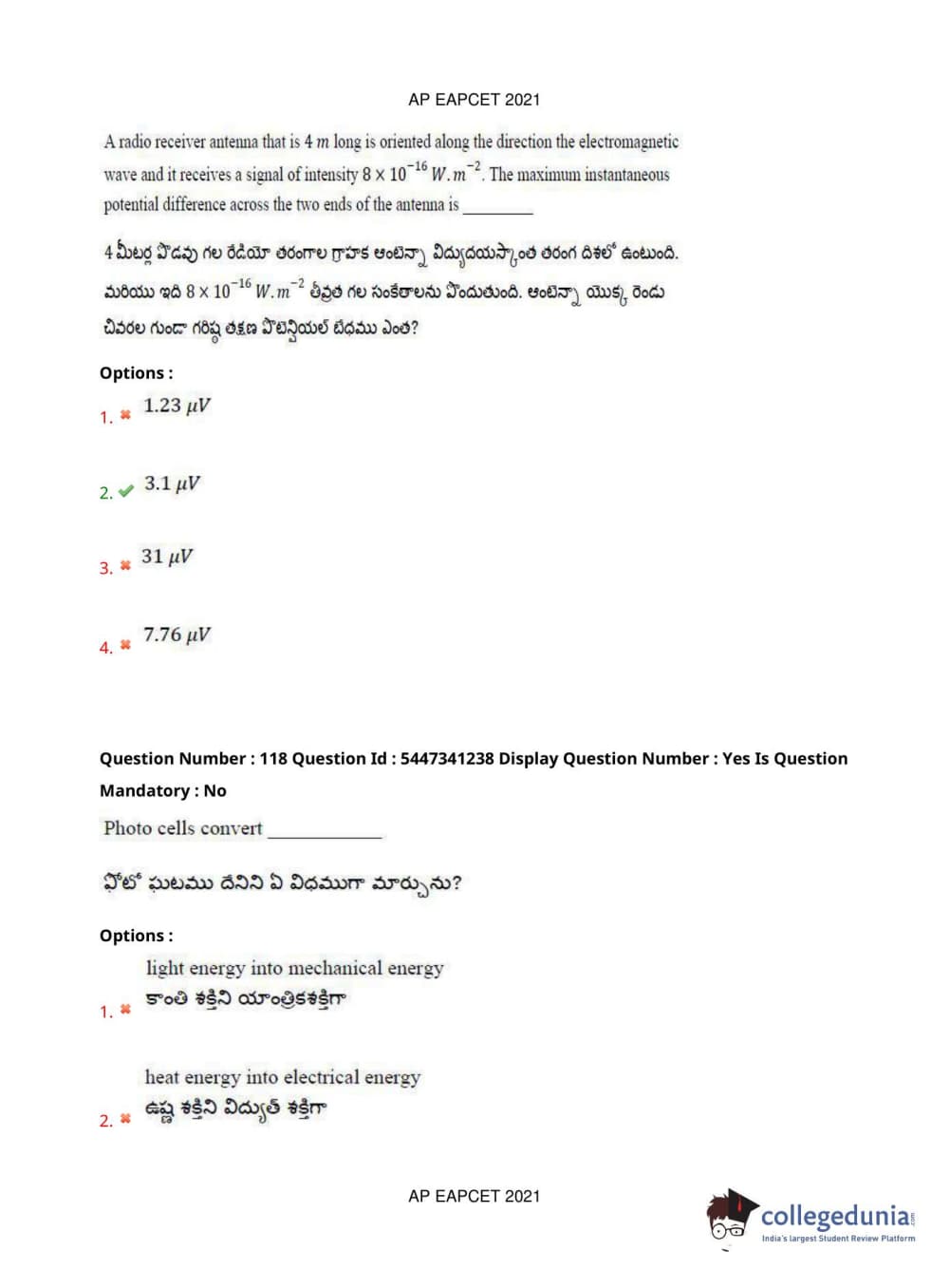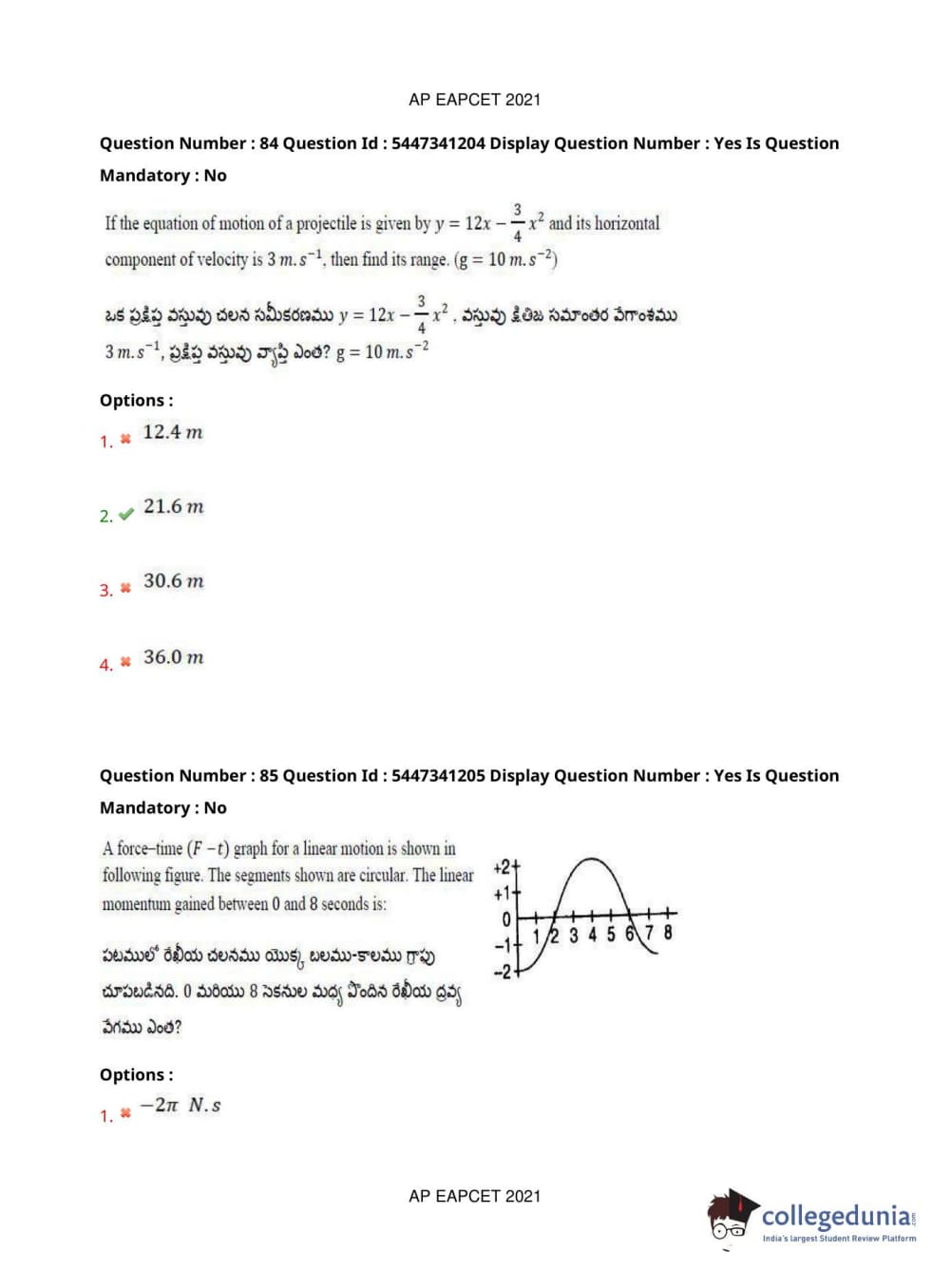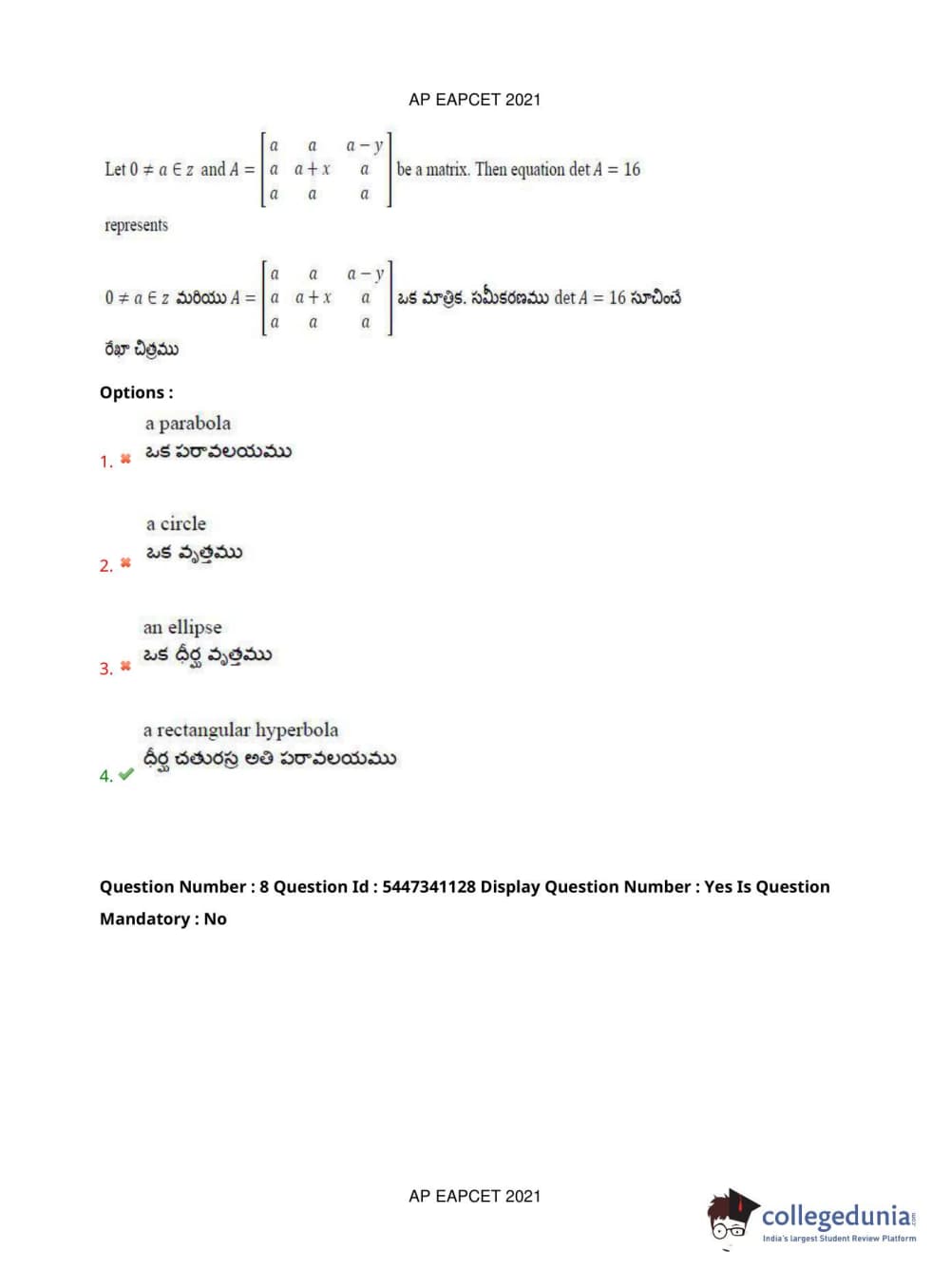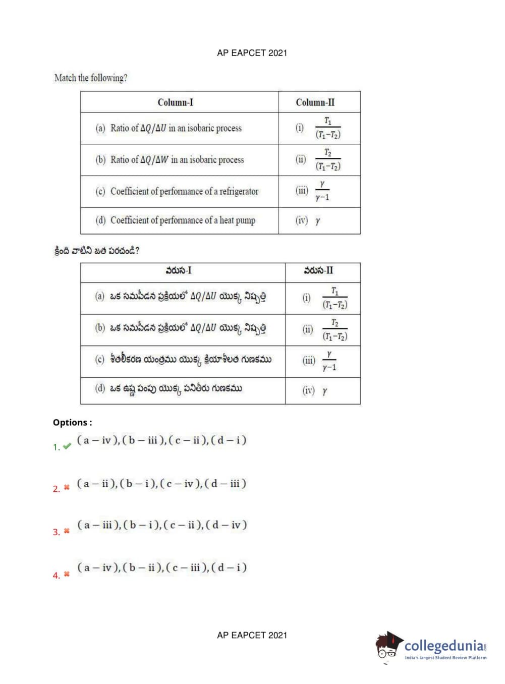 AP EAPCET 2021 Engineering Question Paper with Answer Key PDFs Afternoon Session