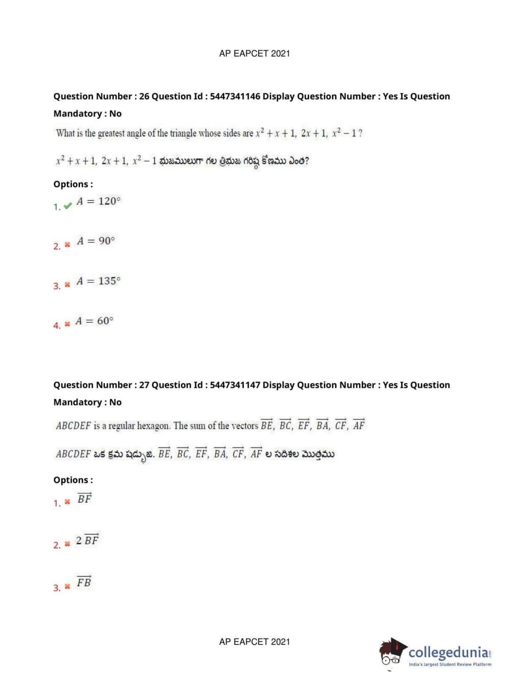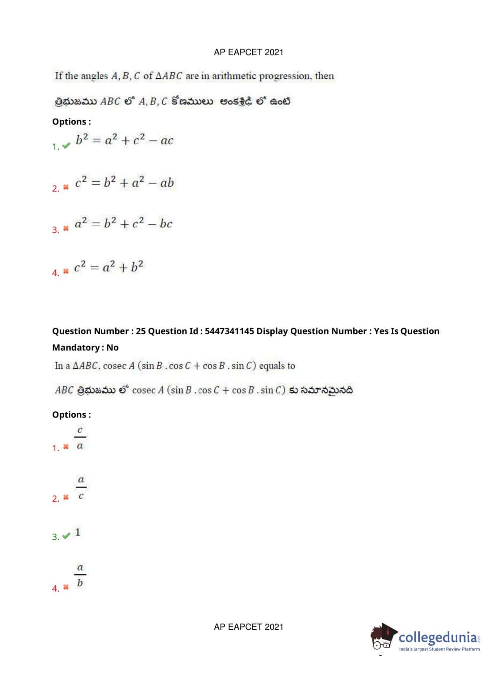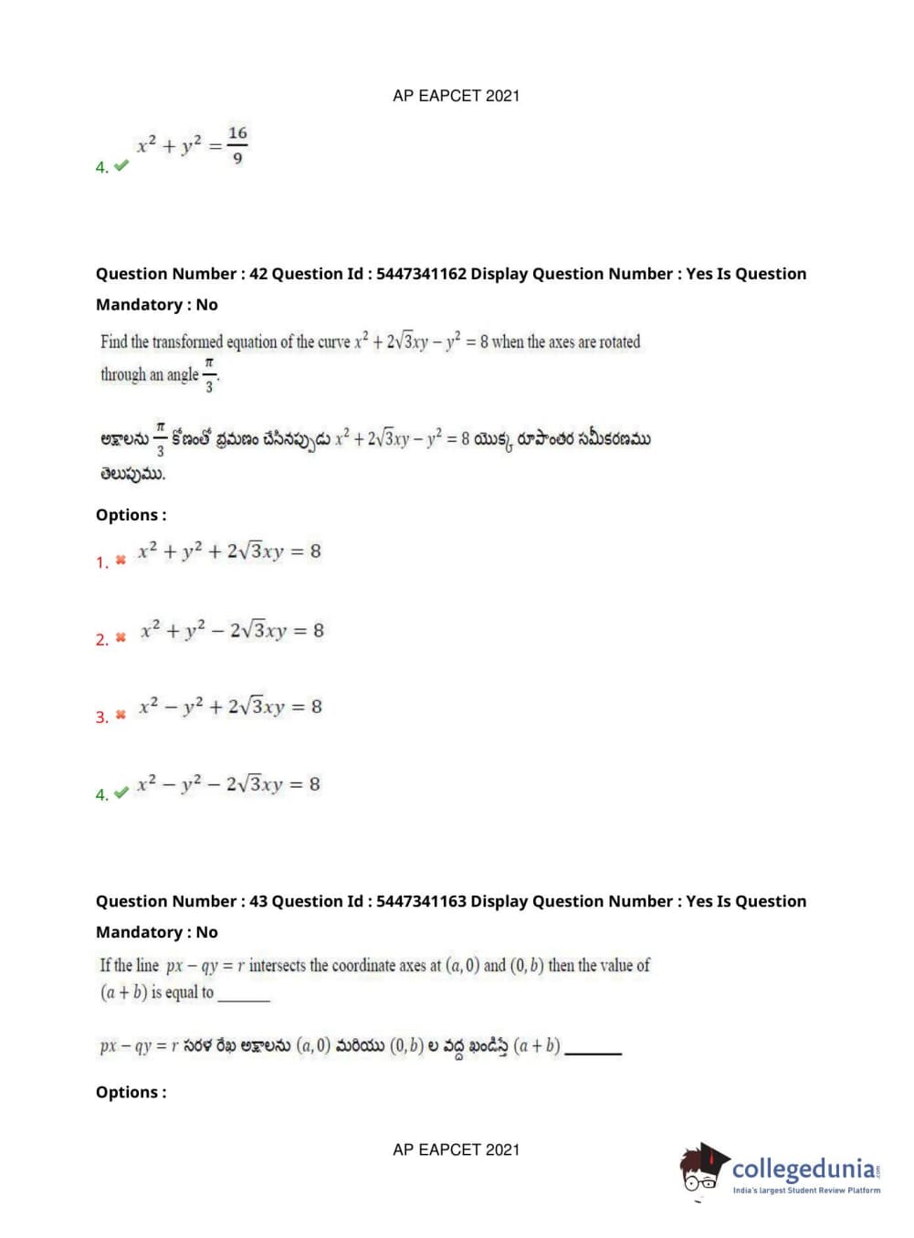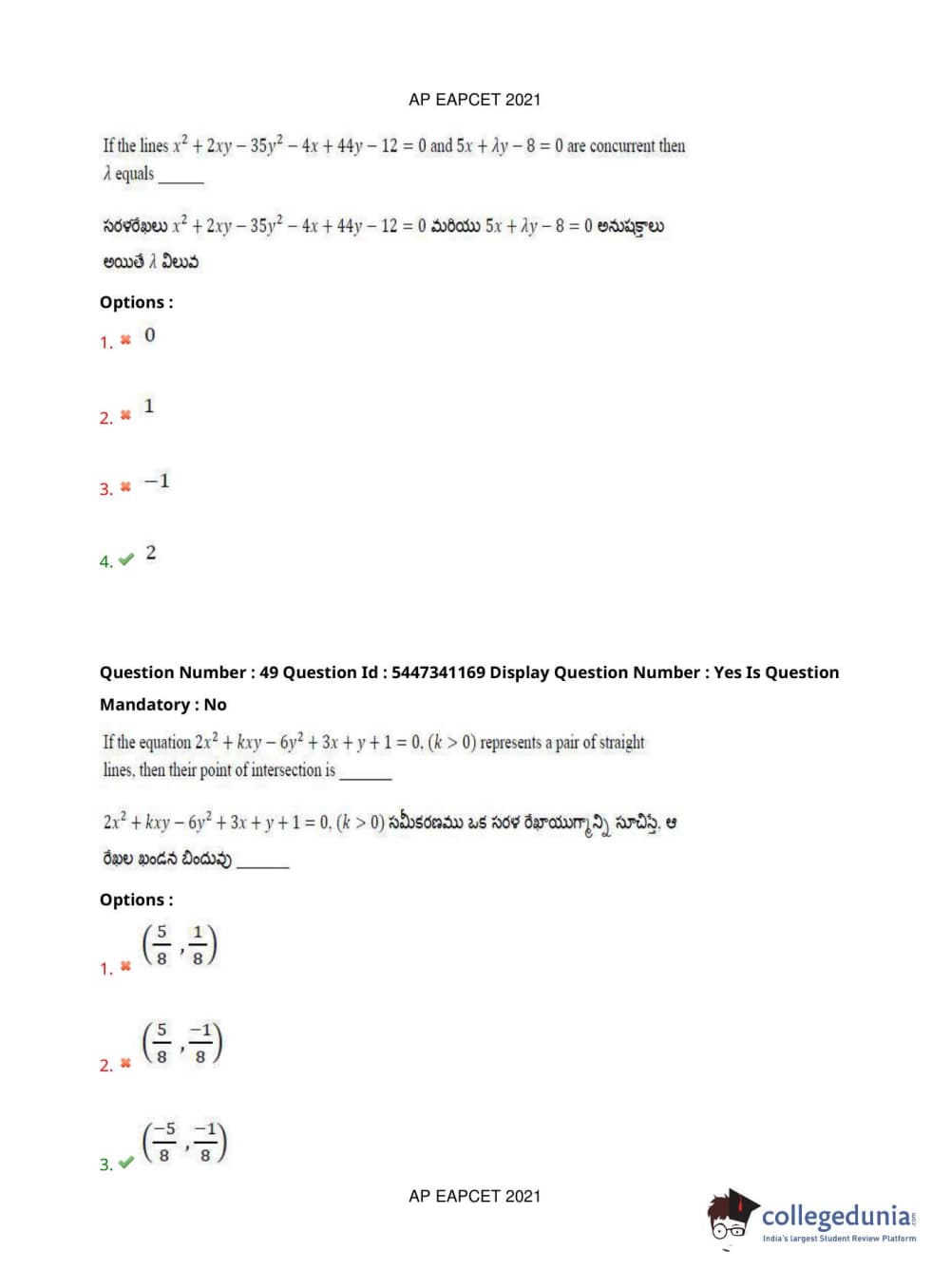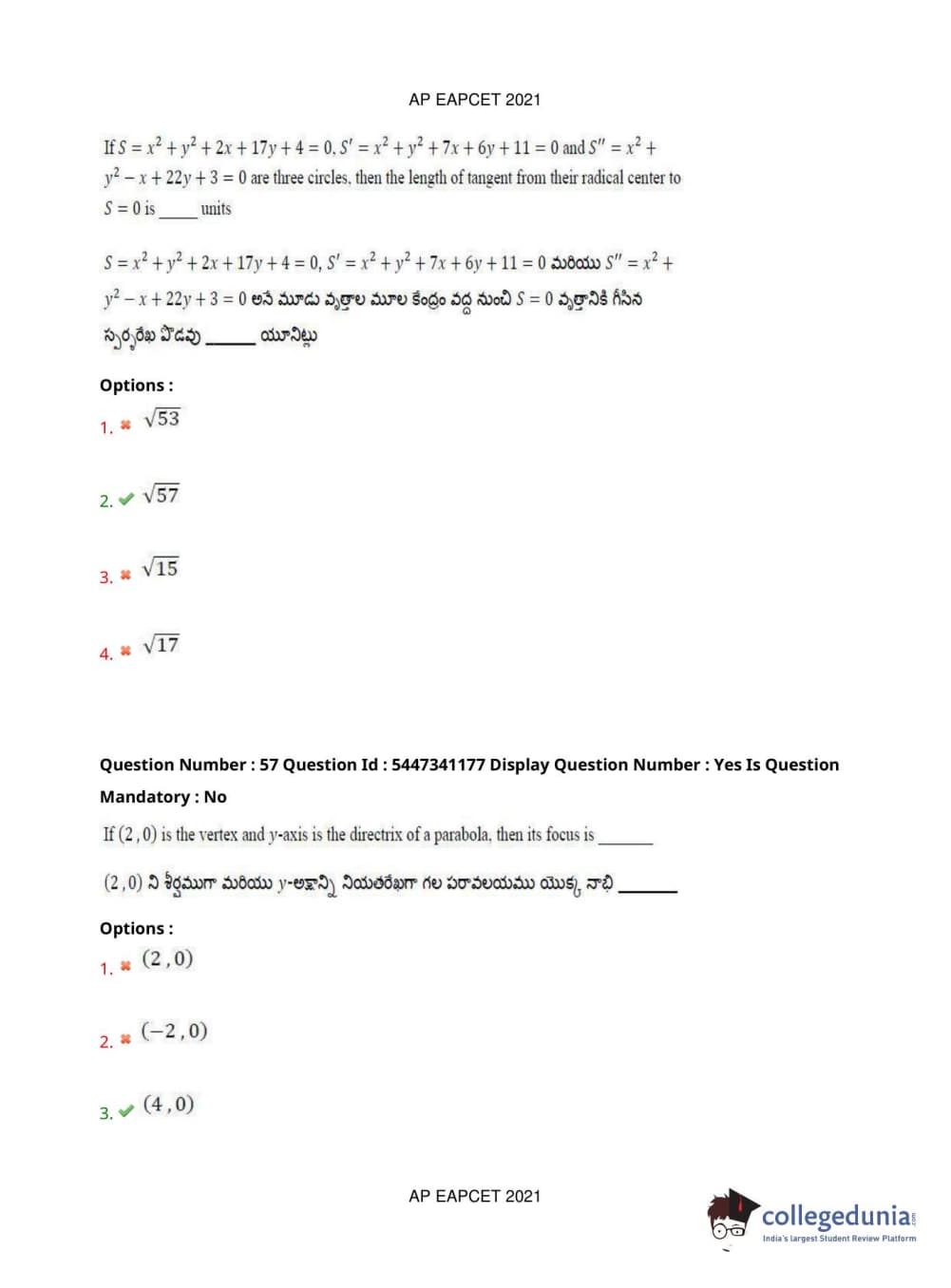 AP EAPCET 2021 Engineering Question Paper with Answer Key PDFs Afternoon Session