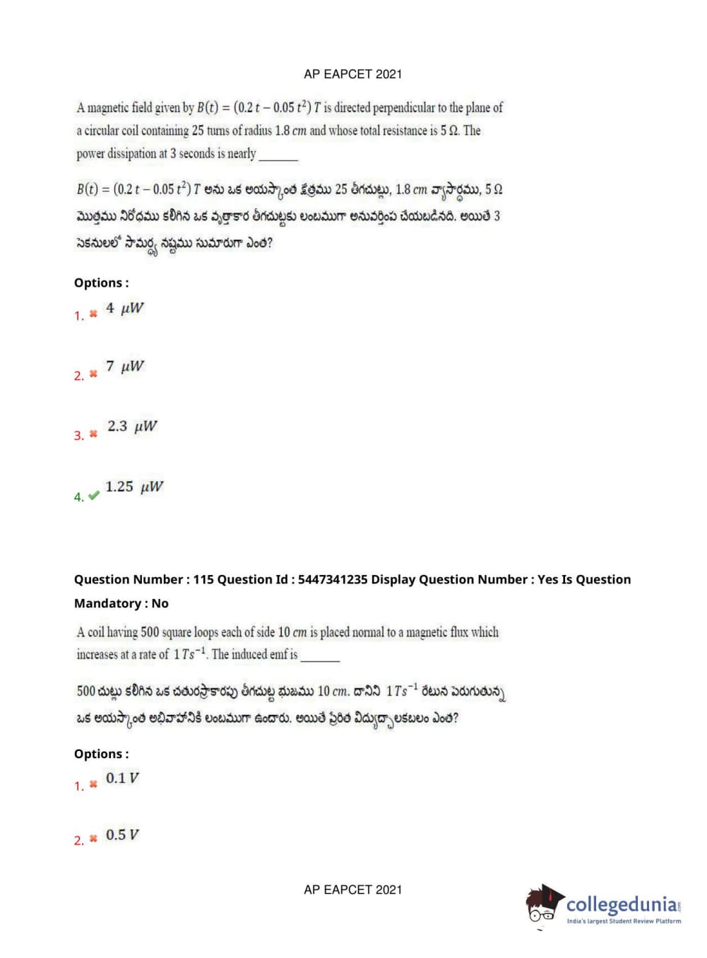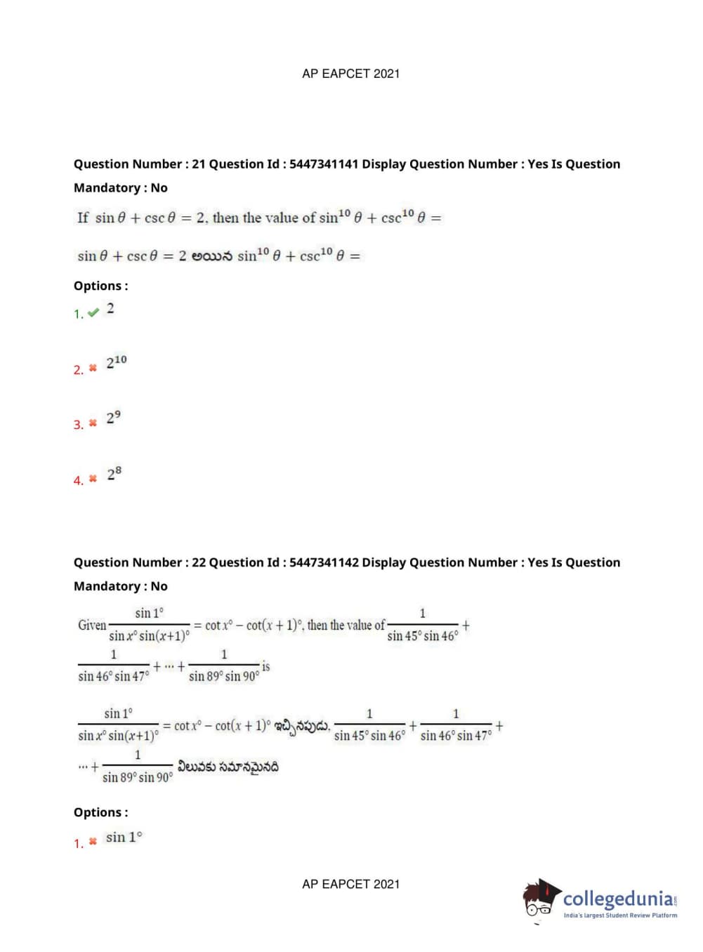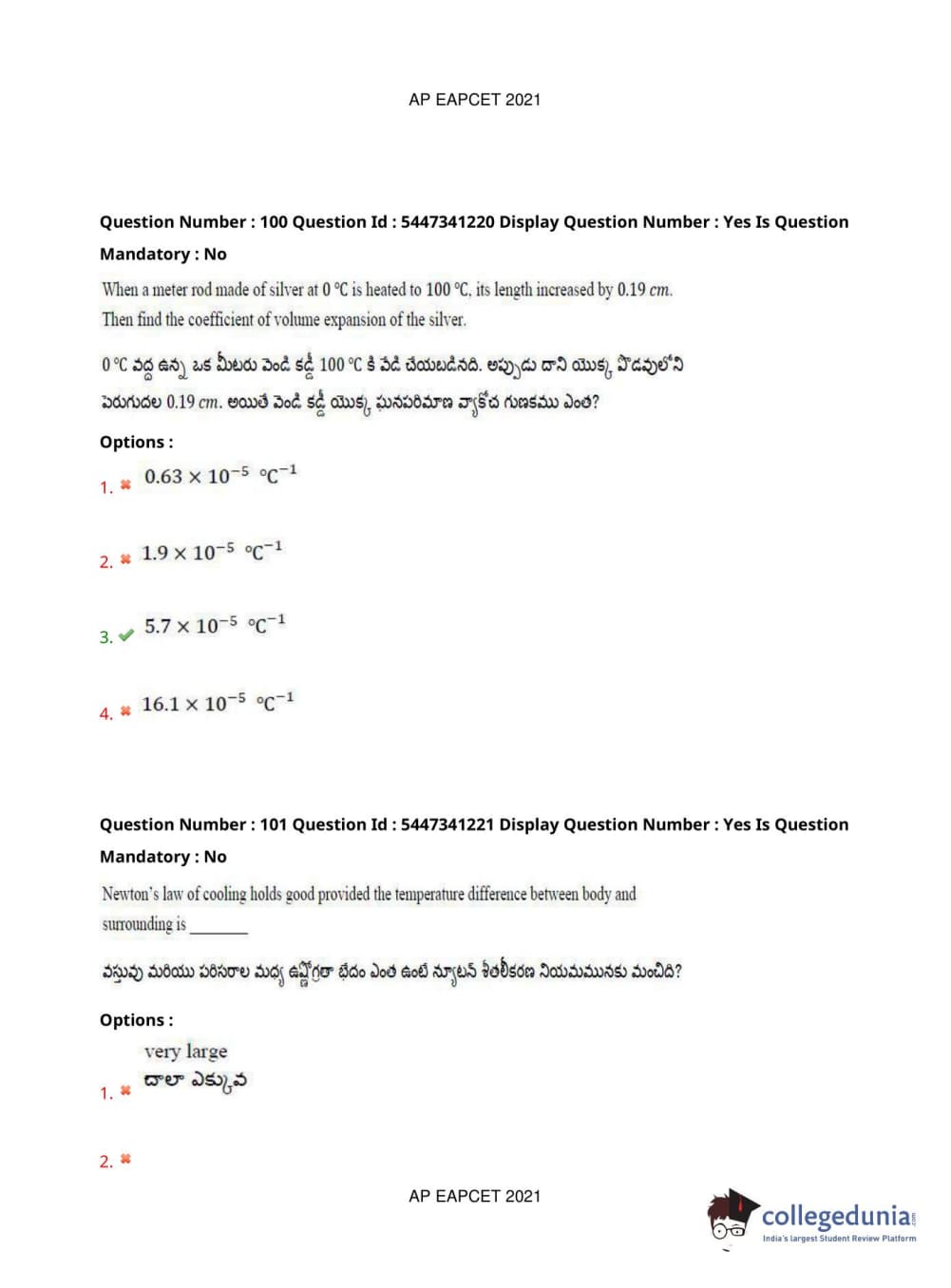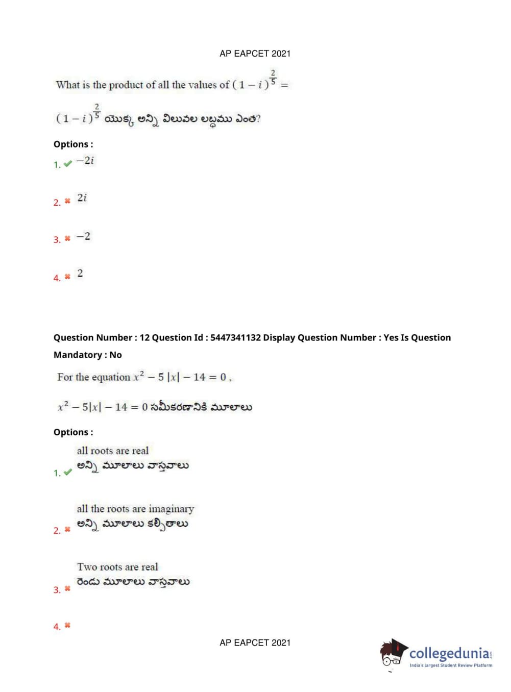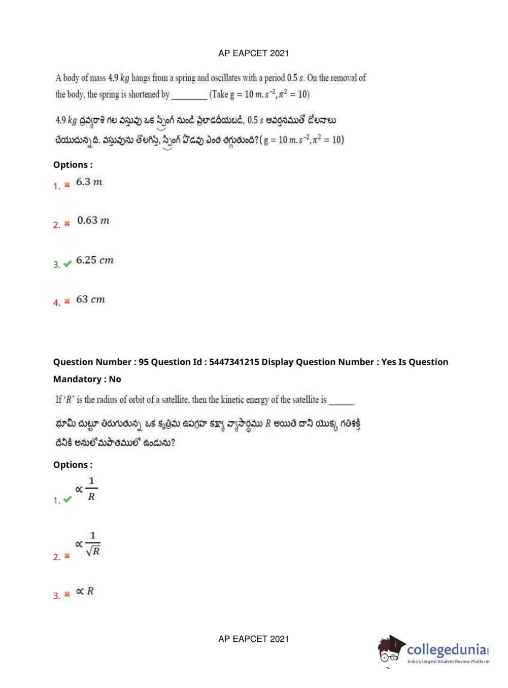 AP EAPCET 2021 Engineering Question Paper with Answer Key PDFs Afternoon Session