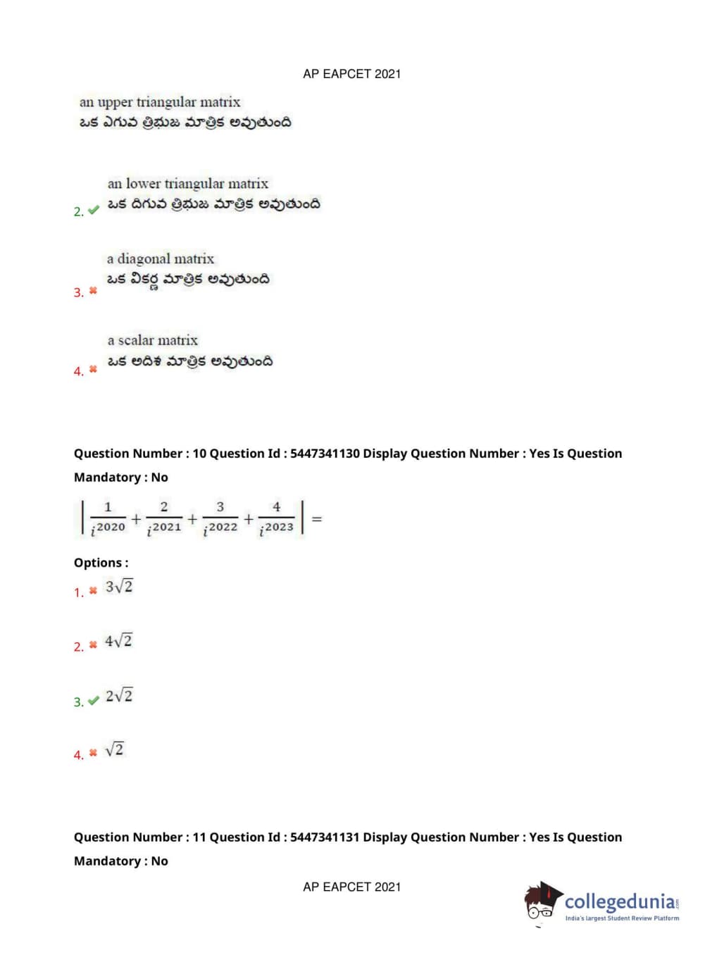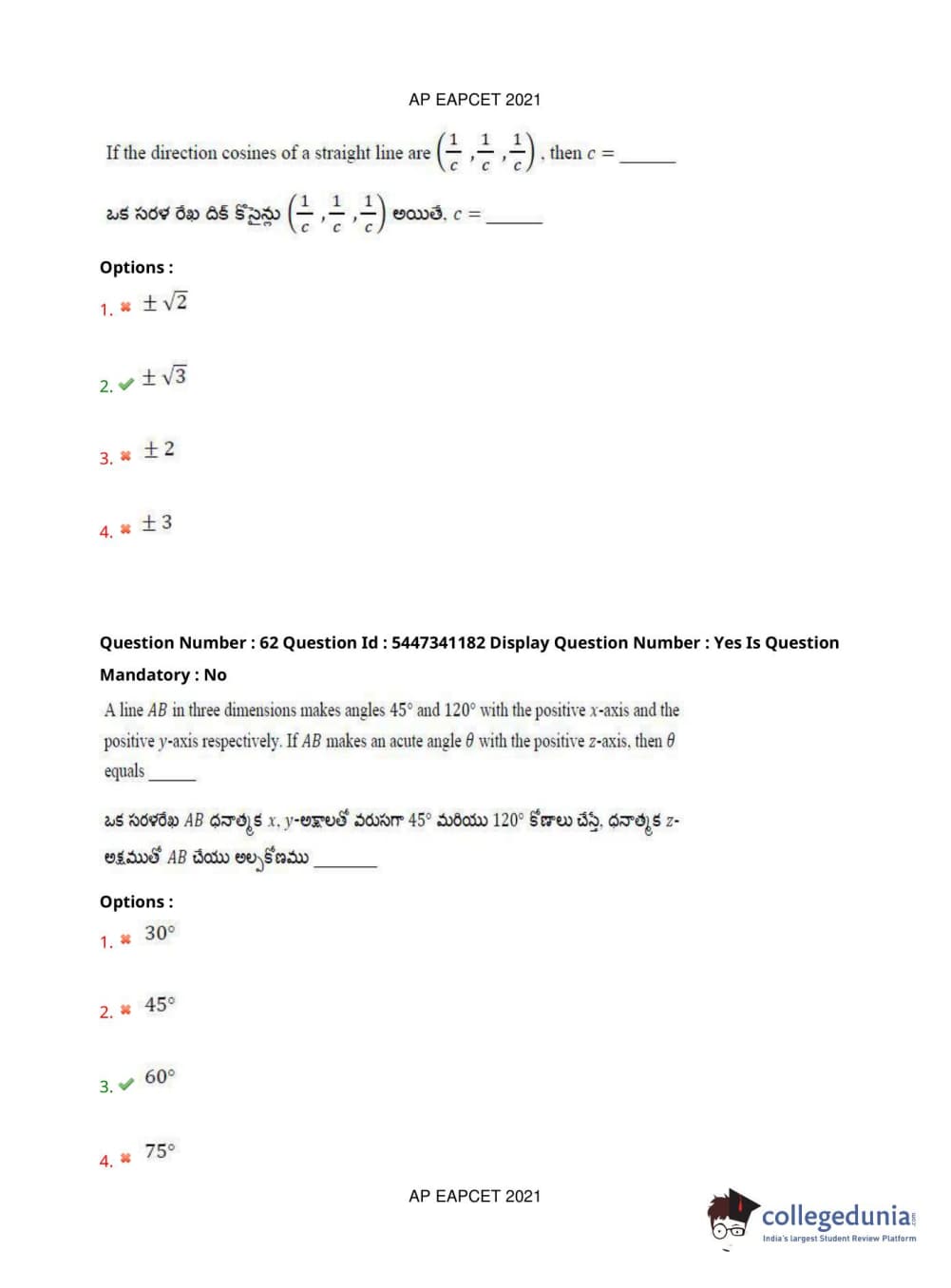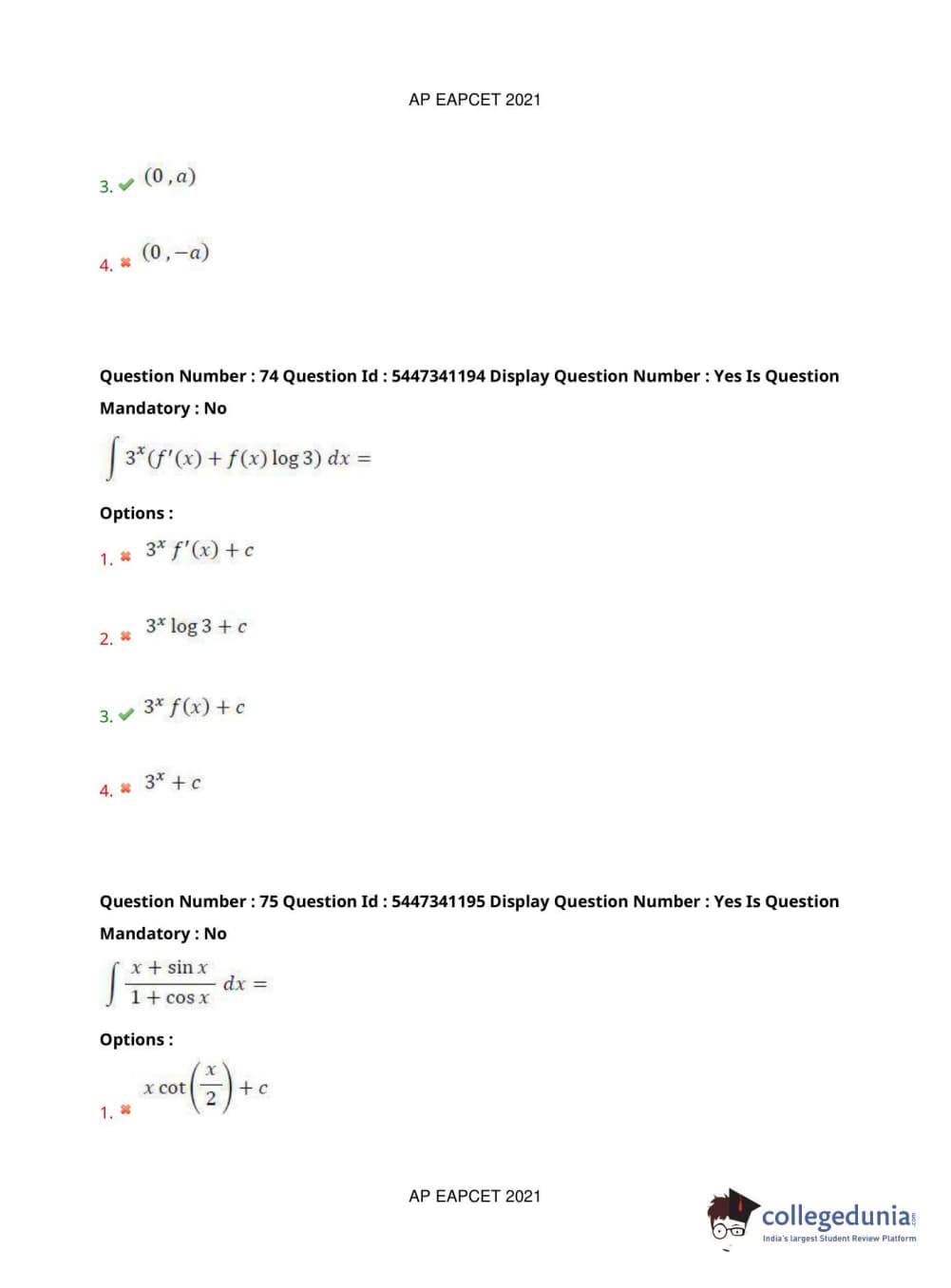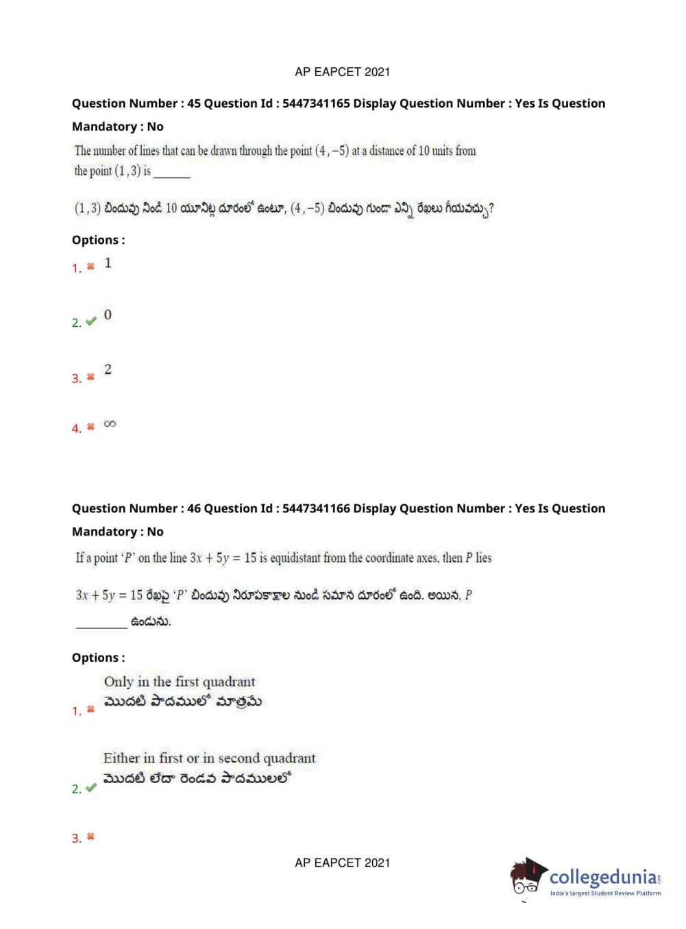 AP EAPCET 2021 Engineering Question Paper with Answer Key PDFs Afternoon Session