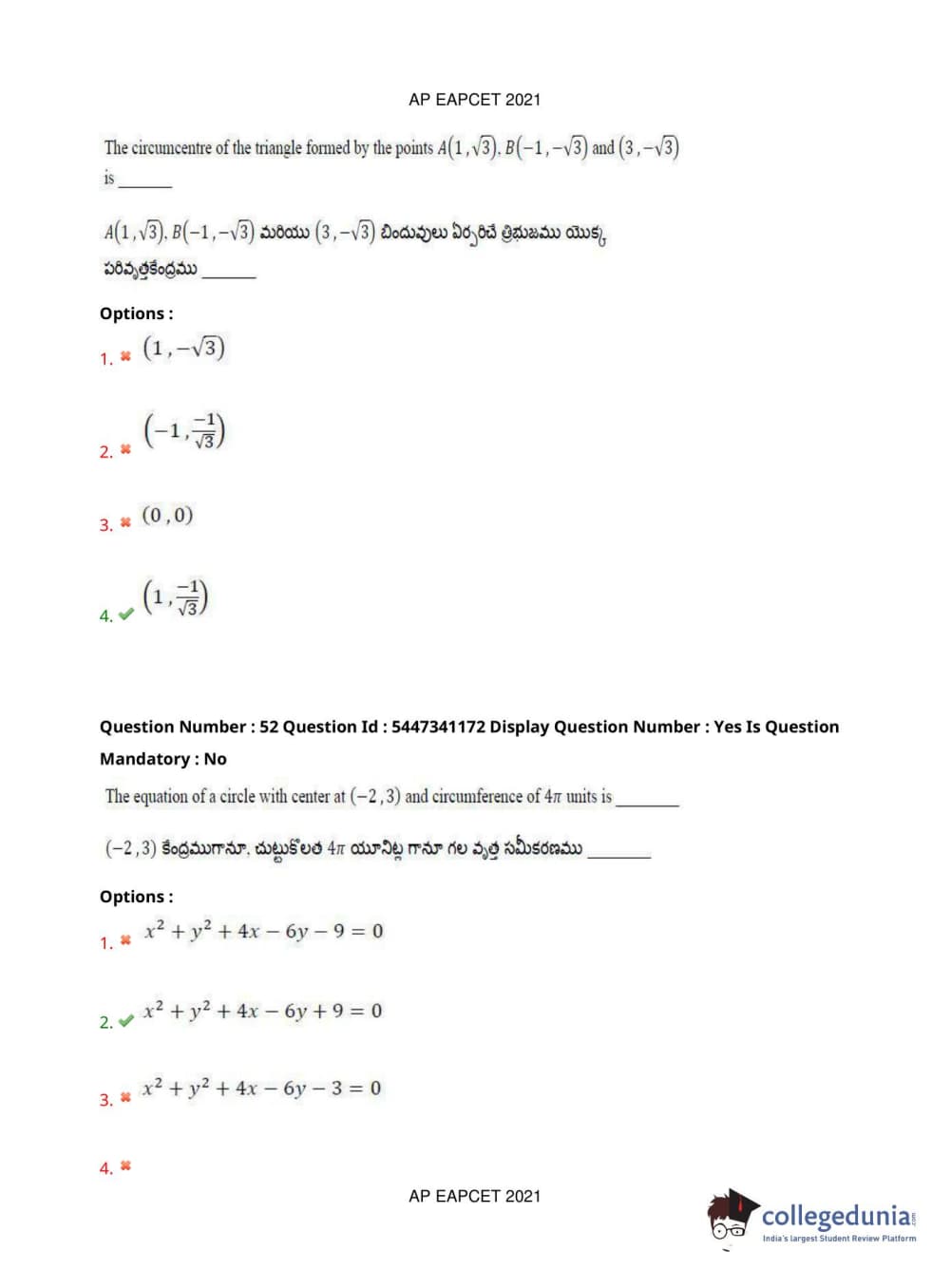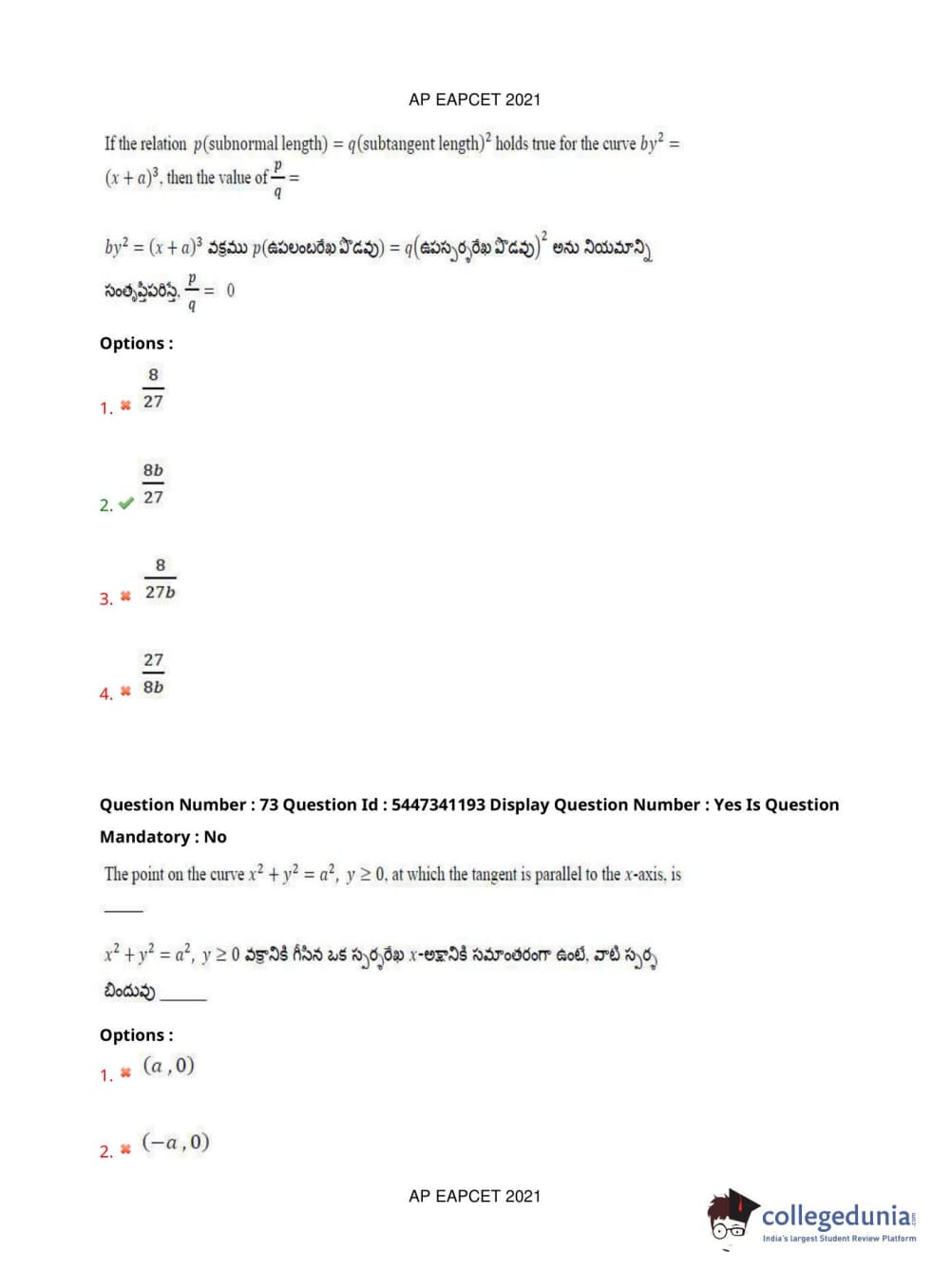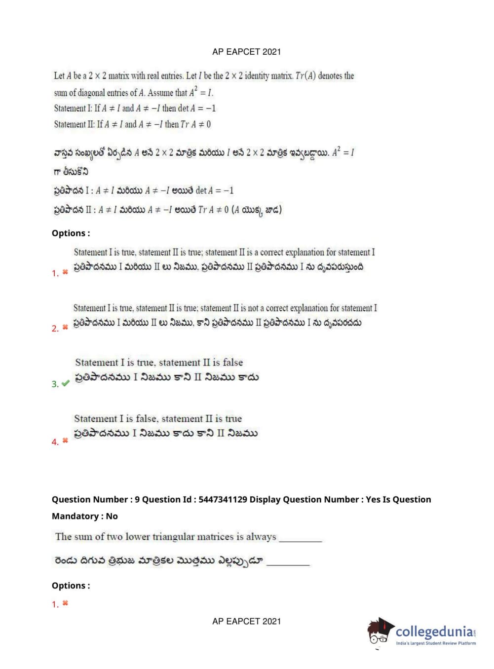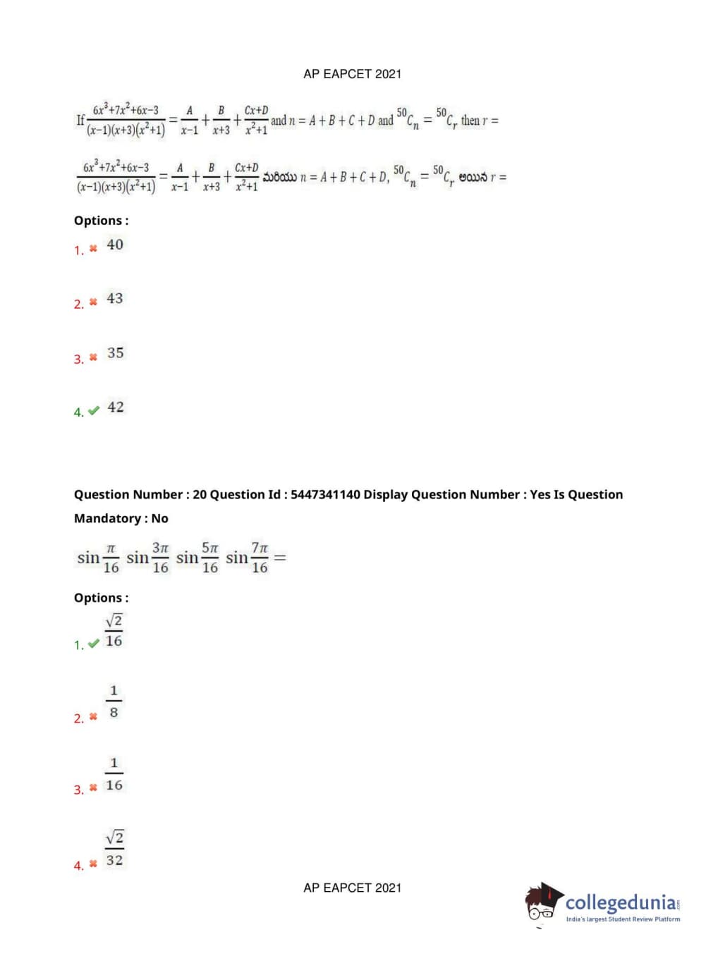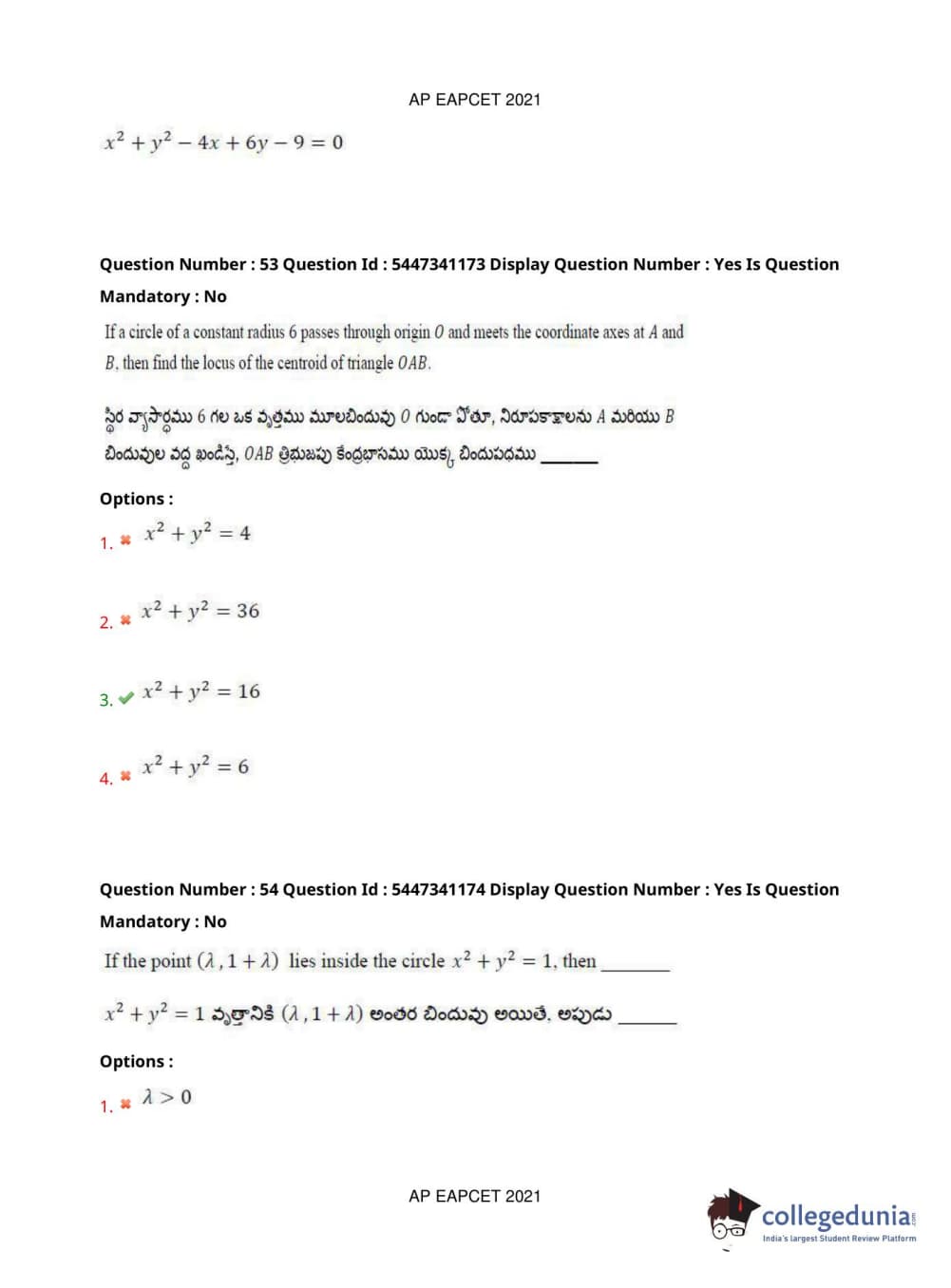 AP EAPCET 2021 Engineering Question Paper with Answer Key PDFs Afternoon Session