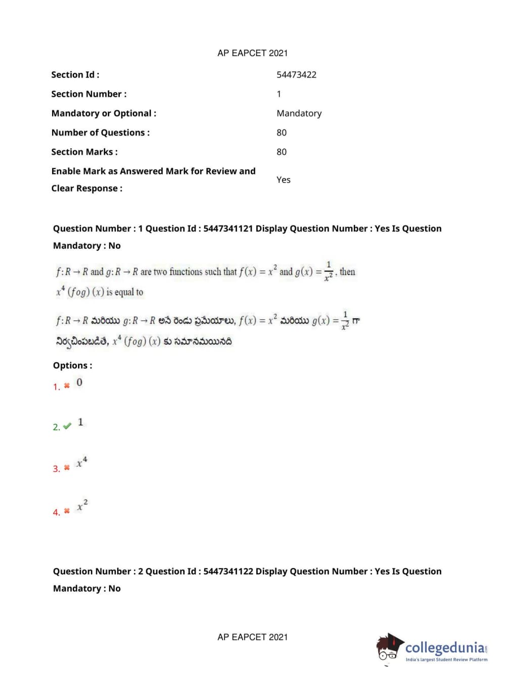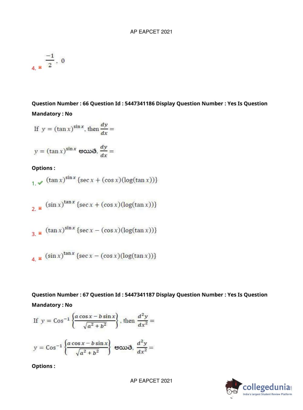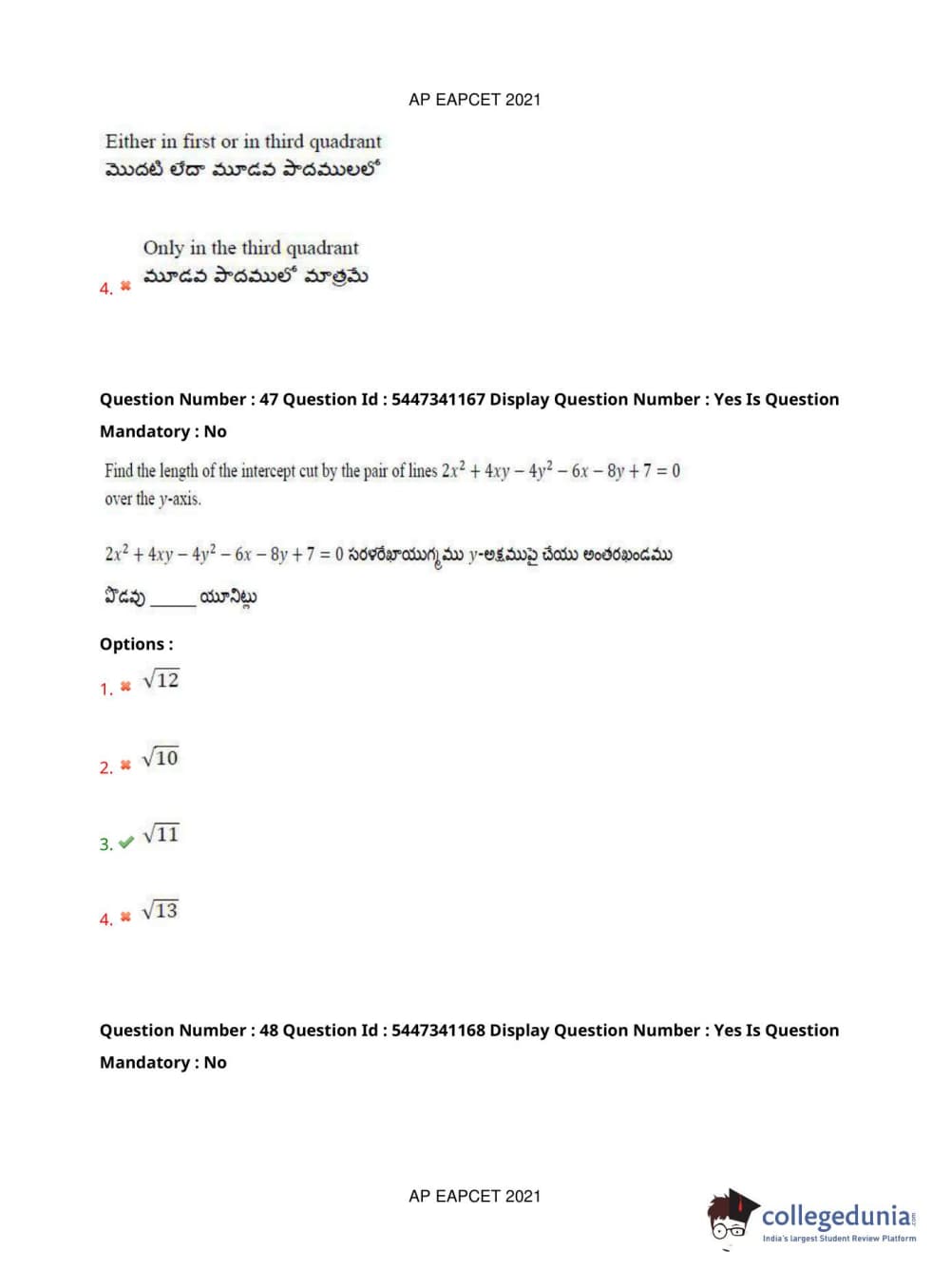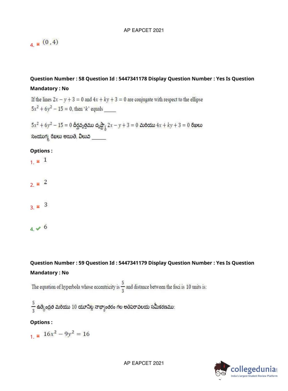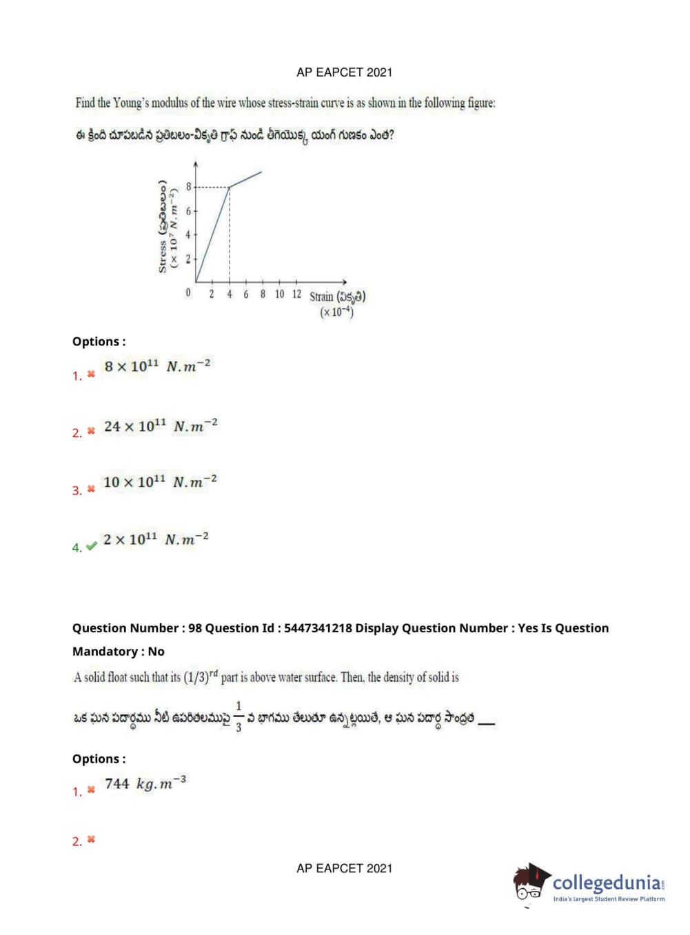 AP EAPCET 2021 Engineering Question Paper with Answer Key PDFs Afternoon Session