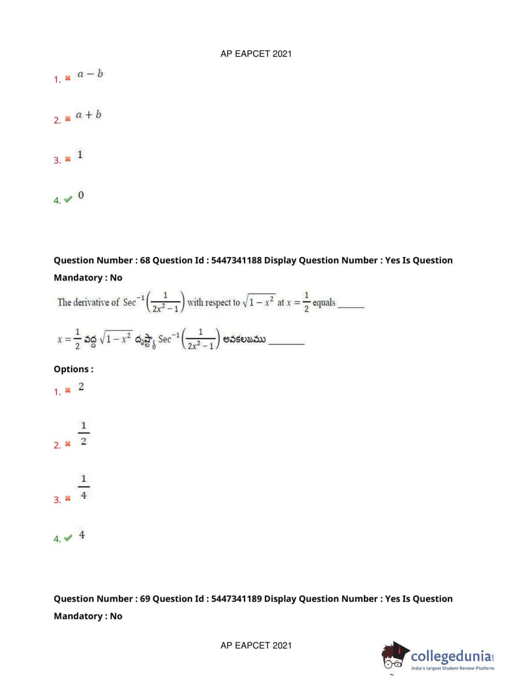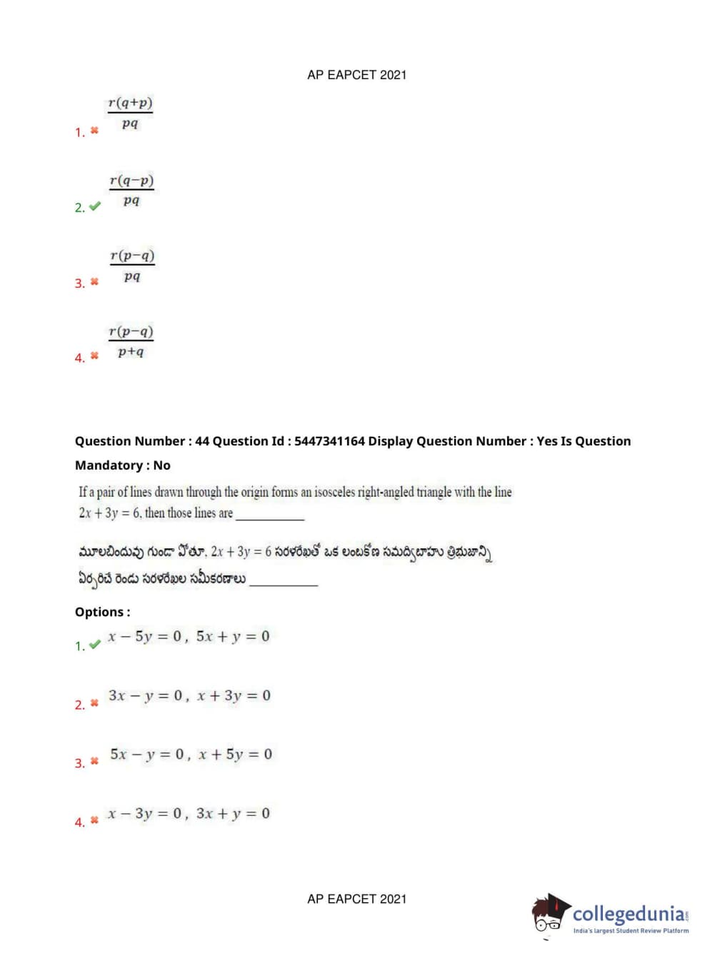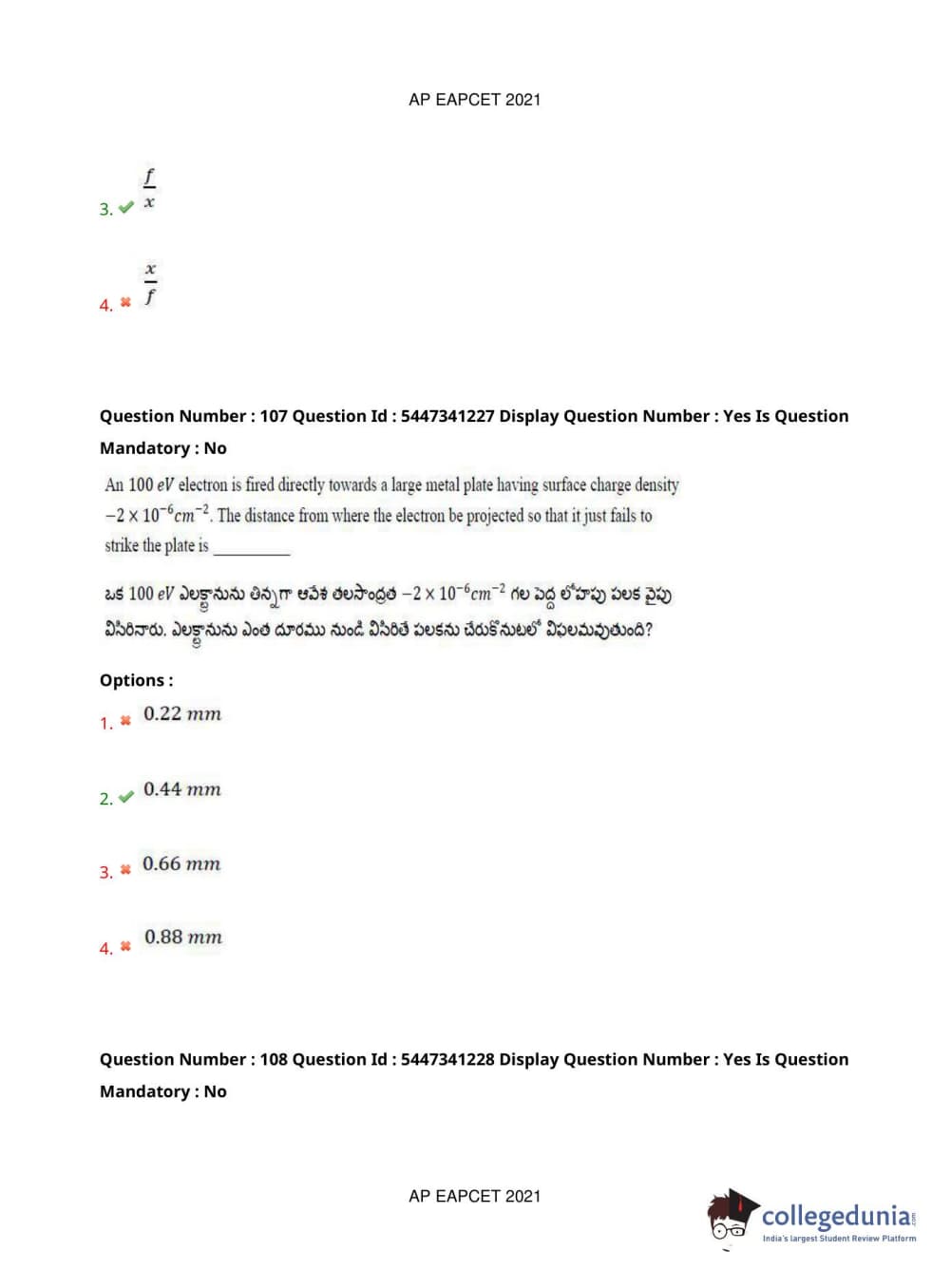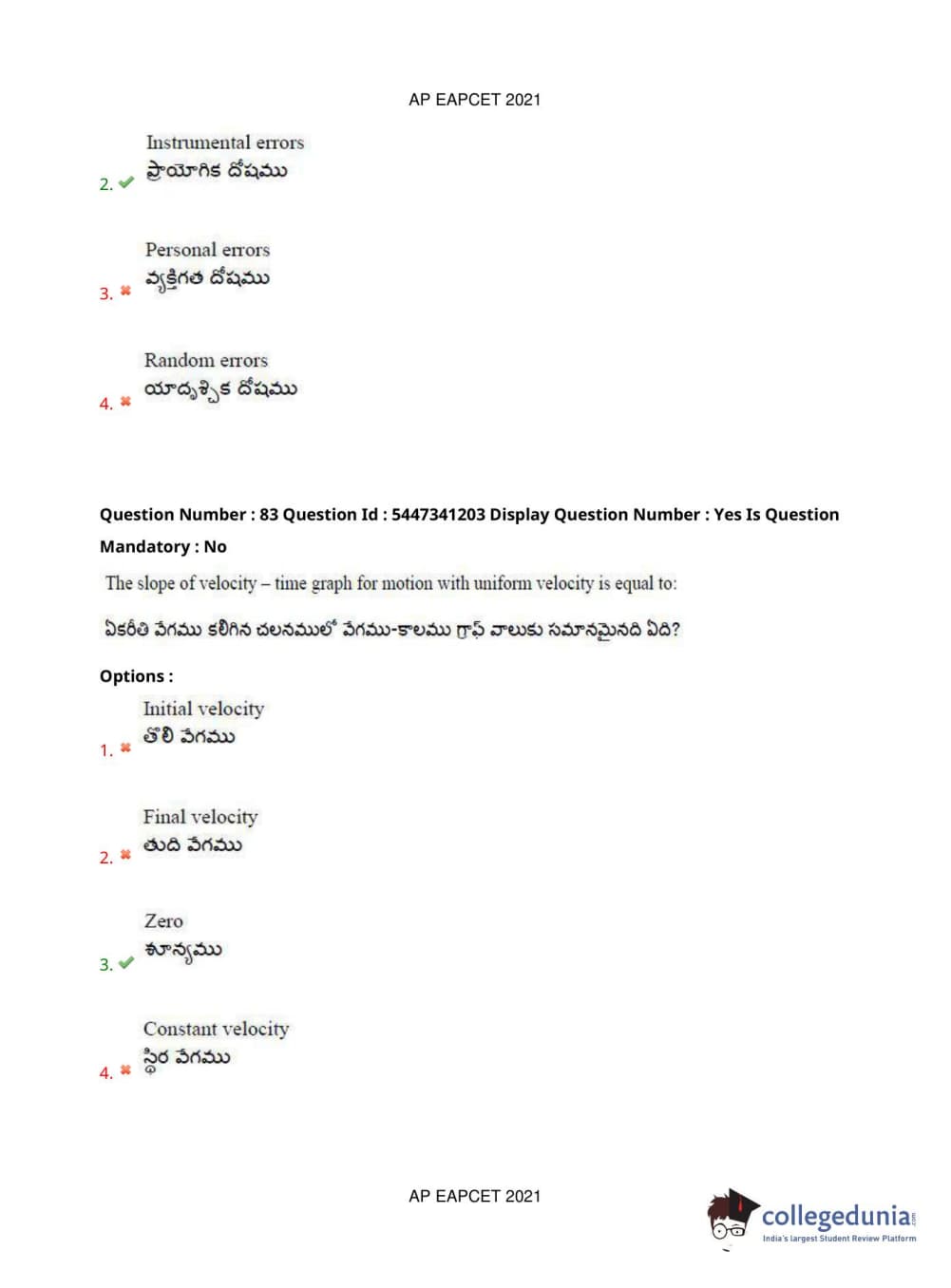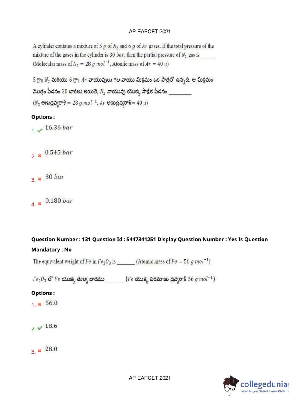 AP EAPCET 2021 Engineering Question Paper with Answer Key PDFs Afternoon Session