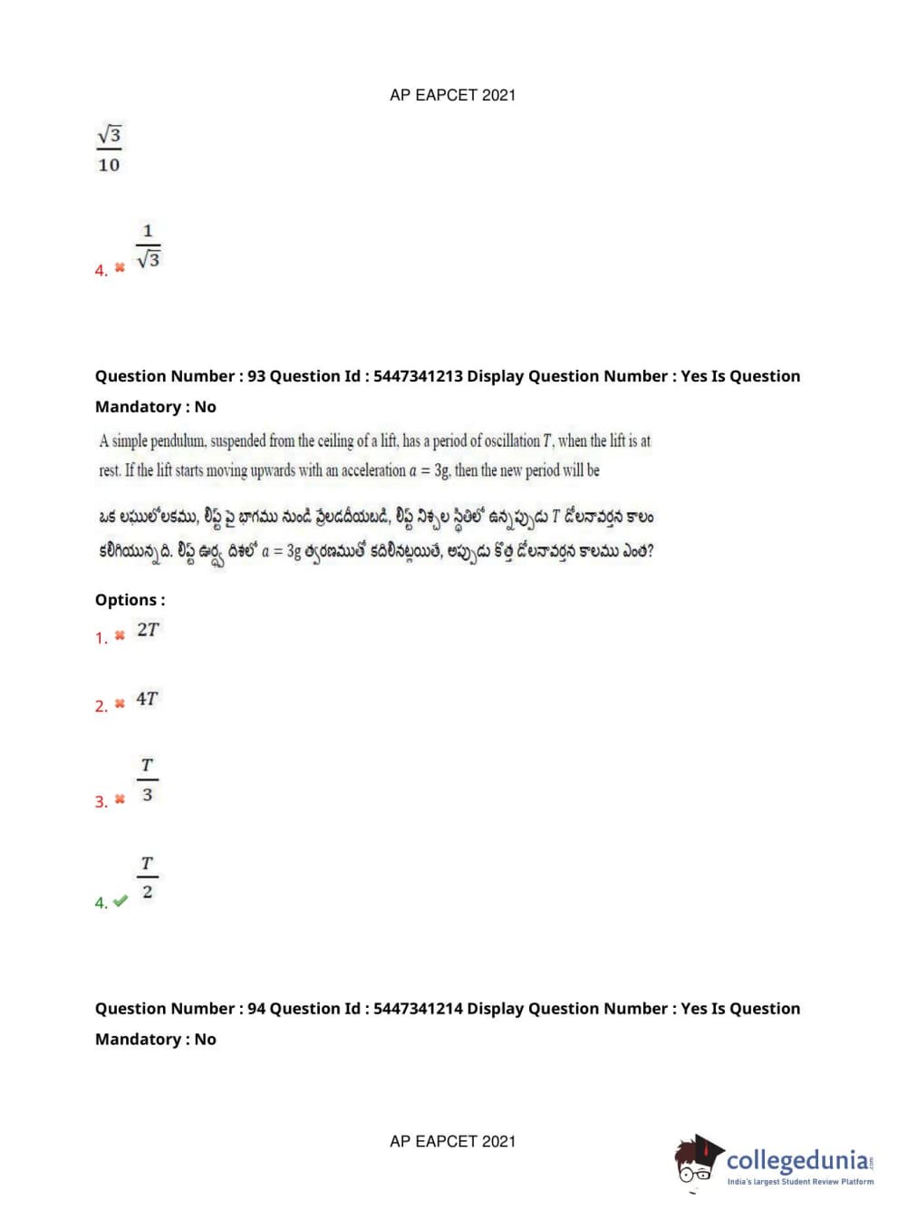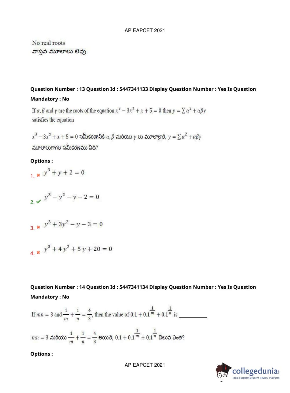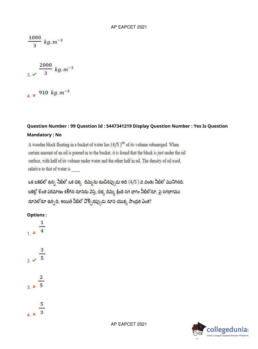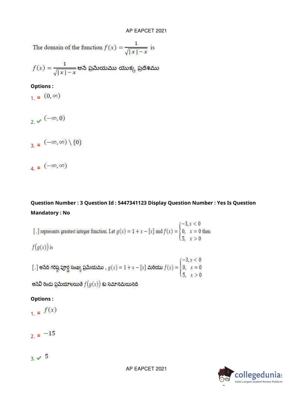 AP EAPCET 2021 Engineering Question Paper with Answer Key PDFs Afternoon Session