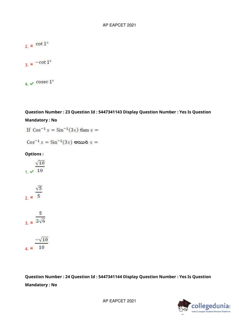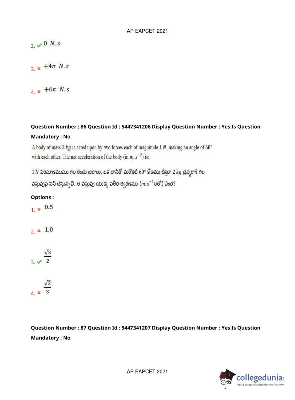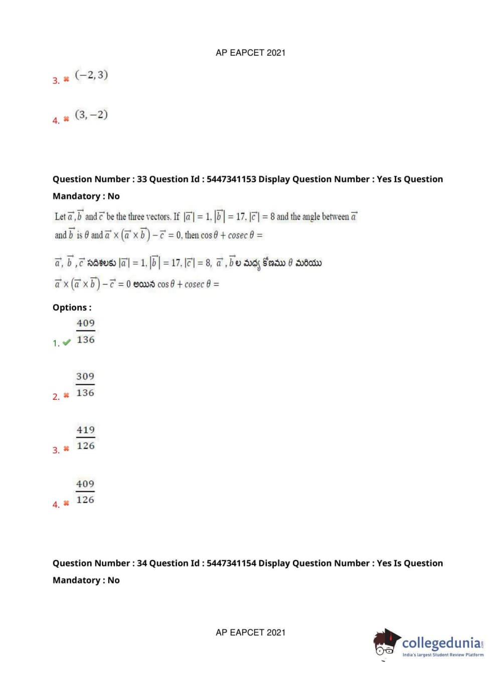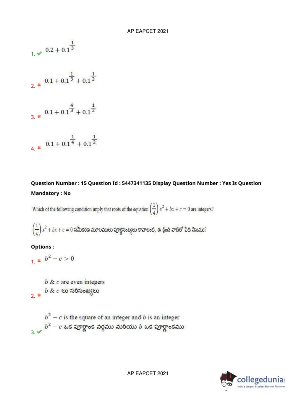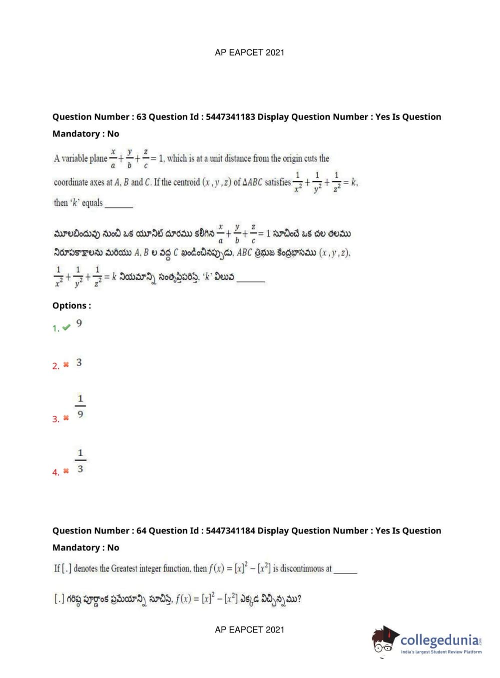 AP EAPCET 2021 Engineering Question Paper with Answer Key PDFs Afternoon Session