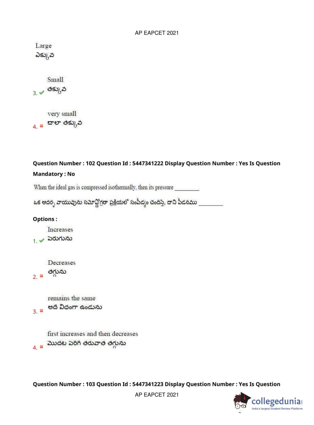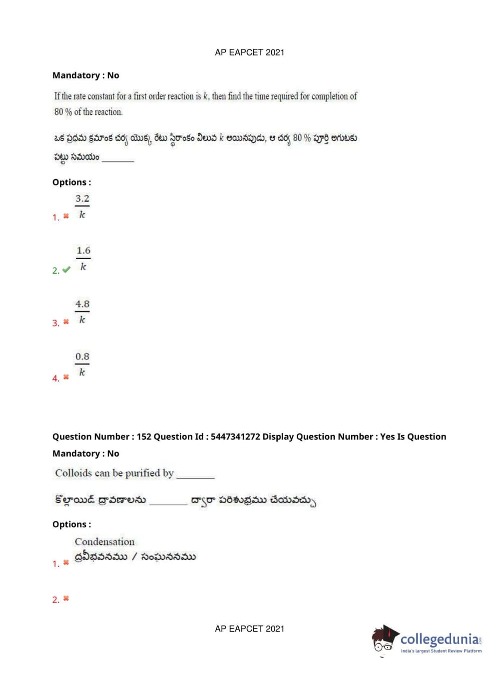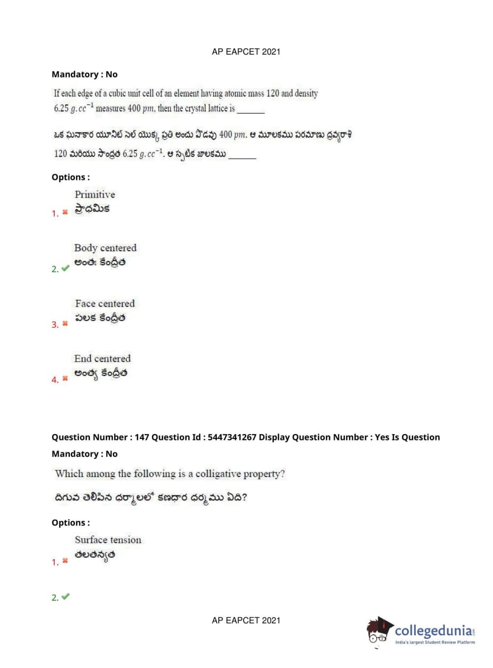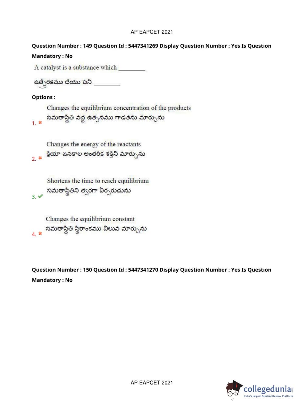 | AP EAPCET 2021 Engineering Question Paper PDF | AP EAPCET 2021 Engineering Answer Key PDF |
