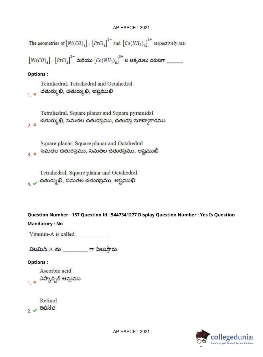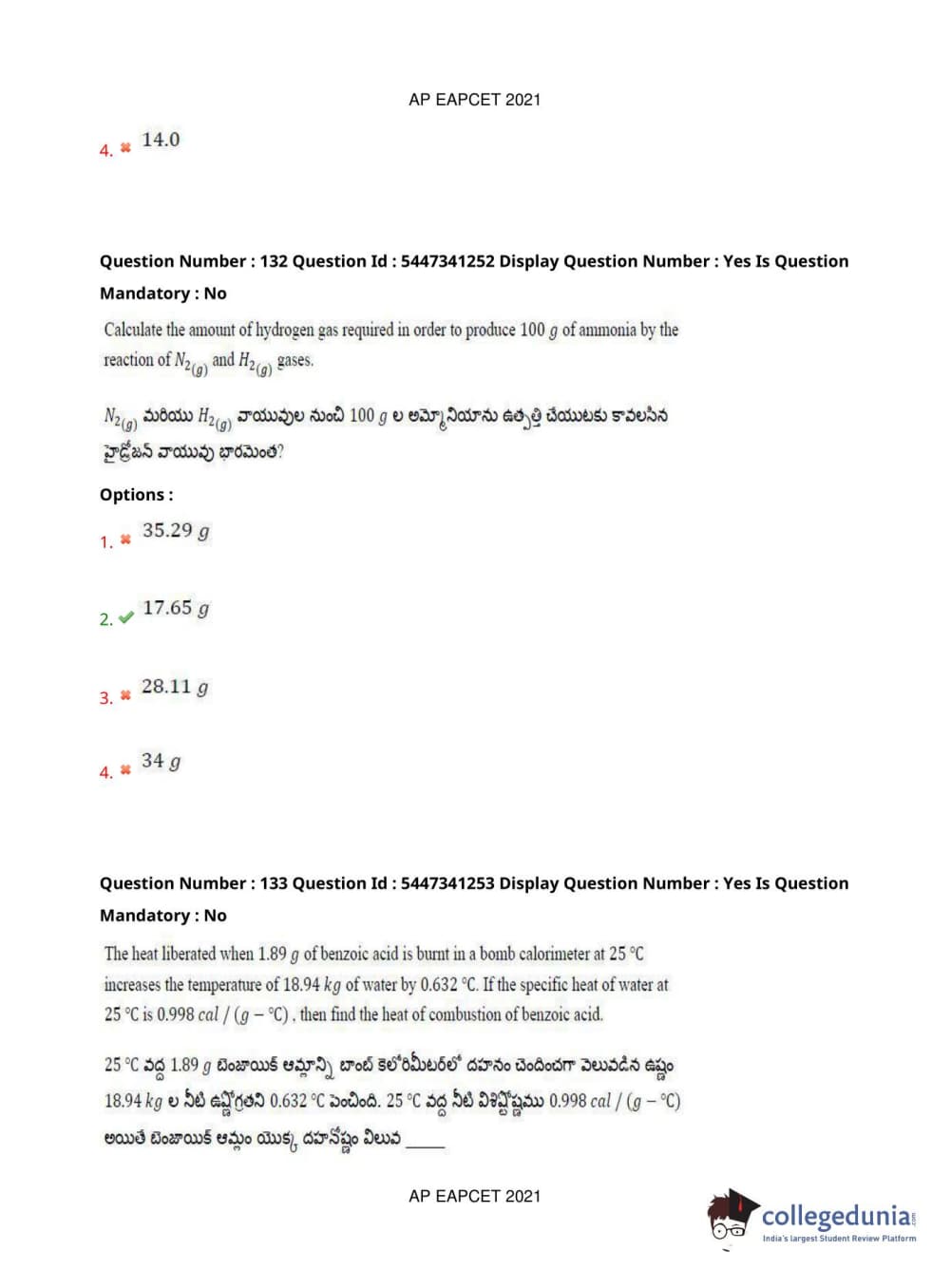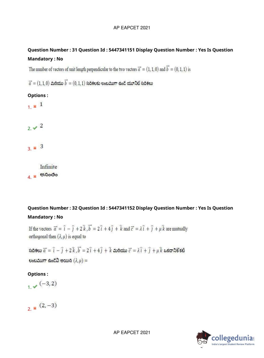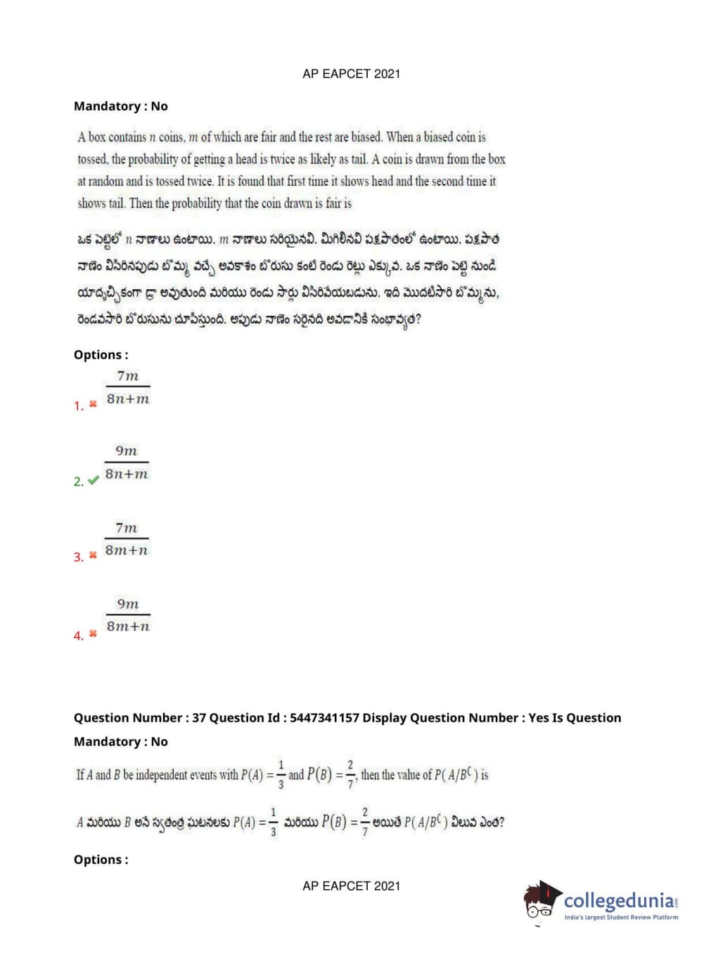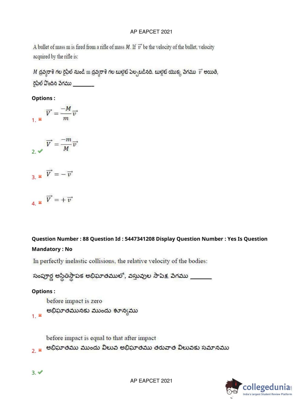 | AP EAPCET 2021 Engineering Question Paper PDF | AP EAPCET 2021 Engineering Answer Key PDF |