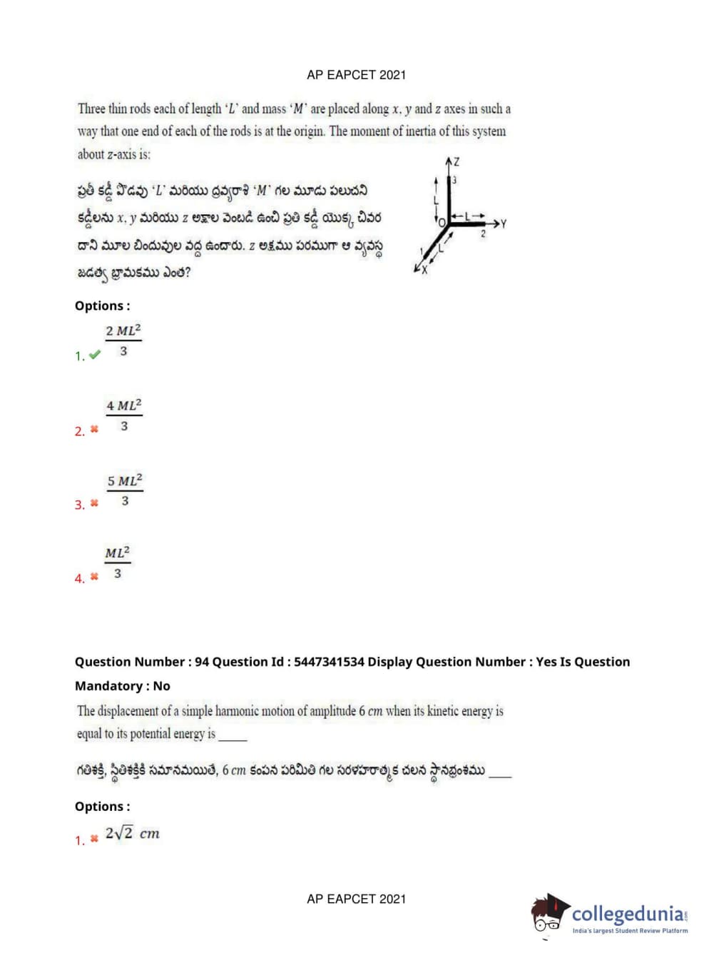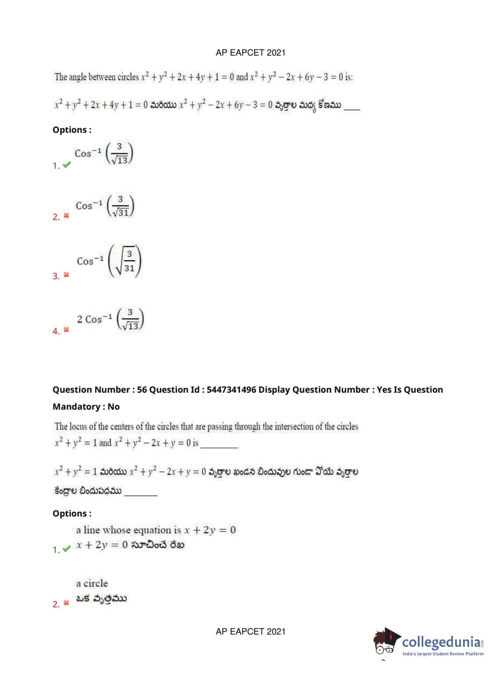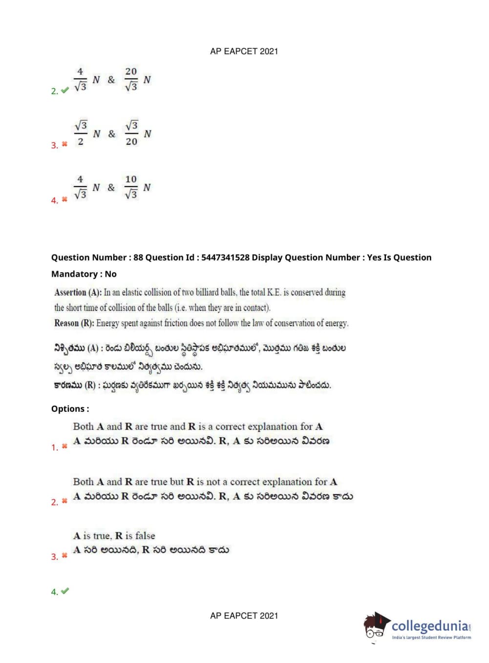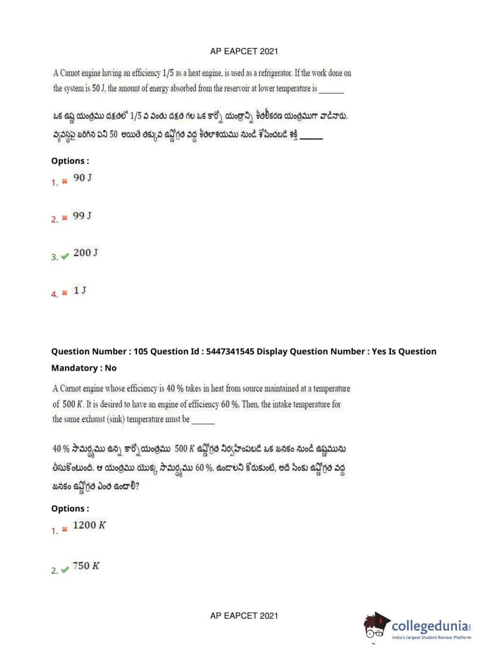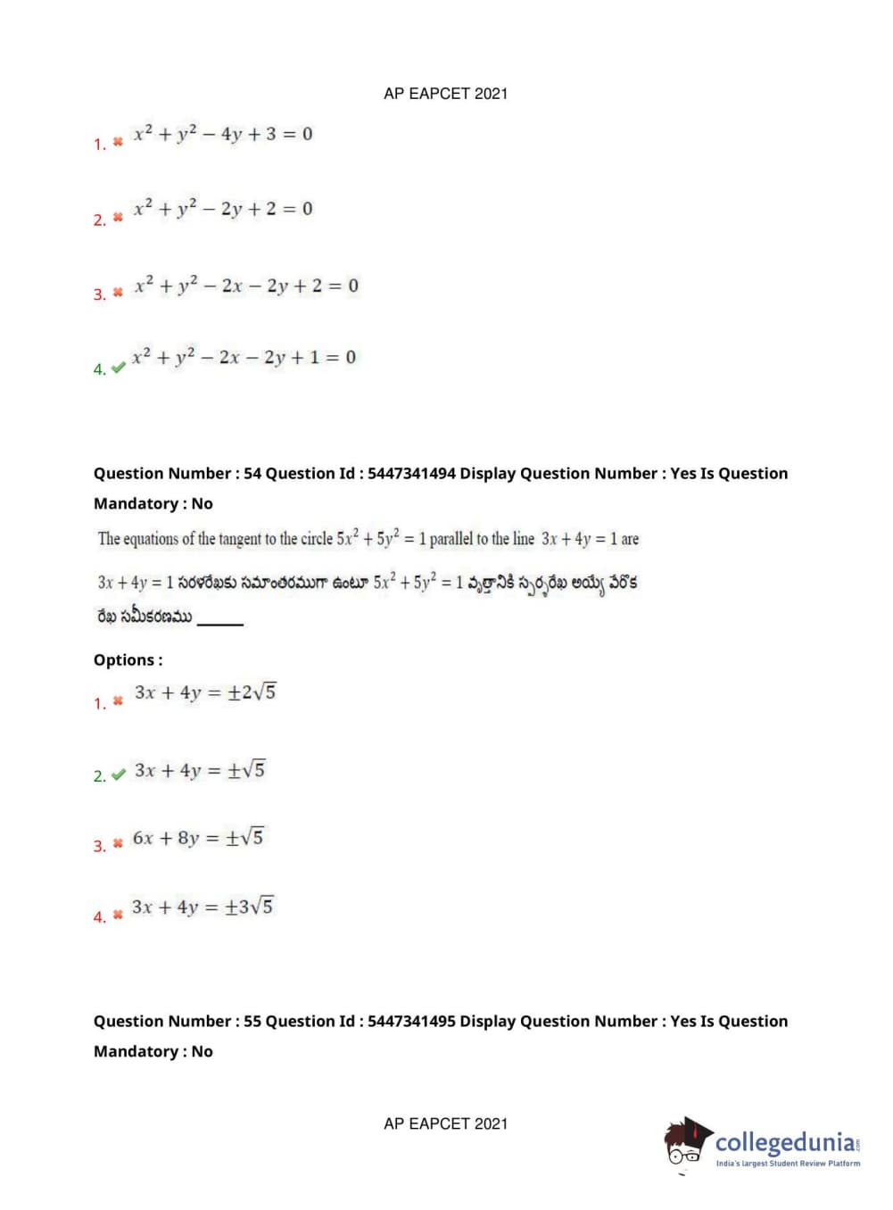 AP EAPCET 2021 Engineering Question Paper with Answer Key PDFs Afternoon Session