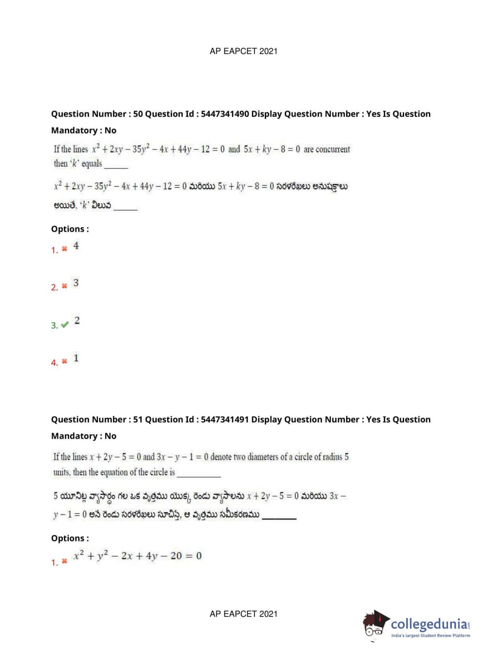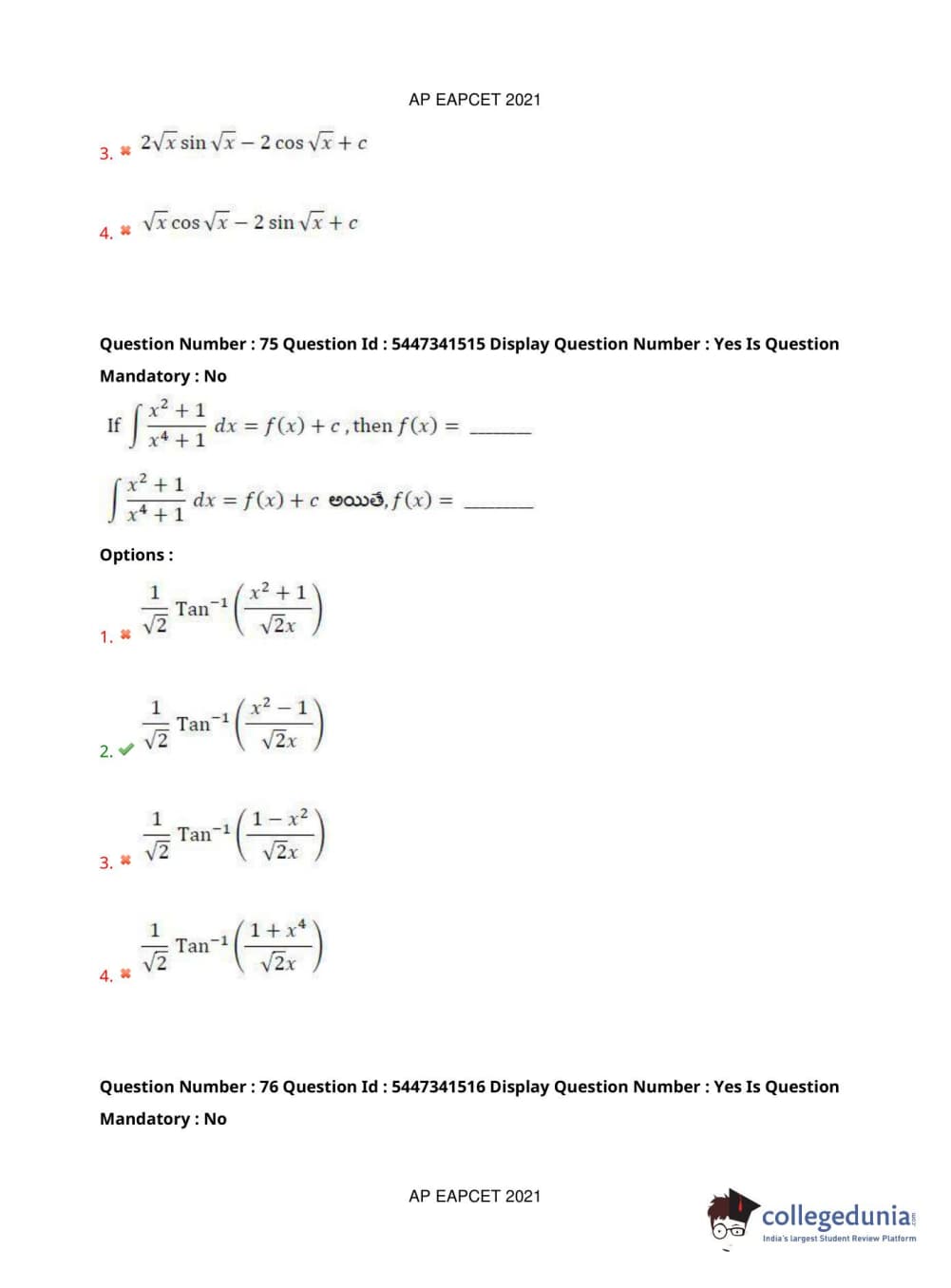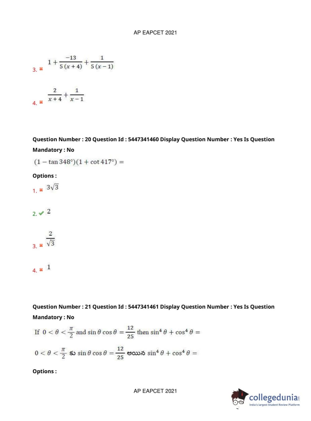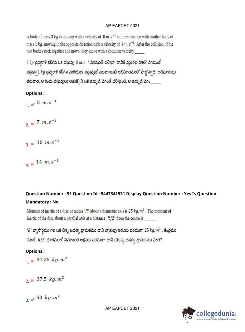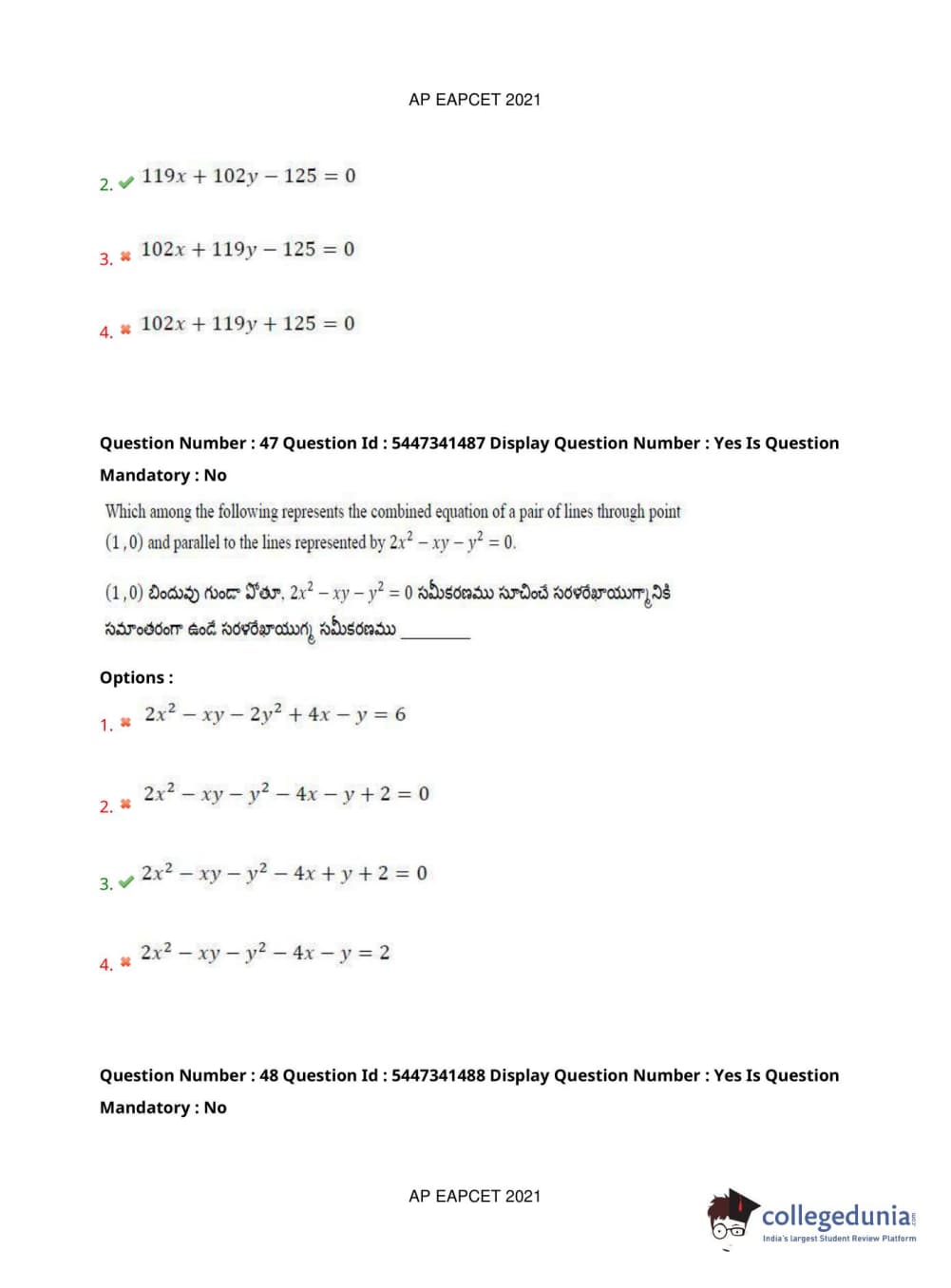 AP EAPCET 2021 Engineering Question Paper with Answer Key PDFs Afternoon Session