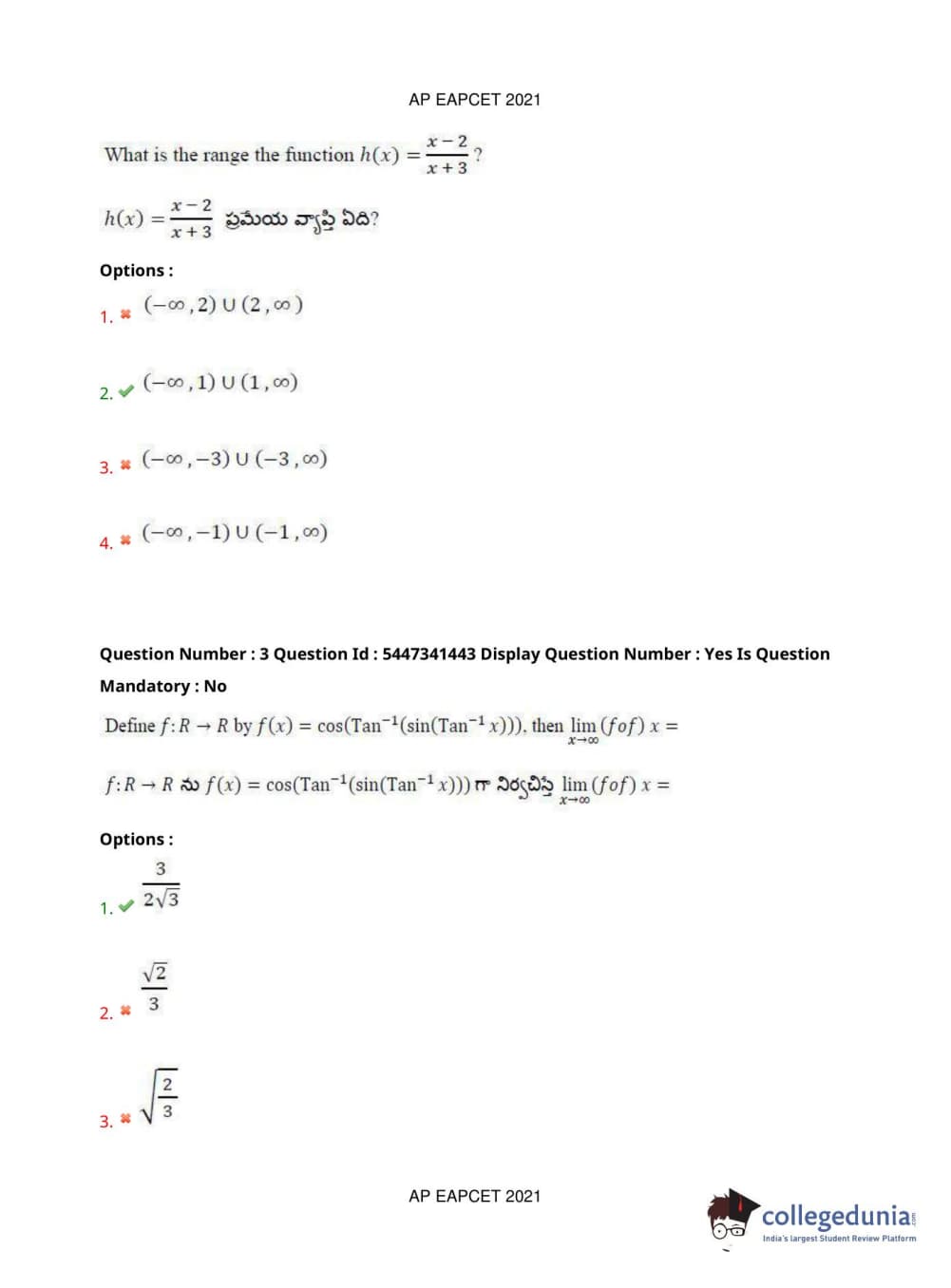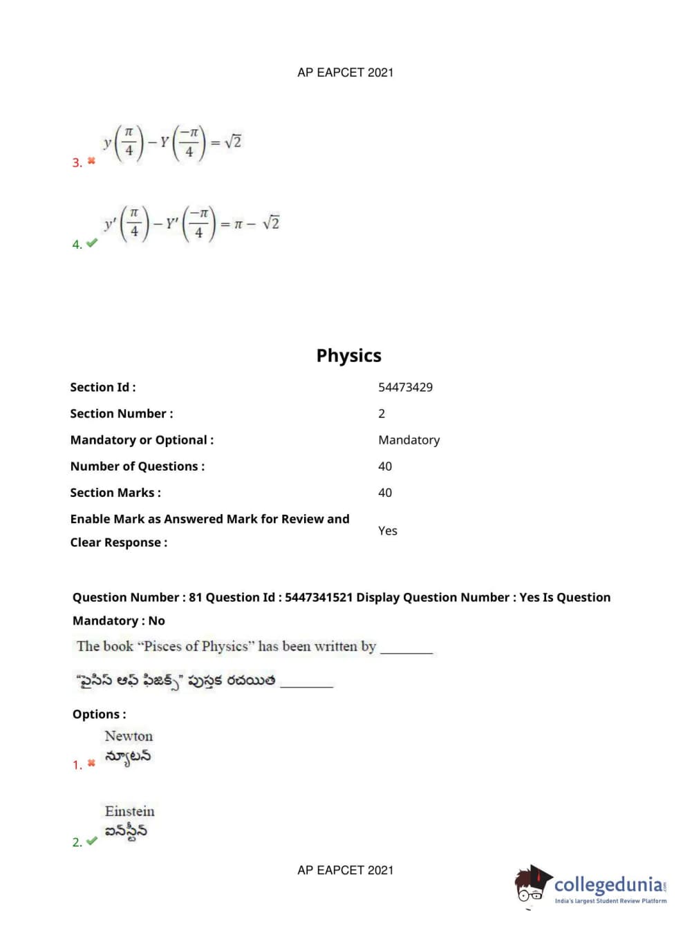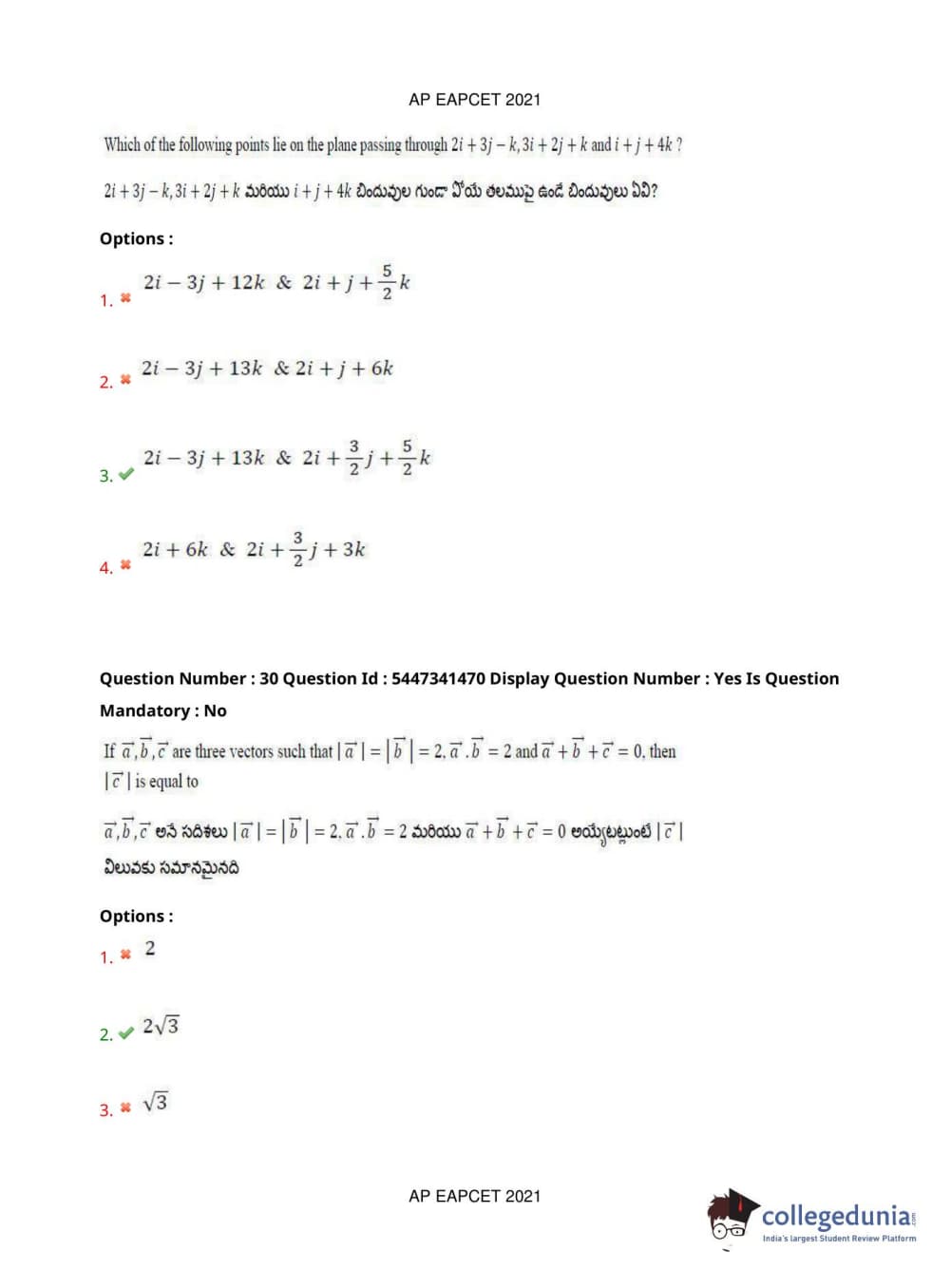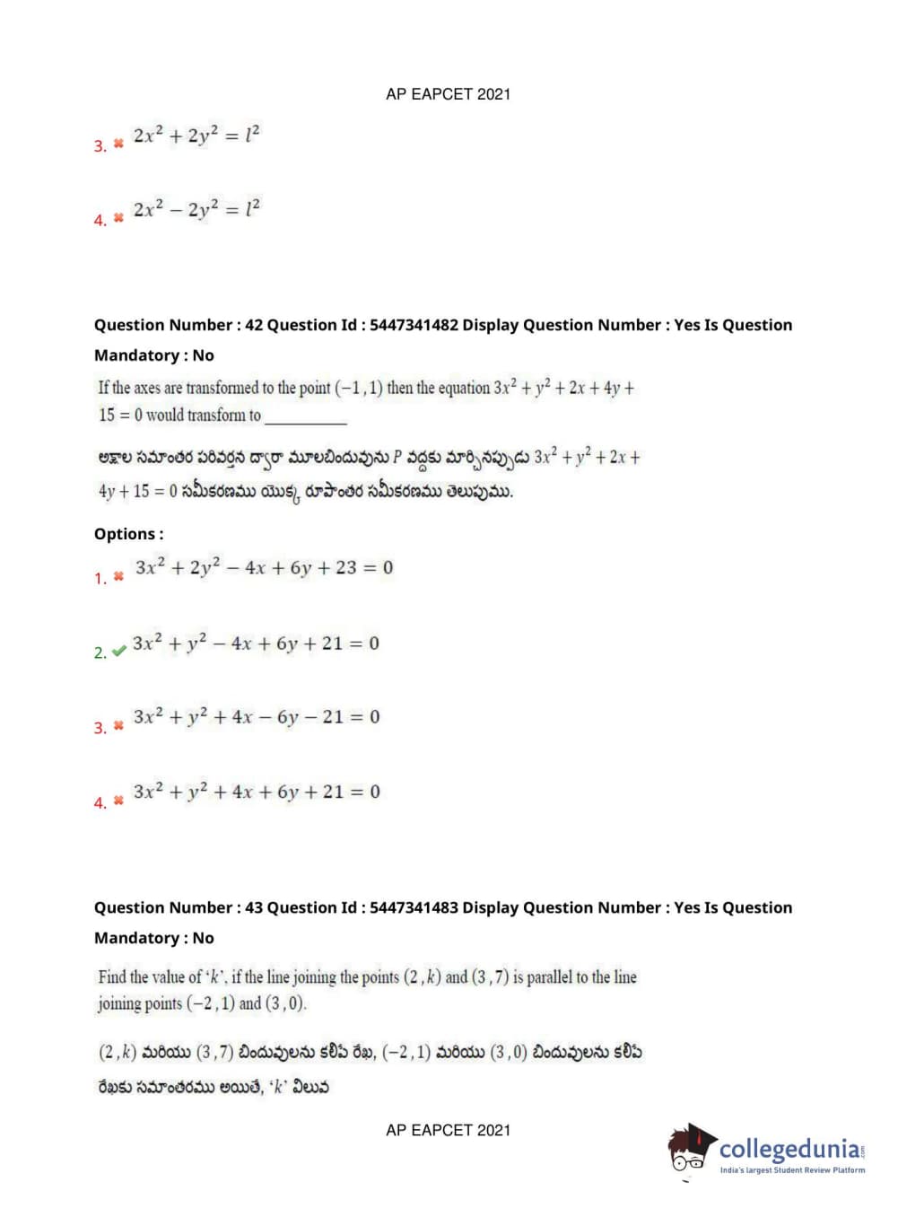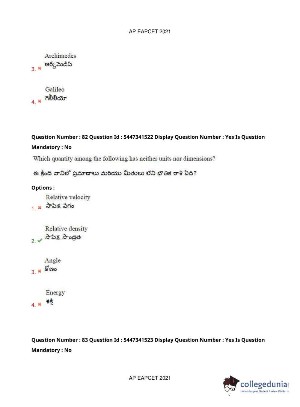 AP EAPCET 2021 Engineering Question Paper with Answer Key PDFs Afternoon Session
