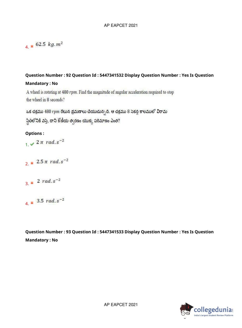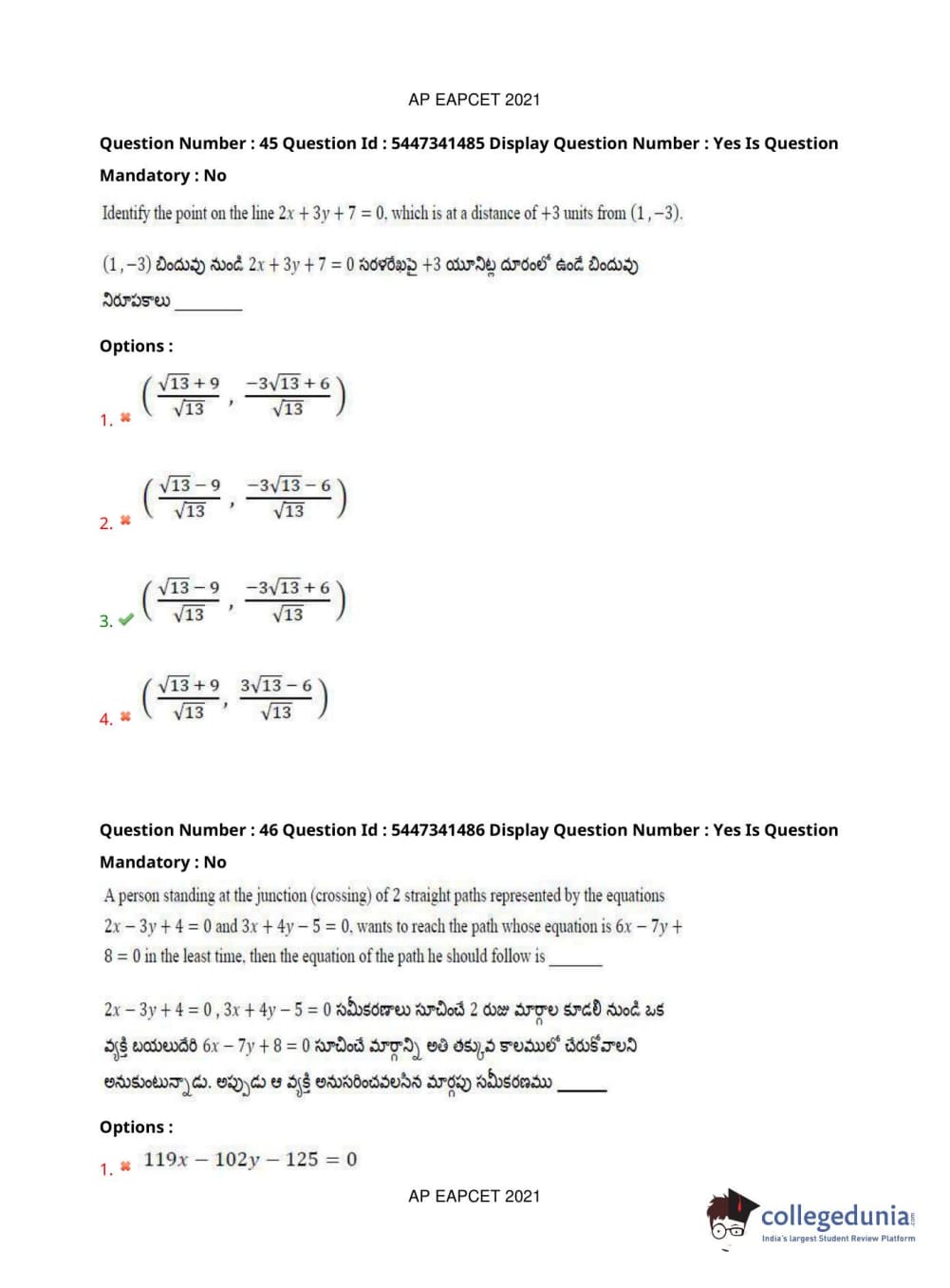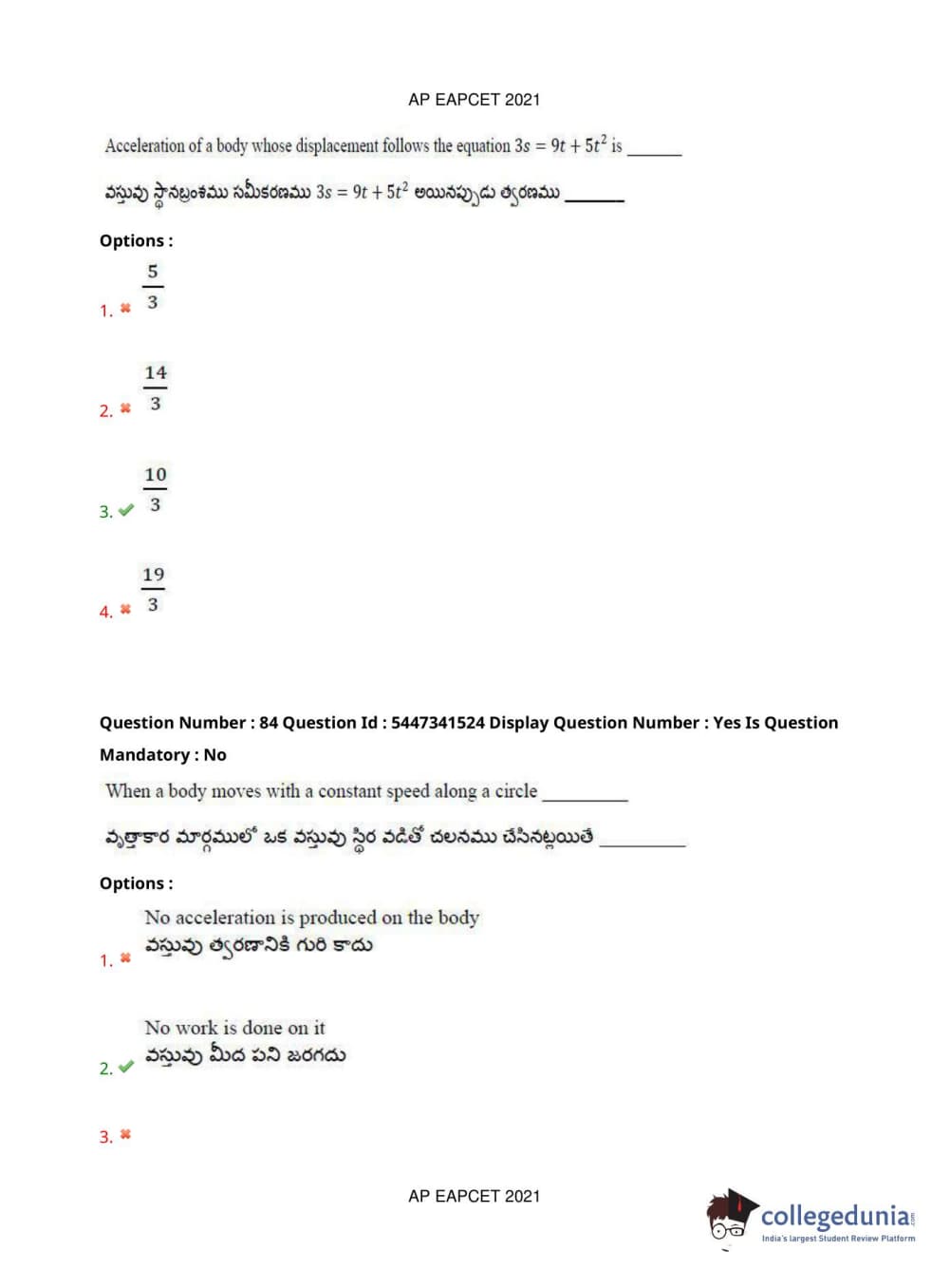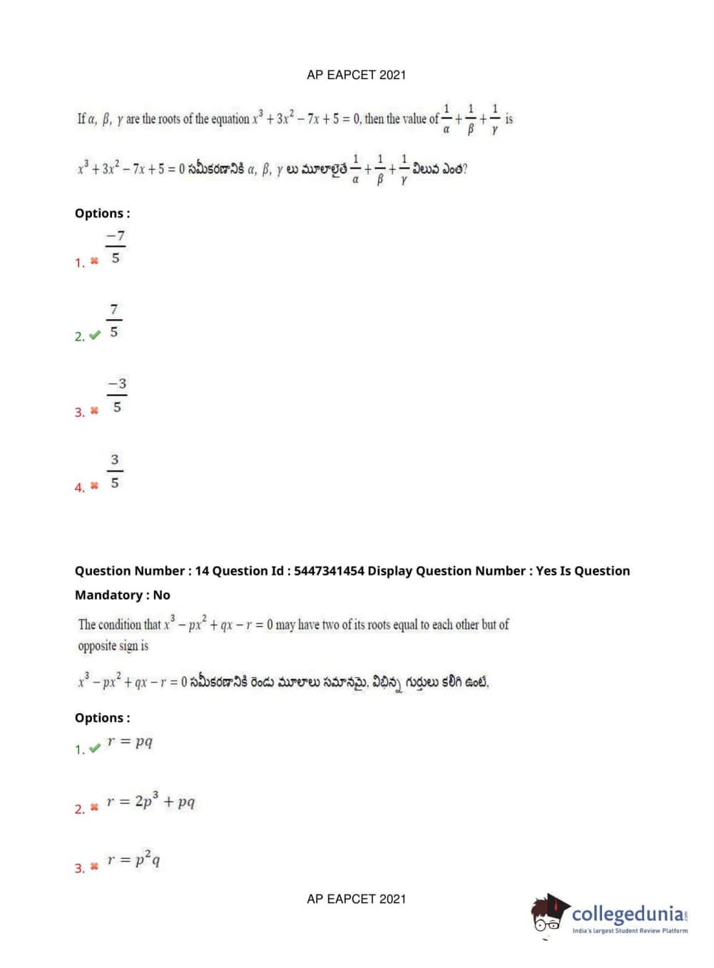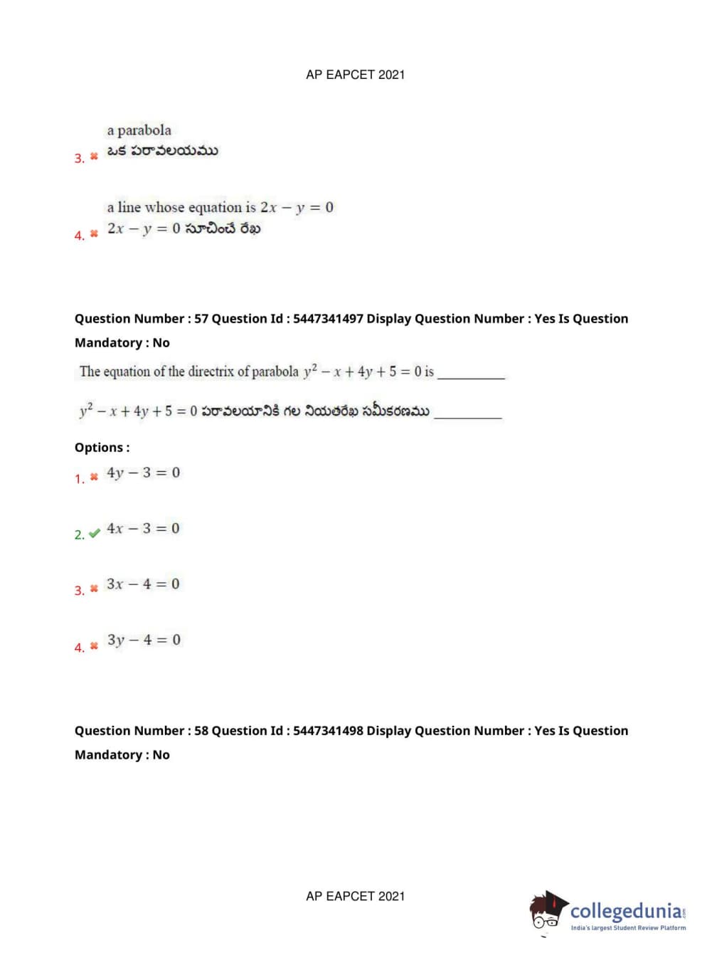 AP EAPCET 2021 Engineering Question Paper with Answer Key PDFs Afternoon Session