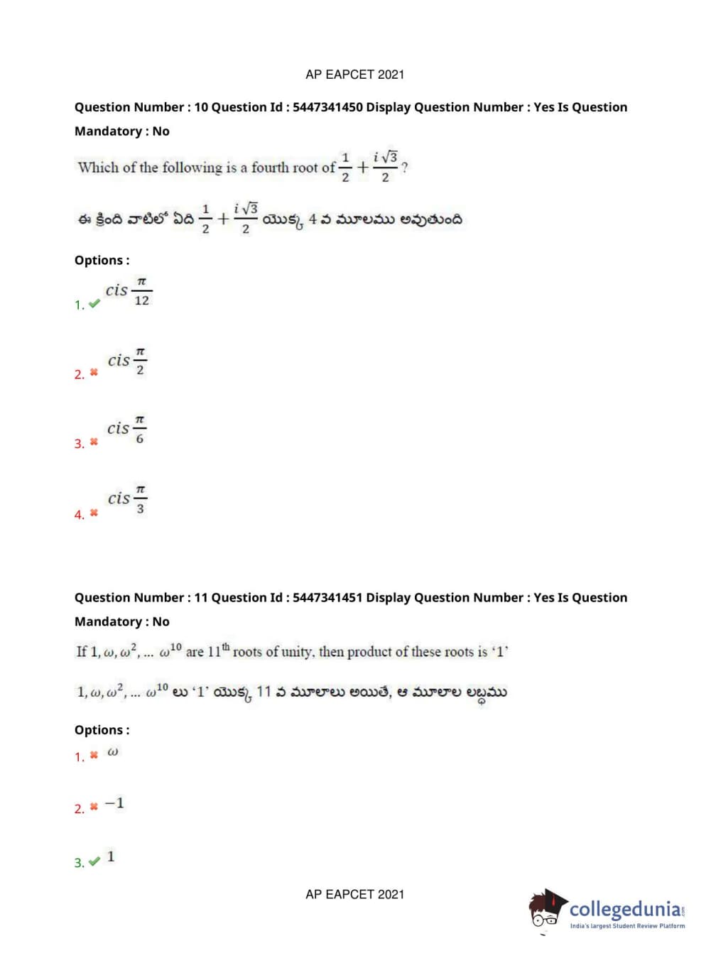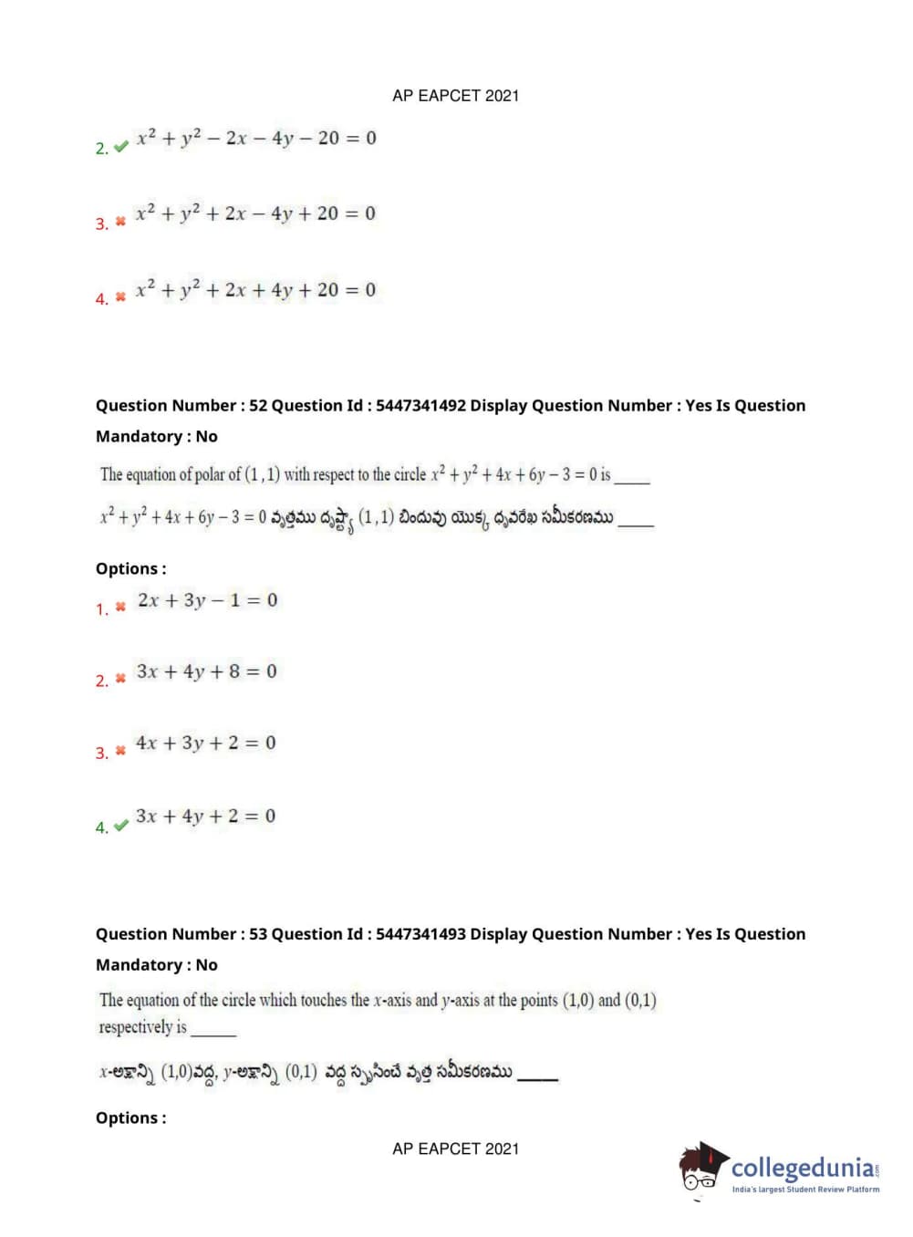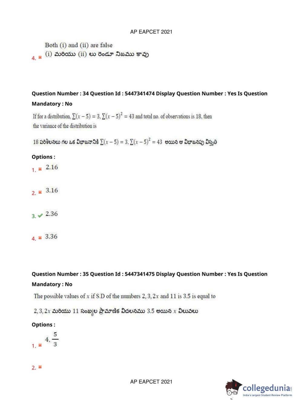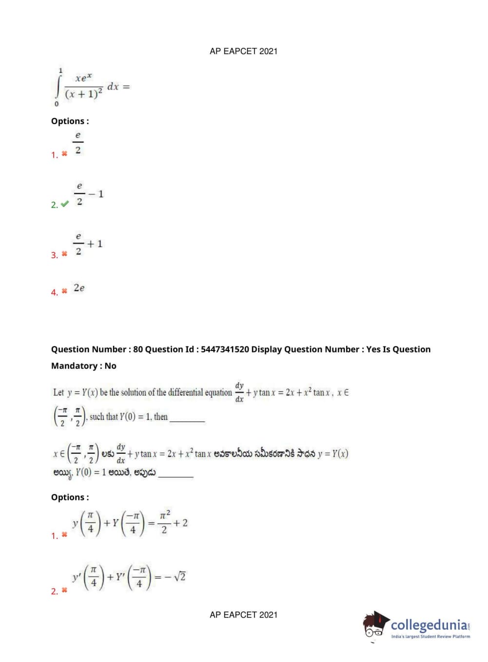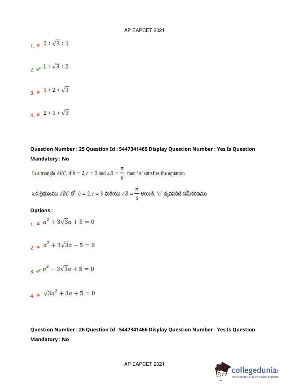 AP EAPCET 2021 Engineering Question Paper with Answer Key PDFs Afternoon Session