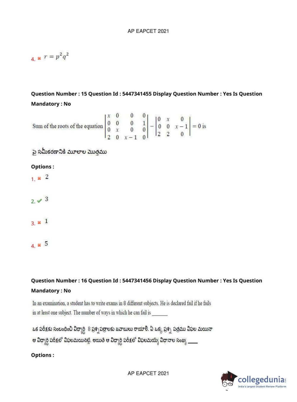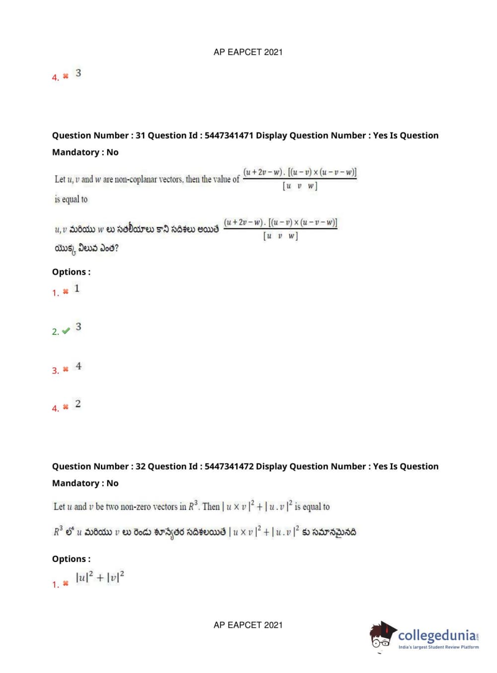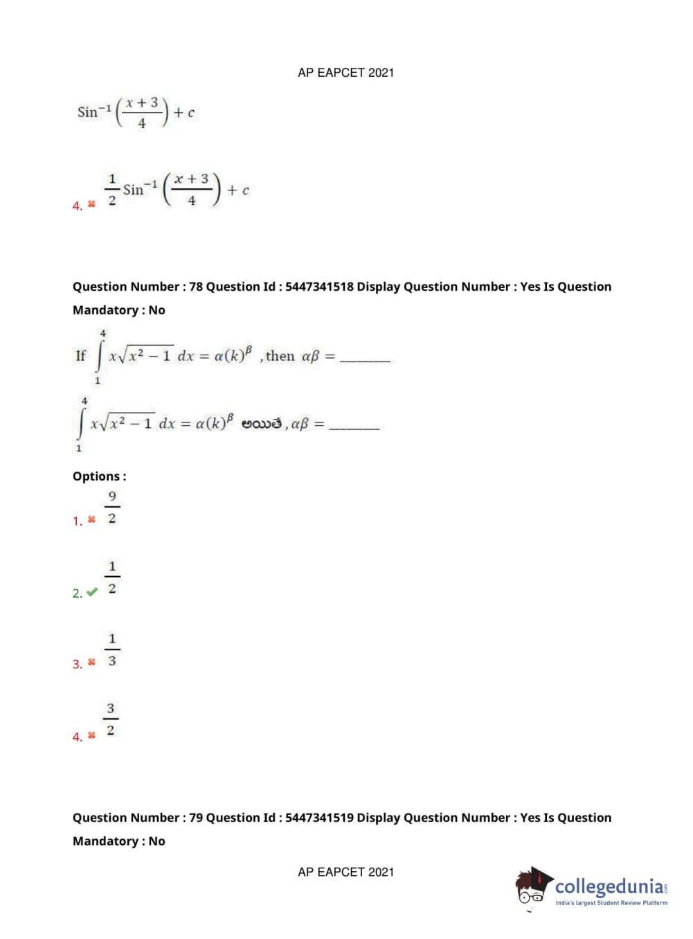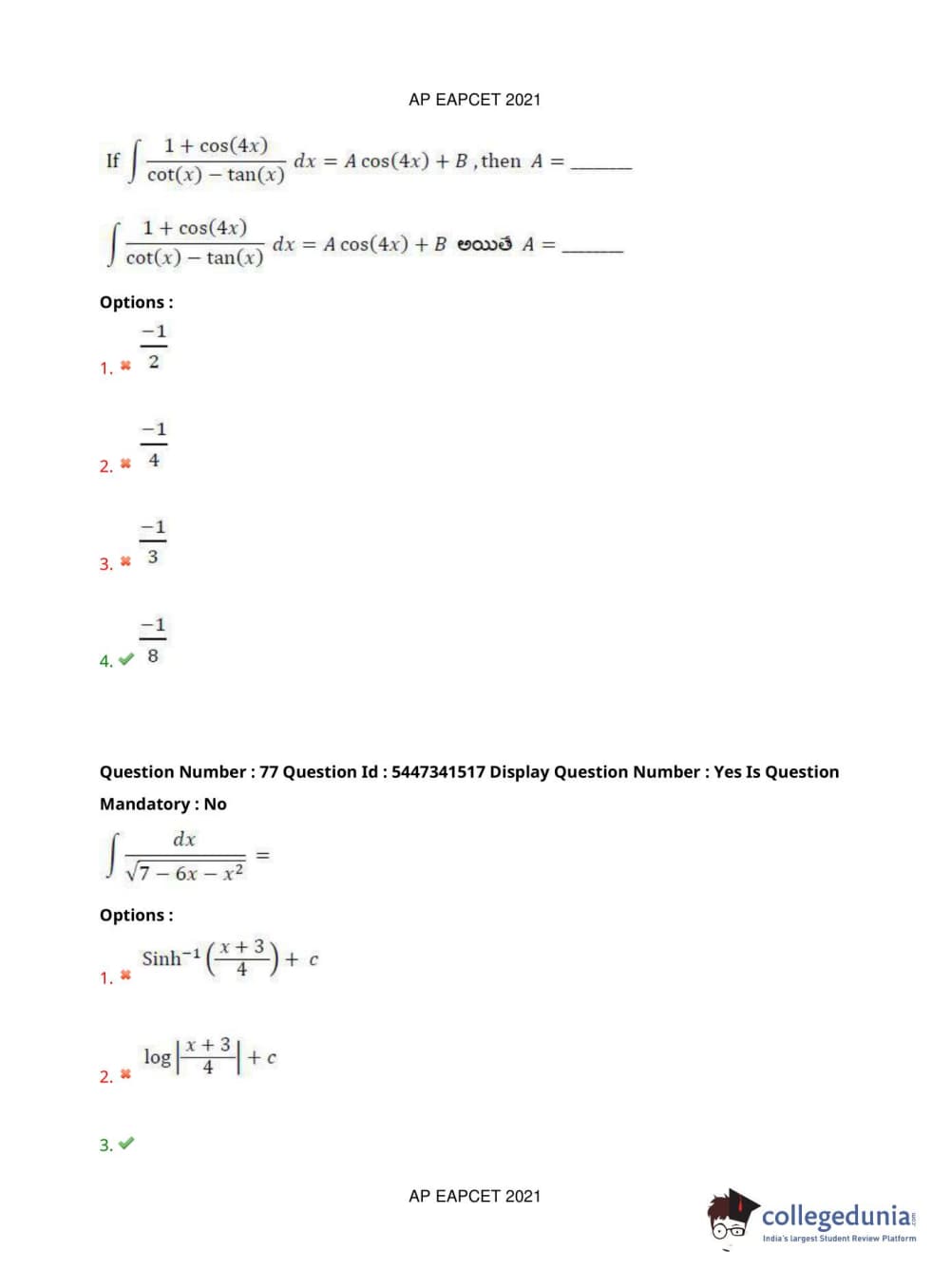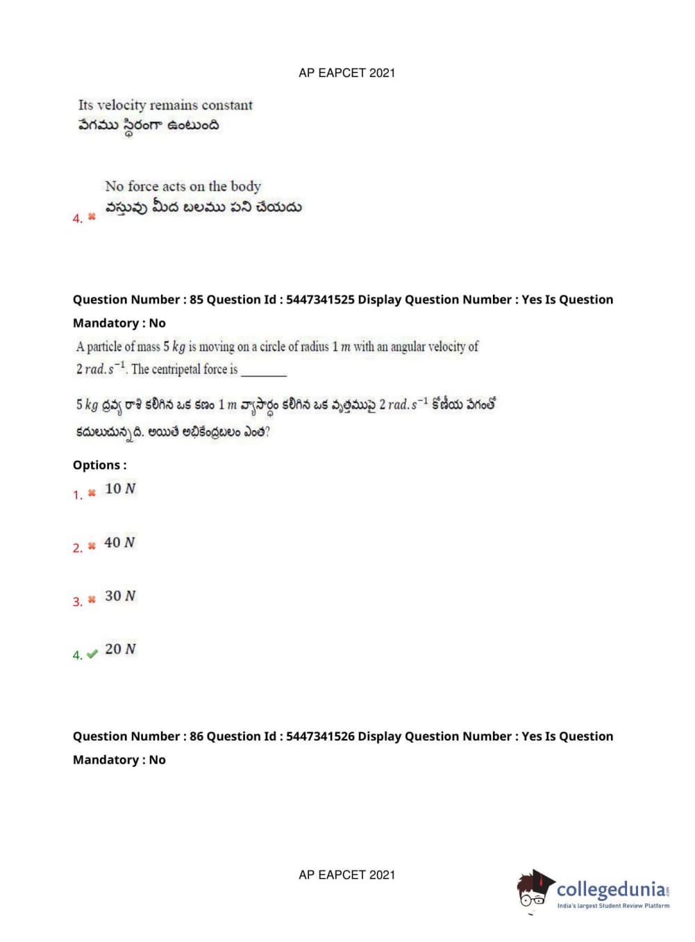 AP EAPCET 2021 Engineering Question Paper with Answer Key PDFs Afternoon Session