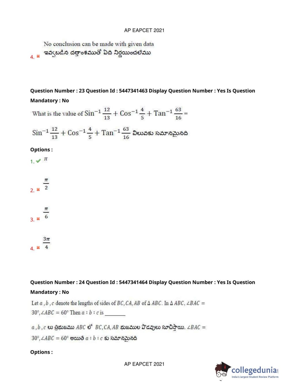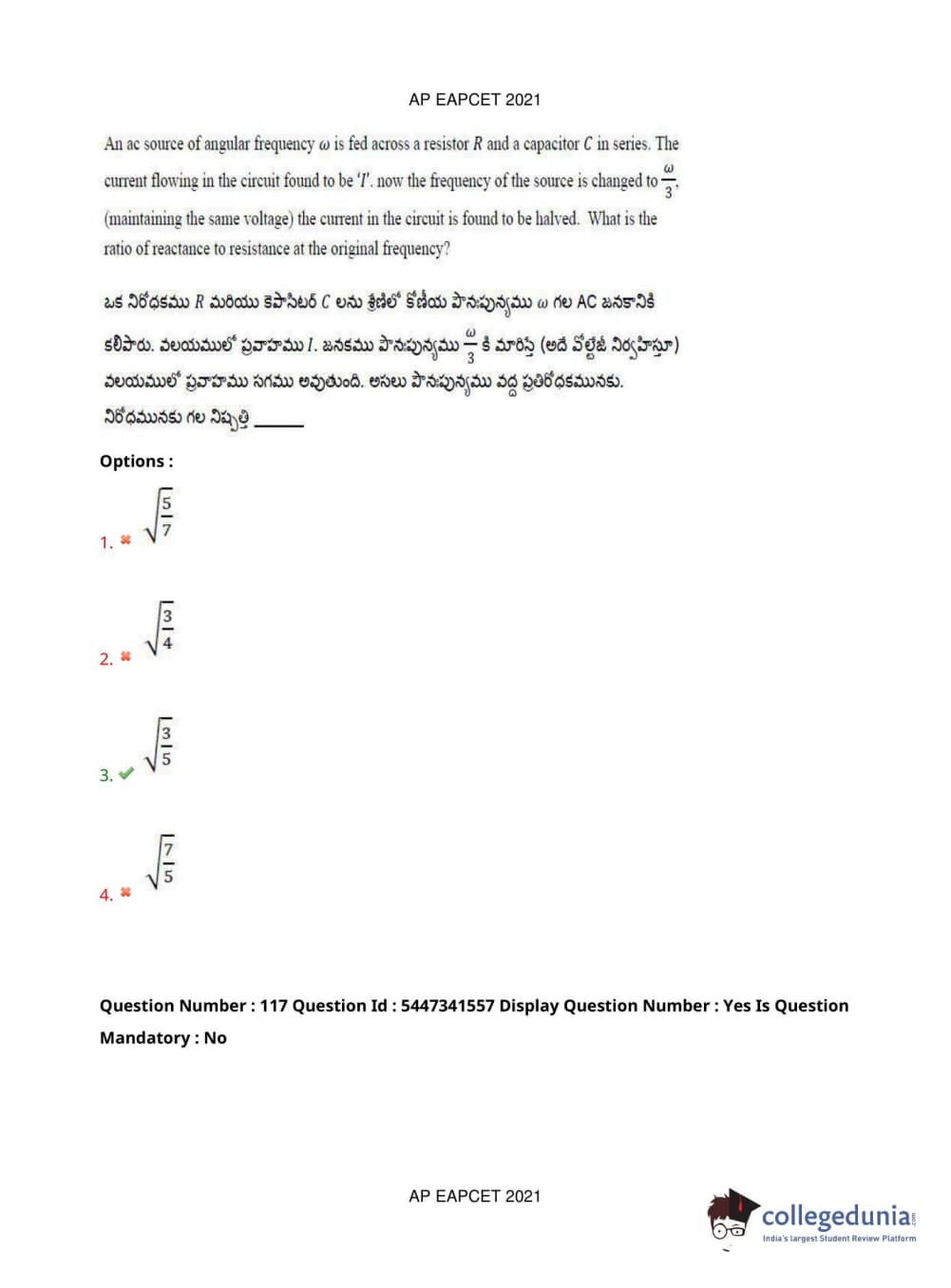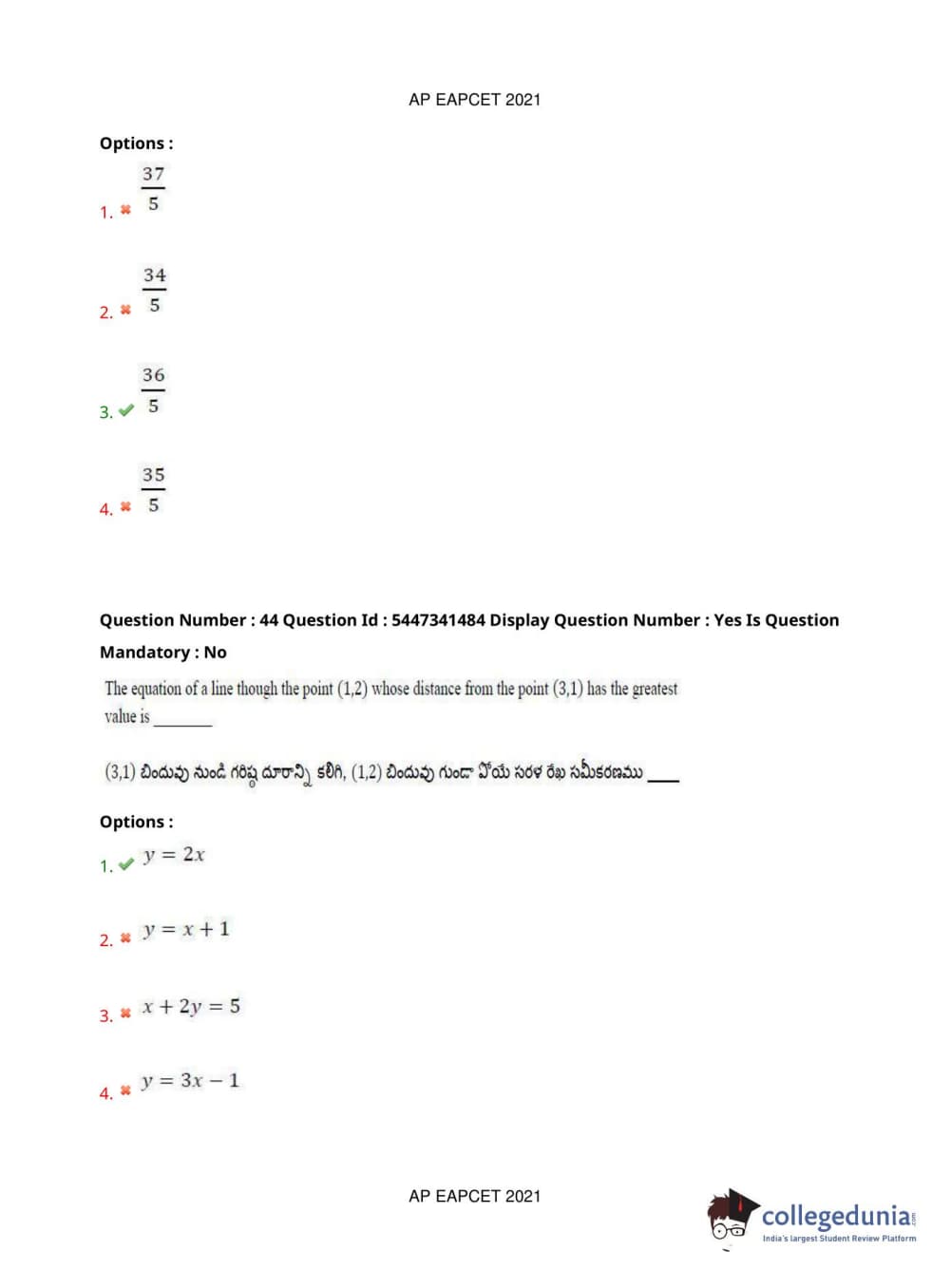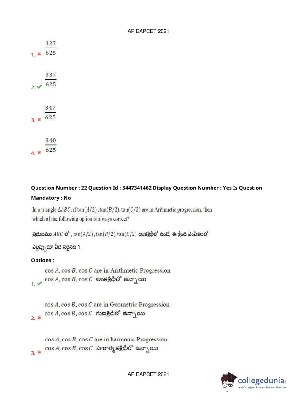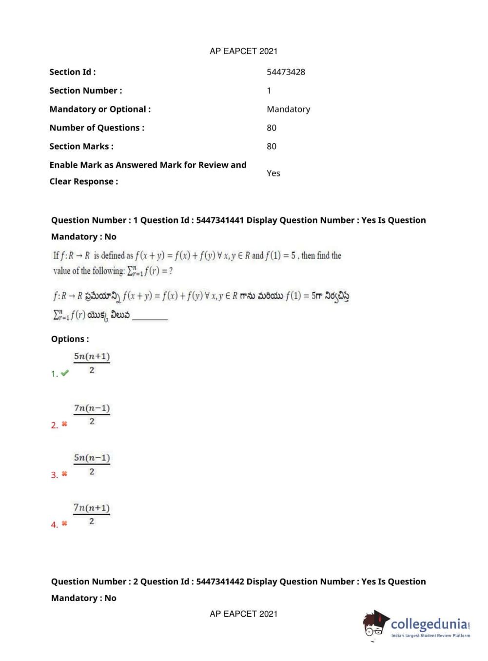 AP EAPCET 2021 Engineering Question Paper with Answer Key PDFs Afternoon Session