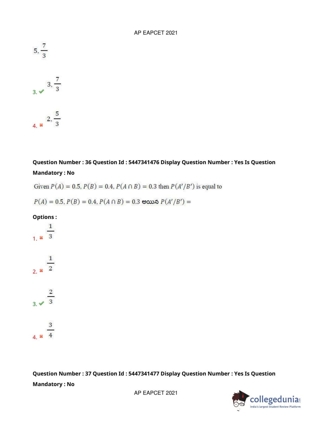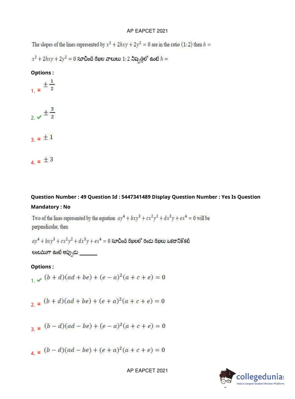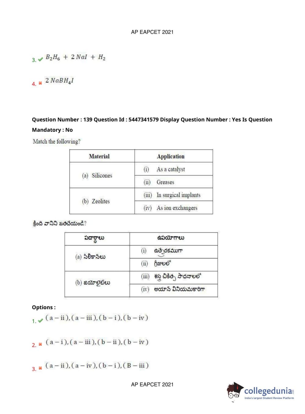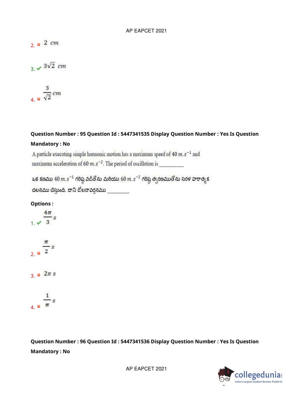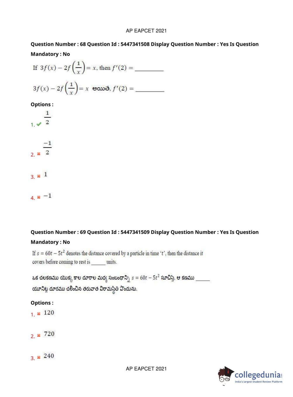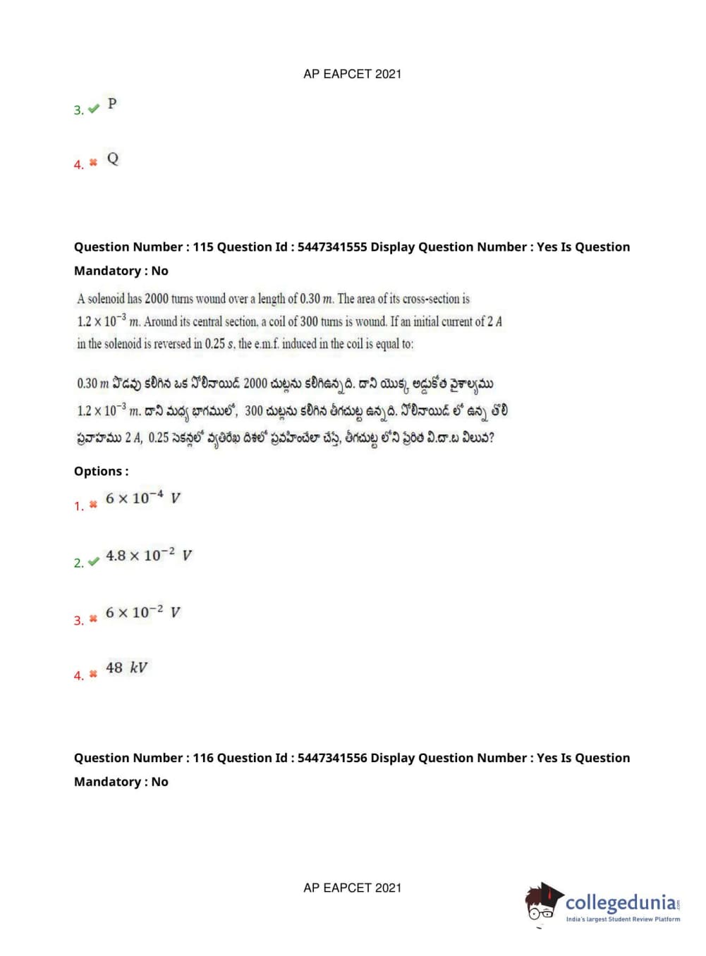 AP EAPCET 2021 Engineering Question Paper with Answer Key PDFs Afternoon Session