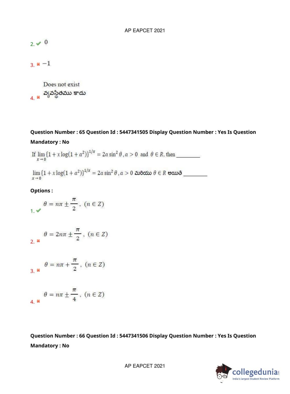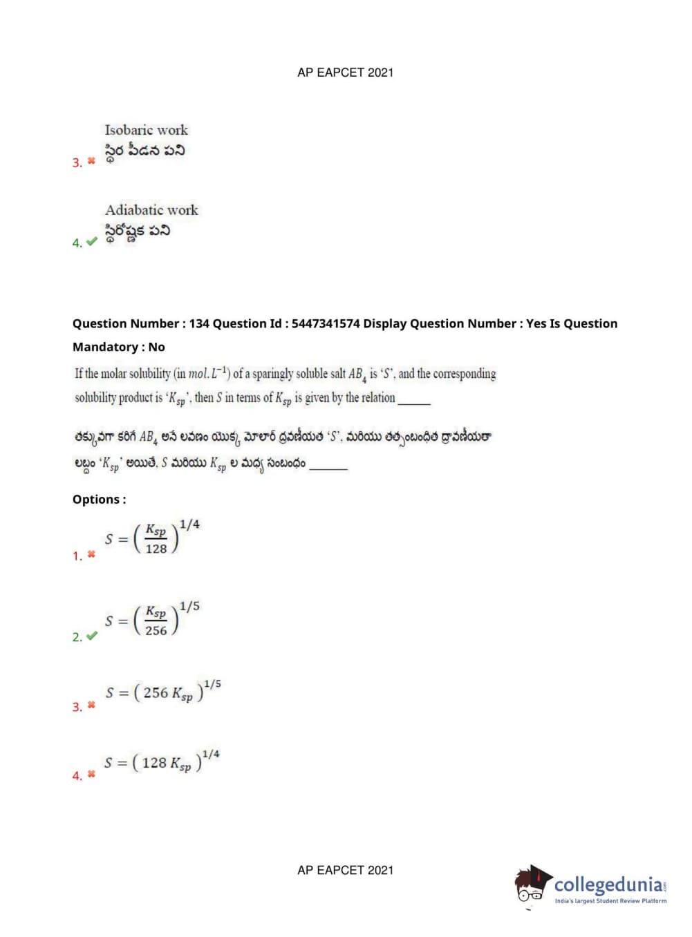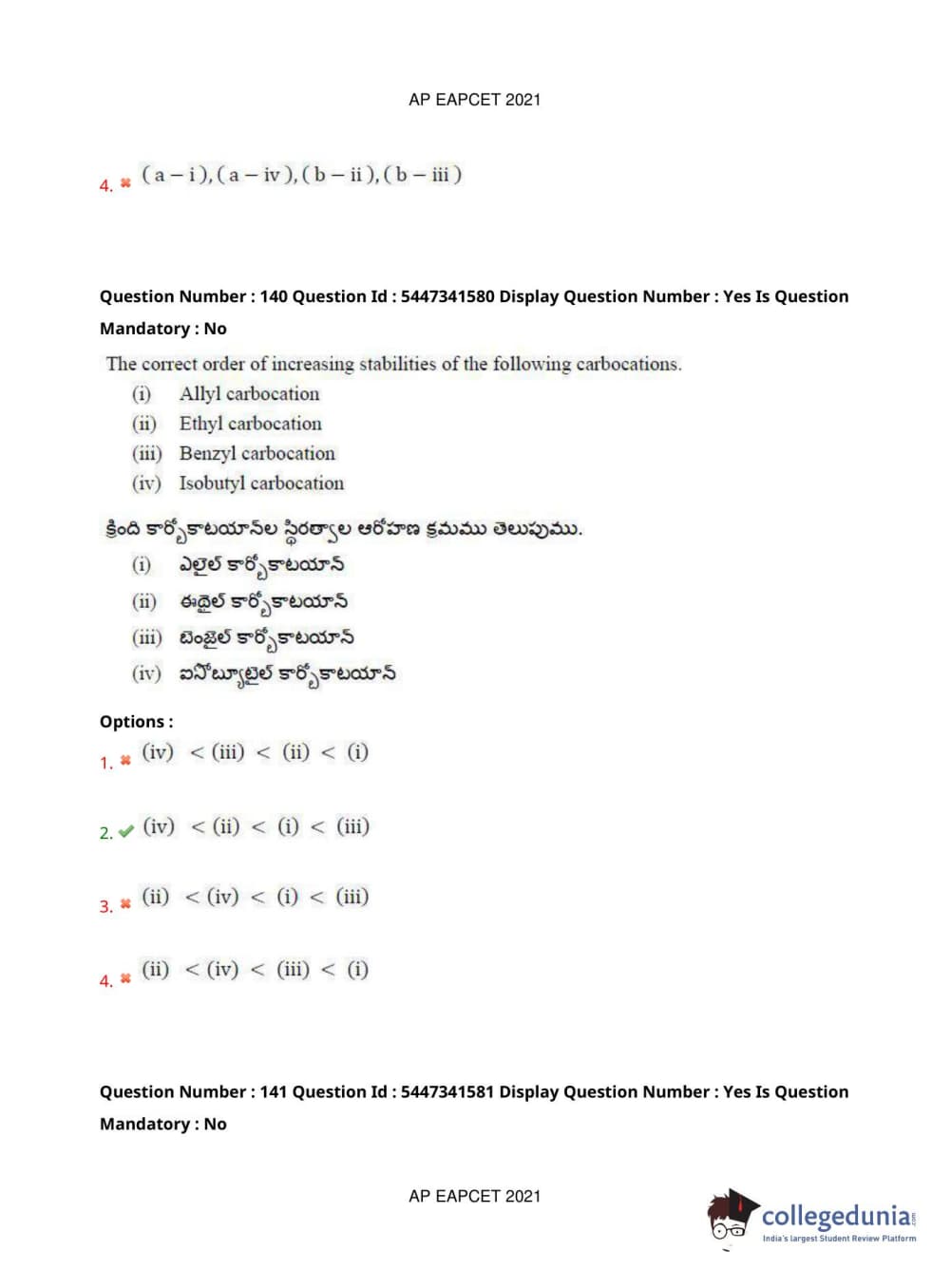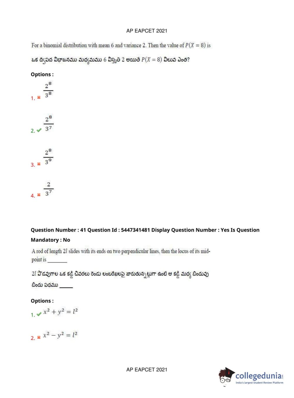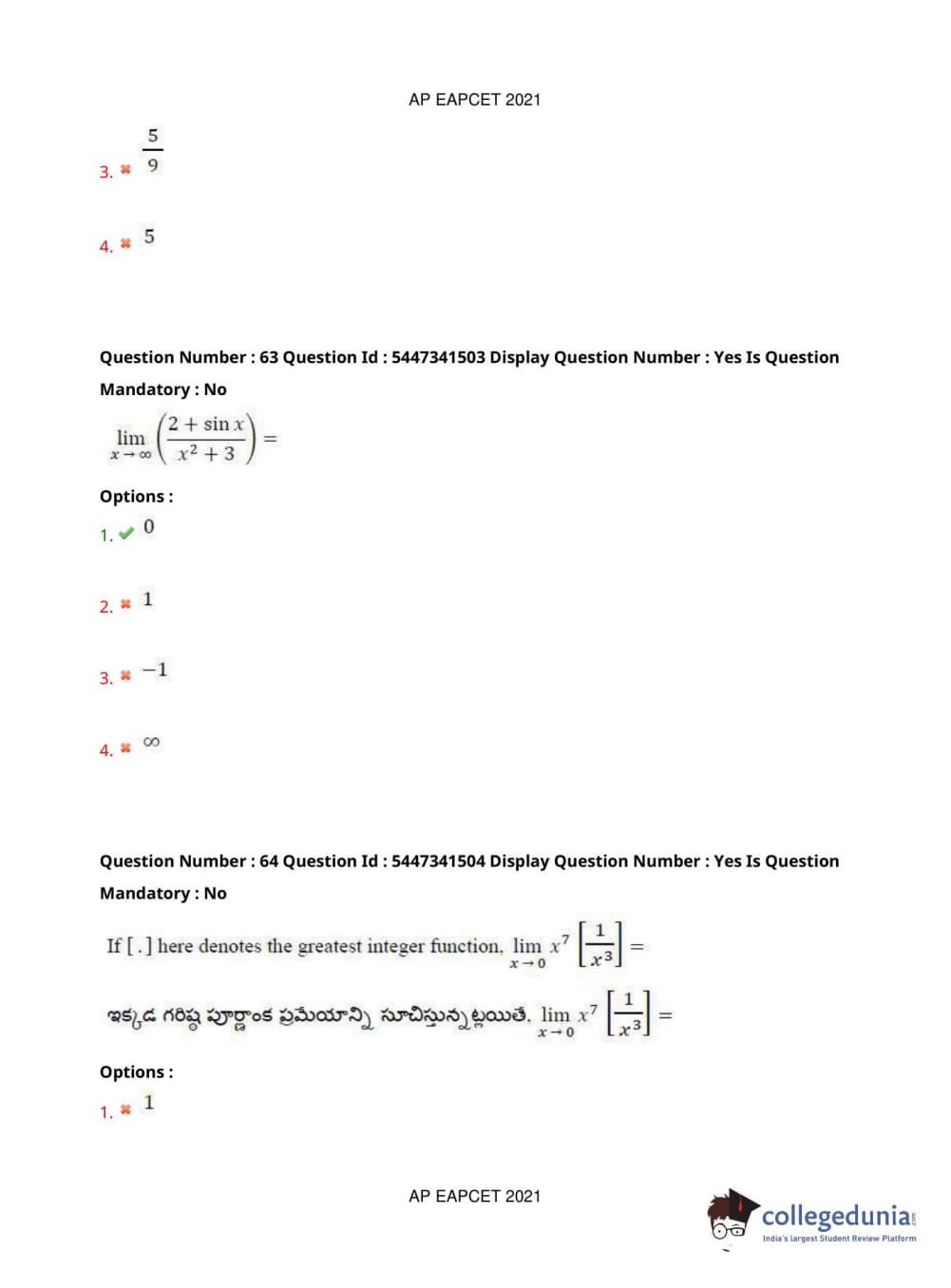 AP EAPCET 2021 Engineering Question Paper with Answer Key PDFs Afternoon Session