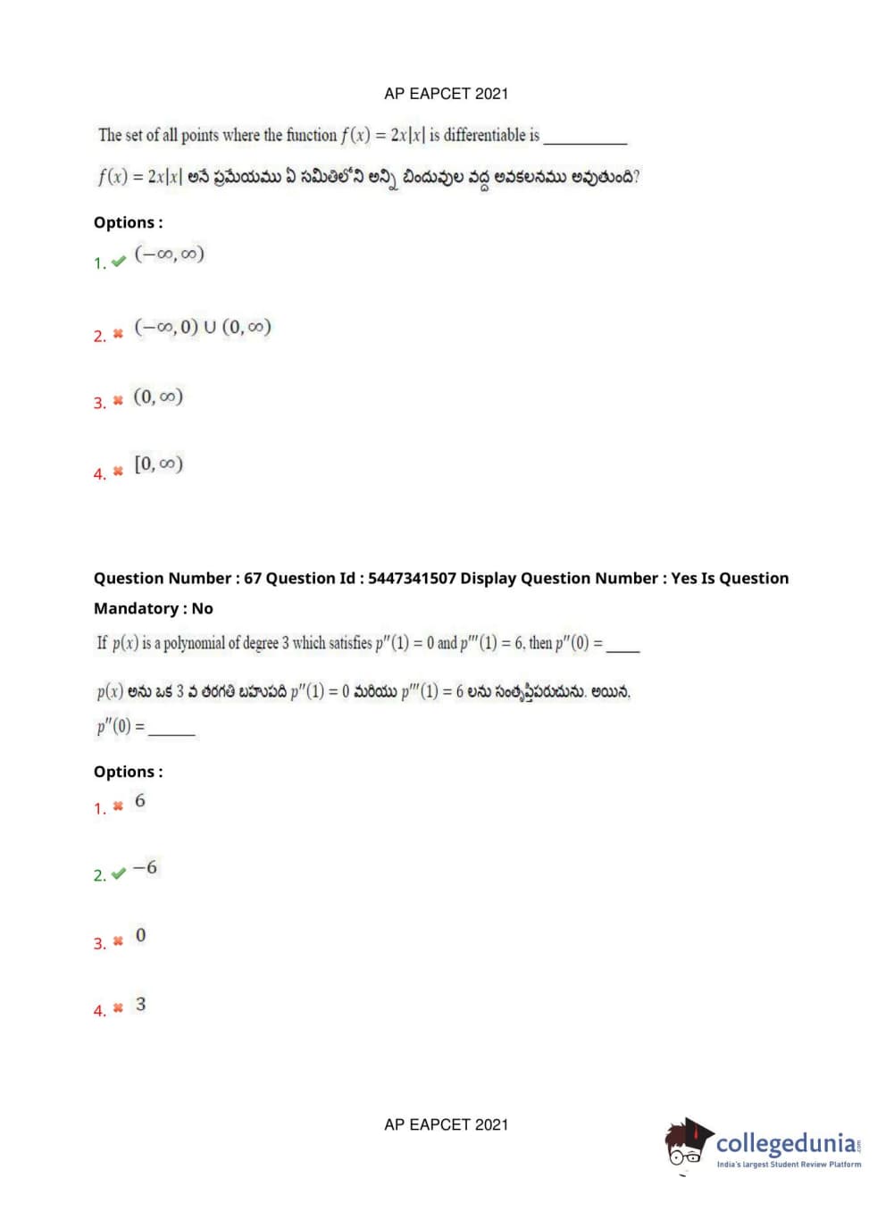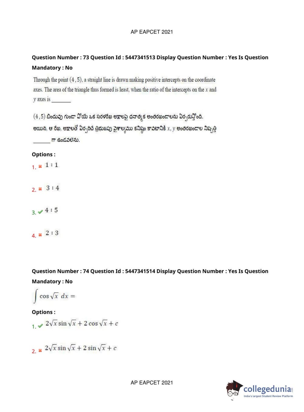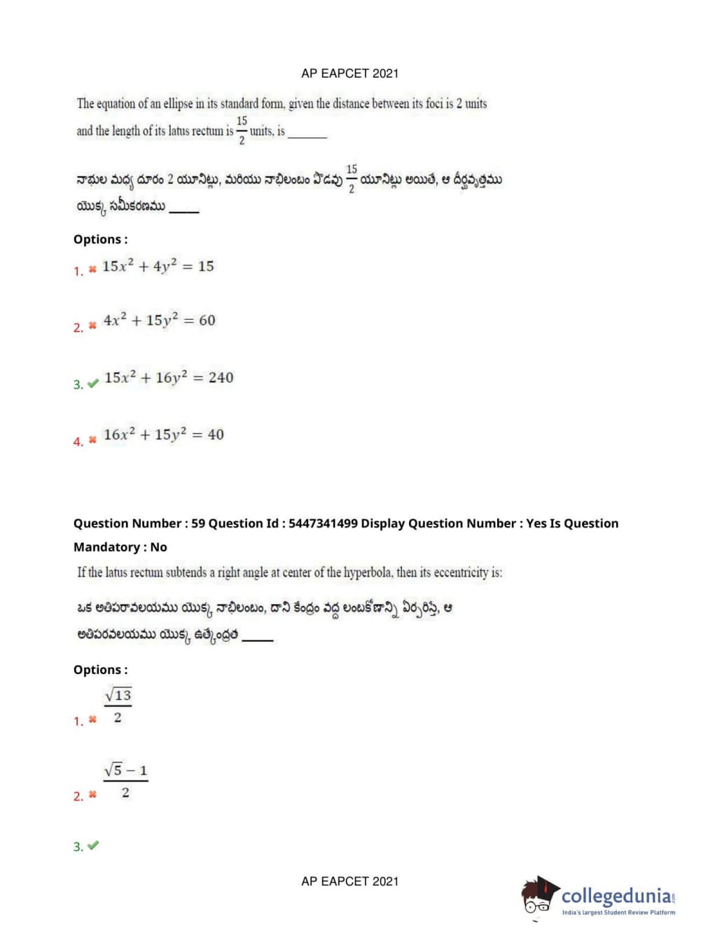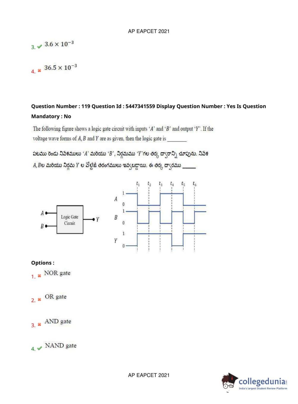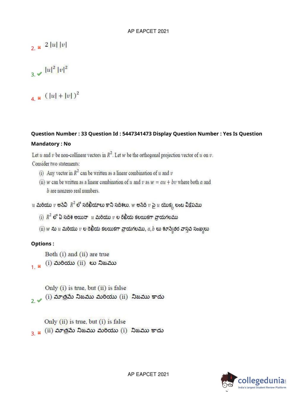 AP EAPCET 2021 Engineering Question Paper with Answer Key PDFs Afternoon Session