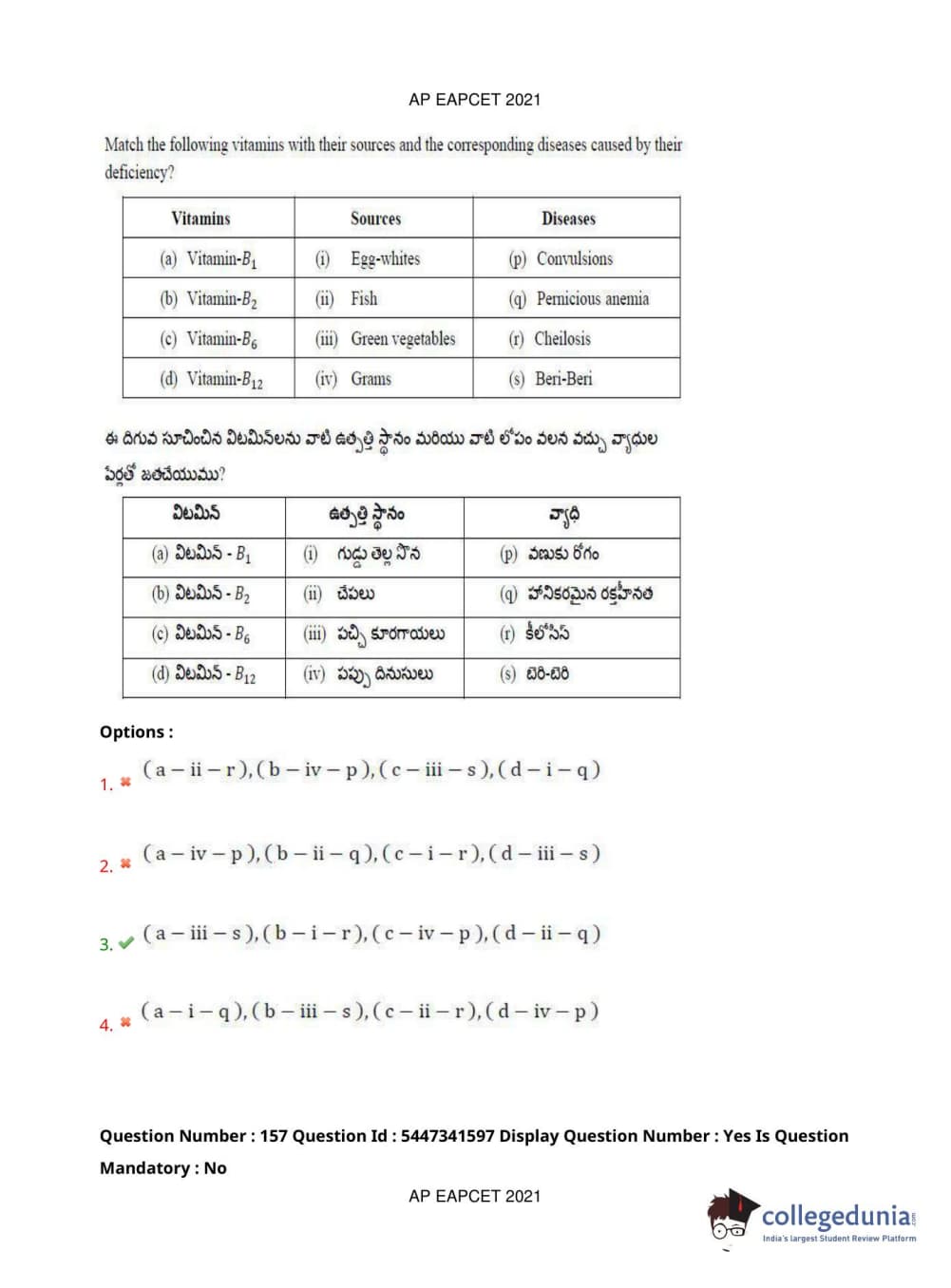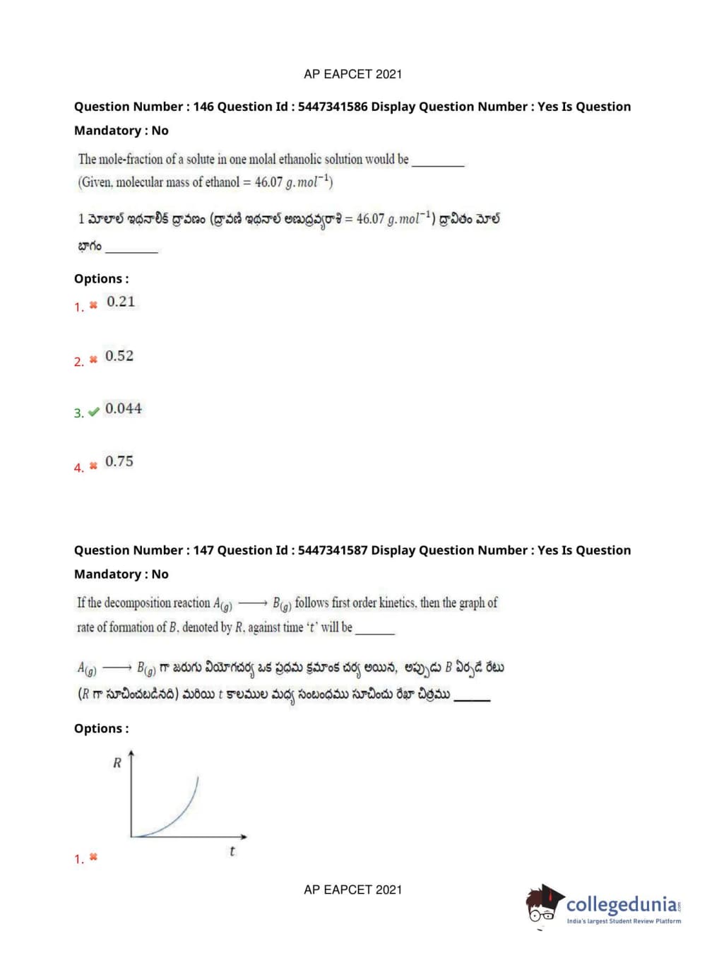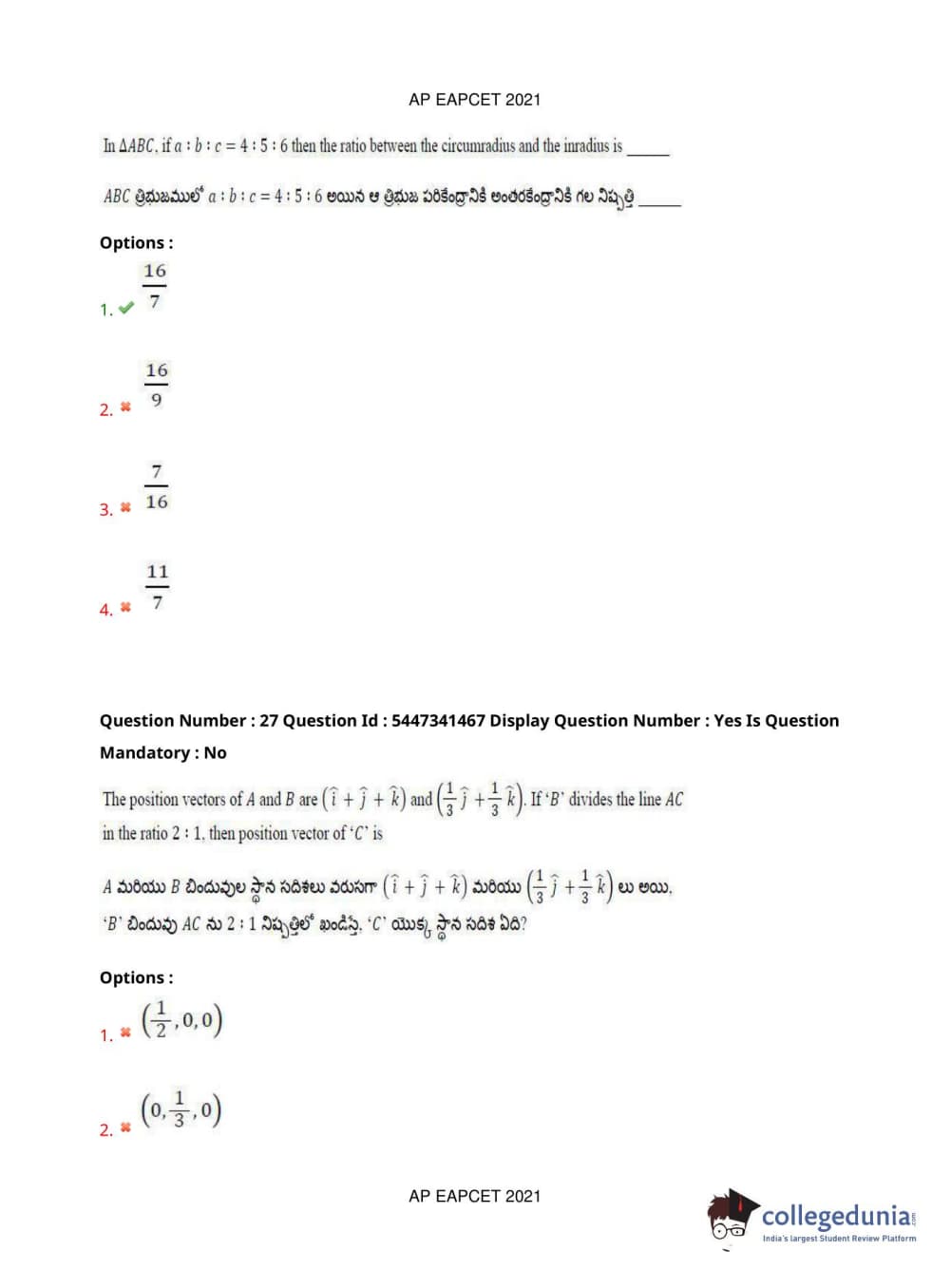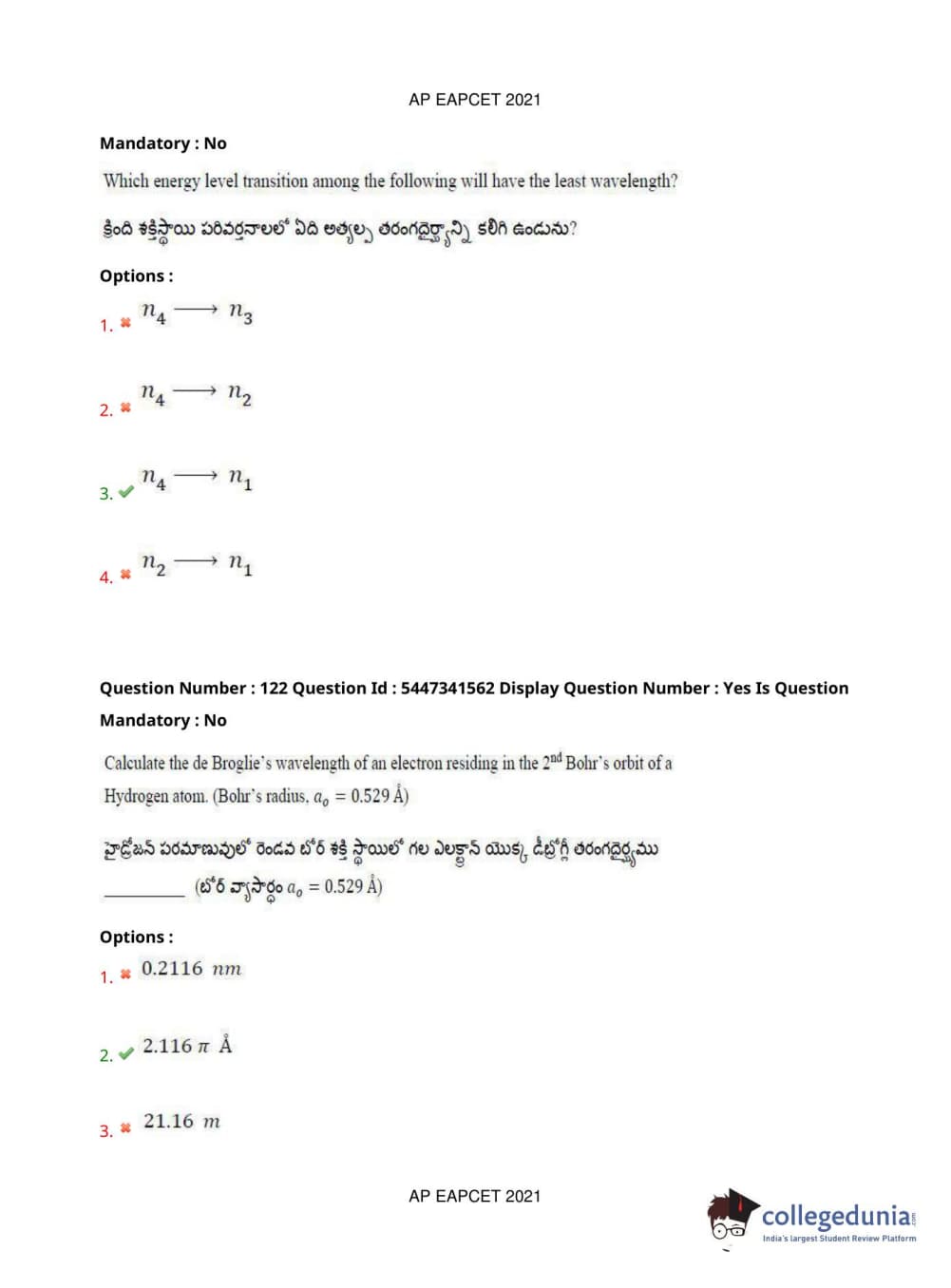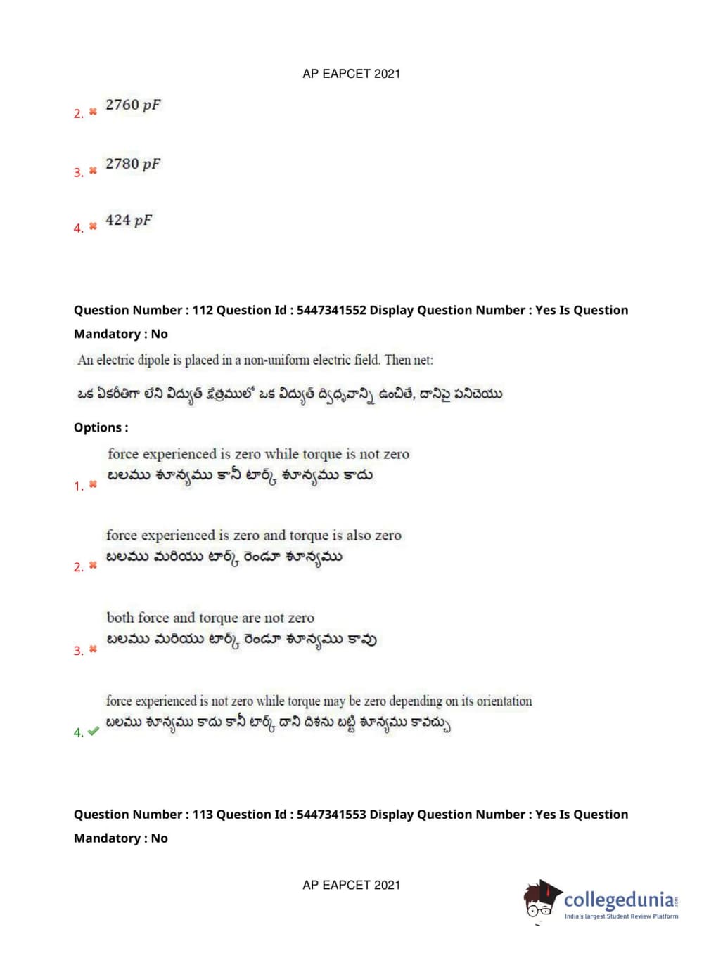 AP EAPCET 2021 Engineering Question Paper with Answer Key PDFs Afternoon Session