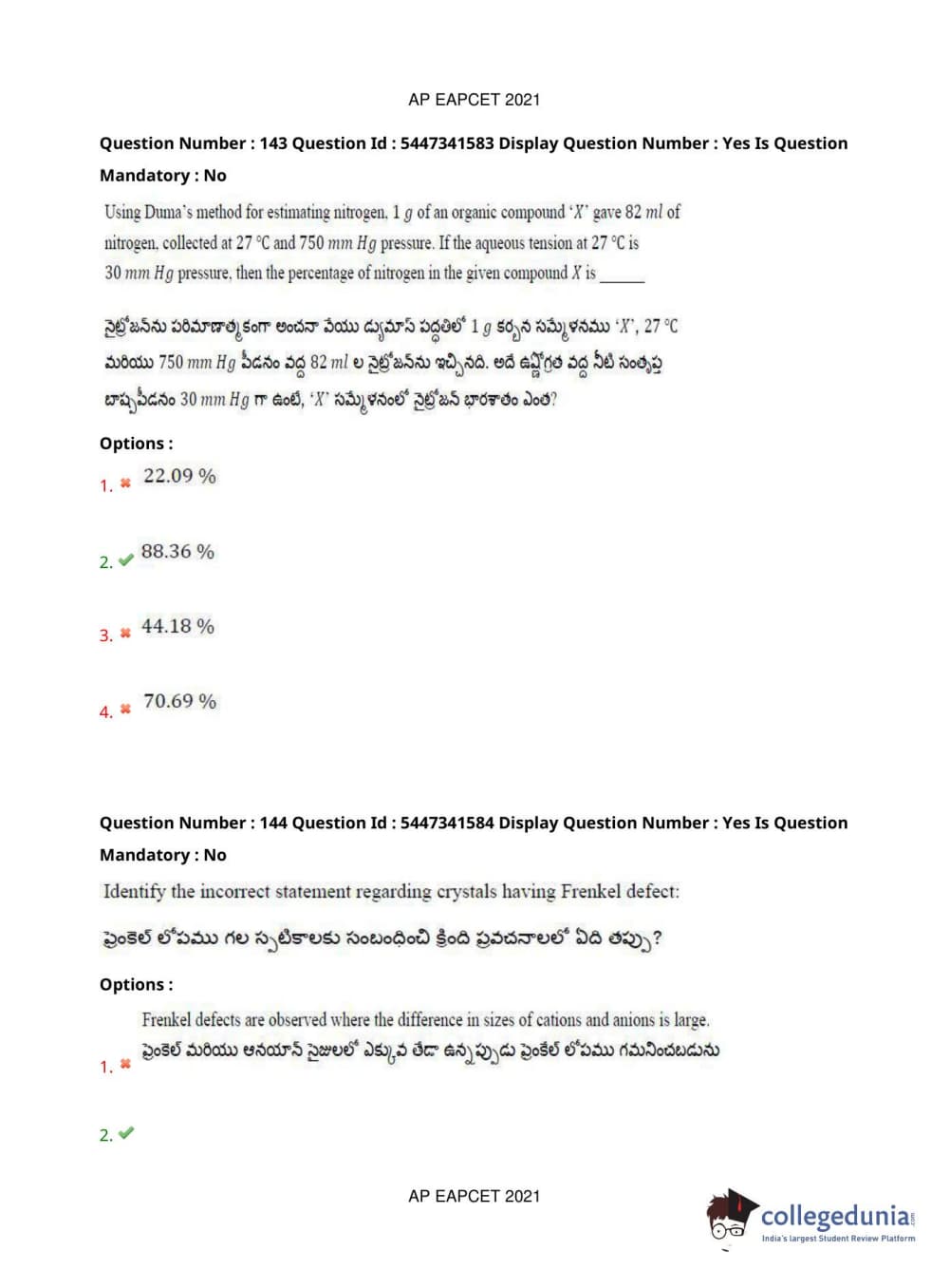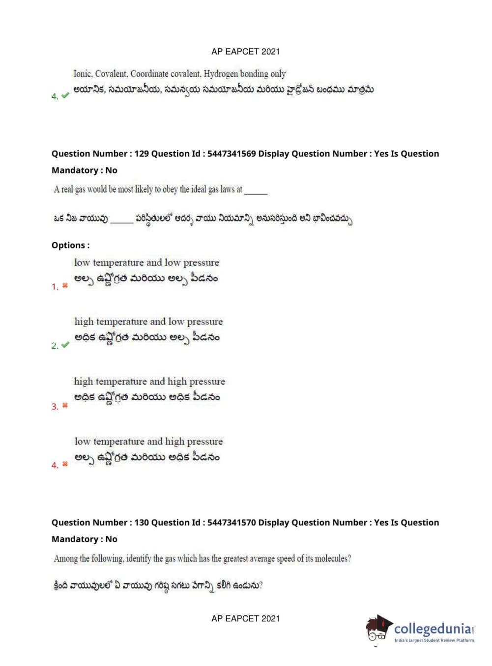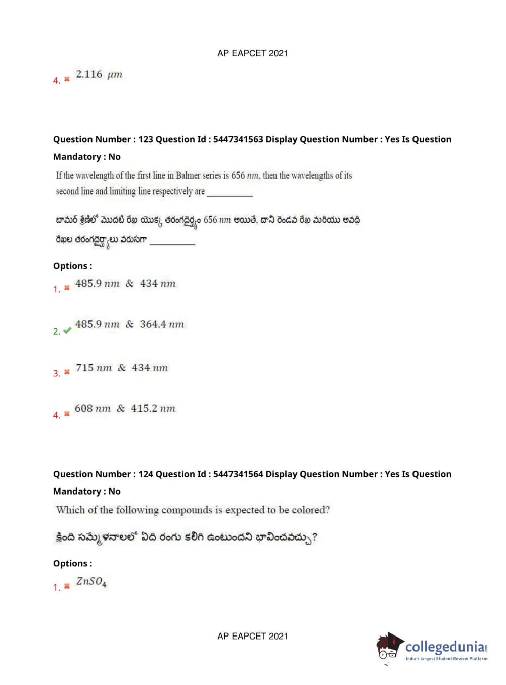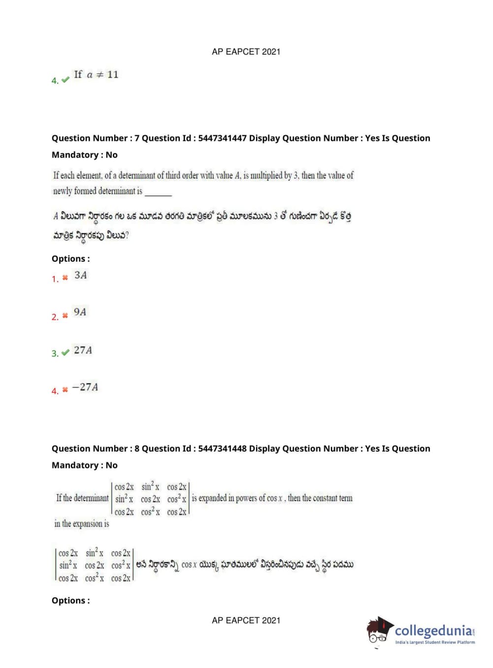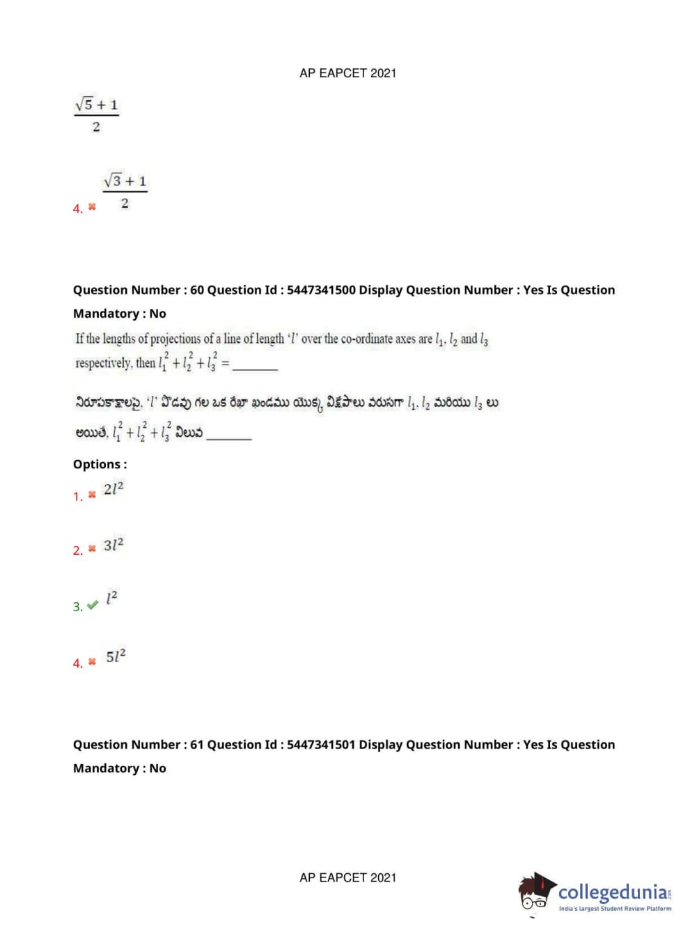 AP EAPCET 2021 Engineering Question Paper with Answer Key PDFs Afternoon Session