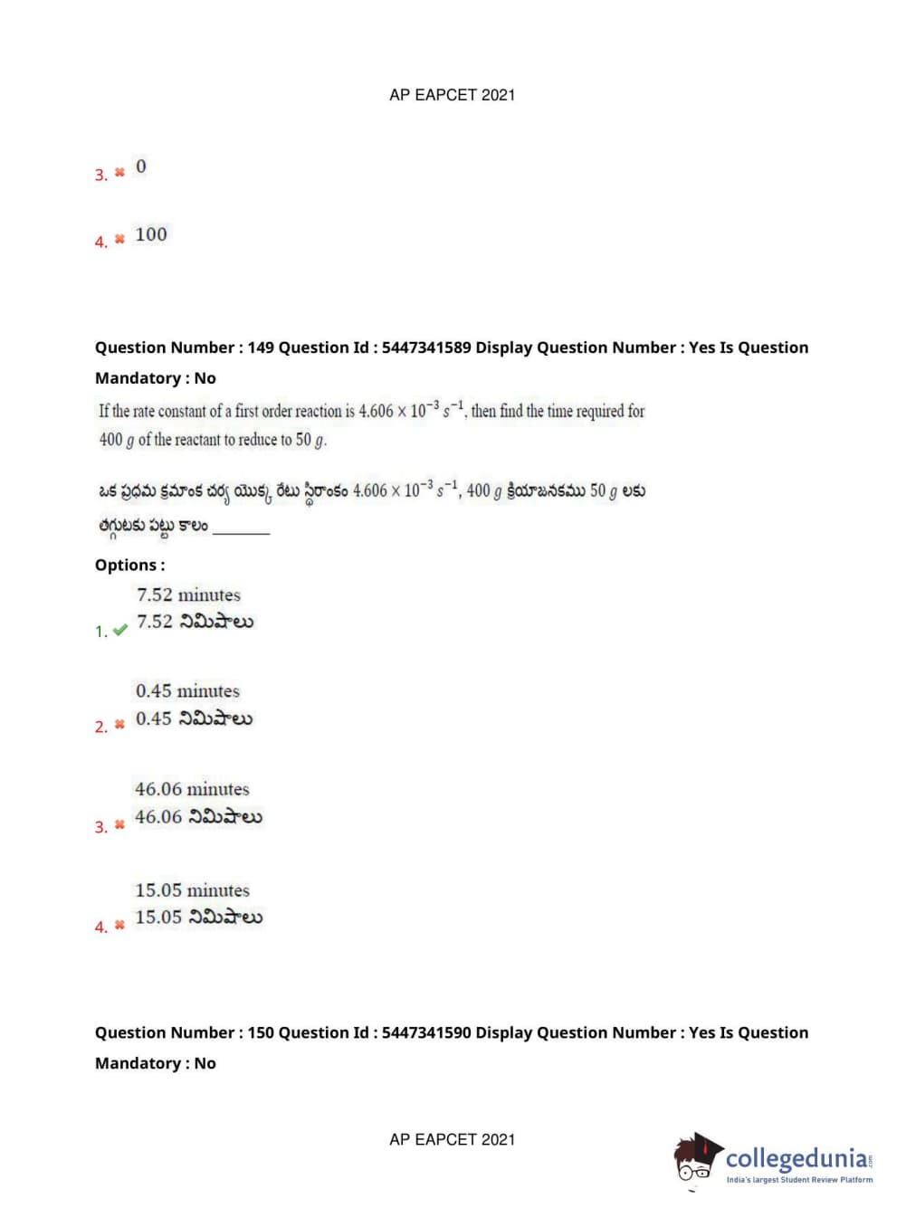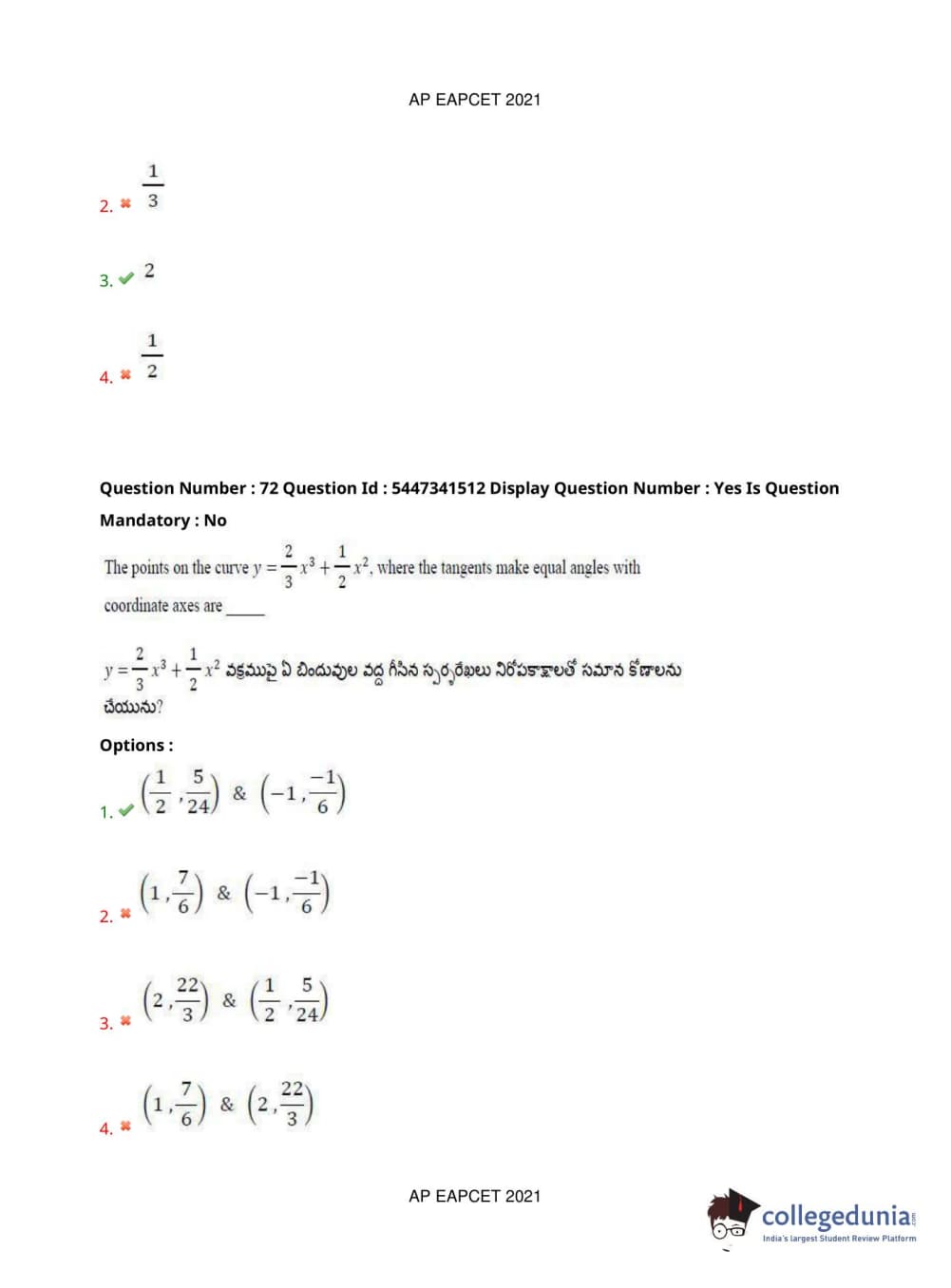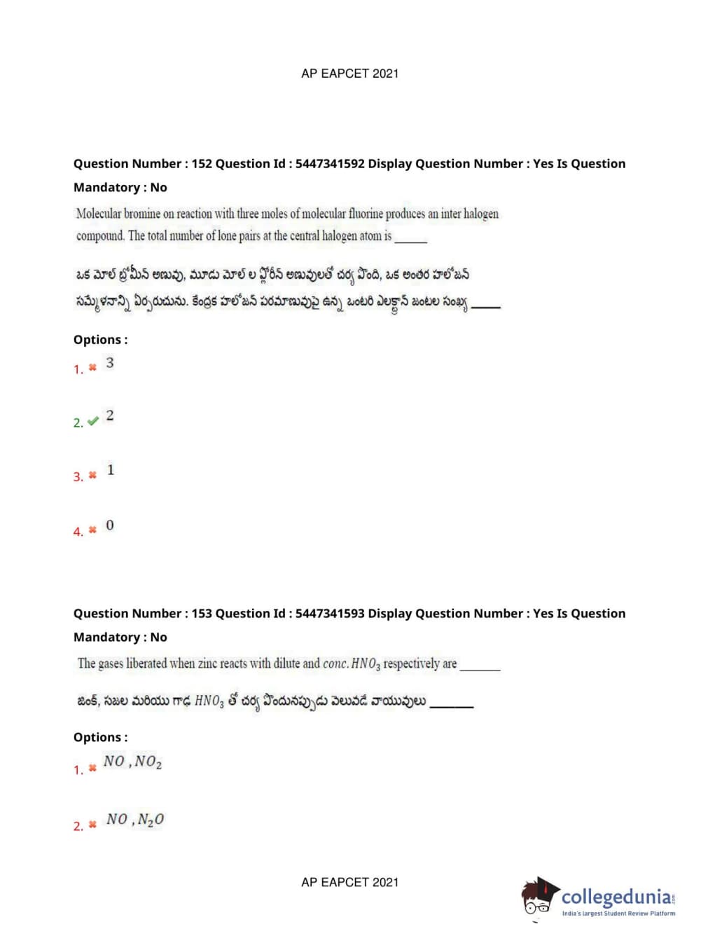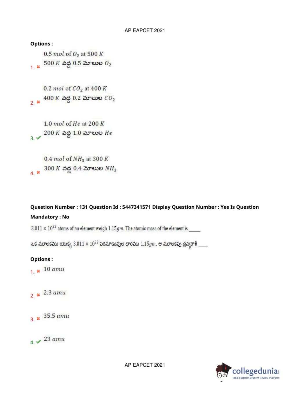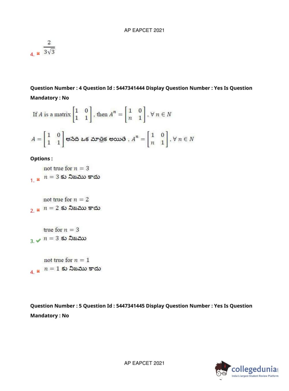 AP EAPCET 2021 Engineering Question Paper with Answer Key PDFs Afternoon Session