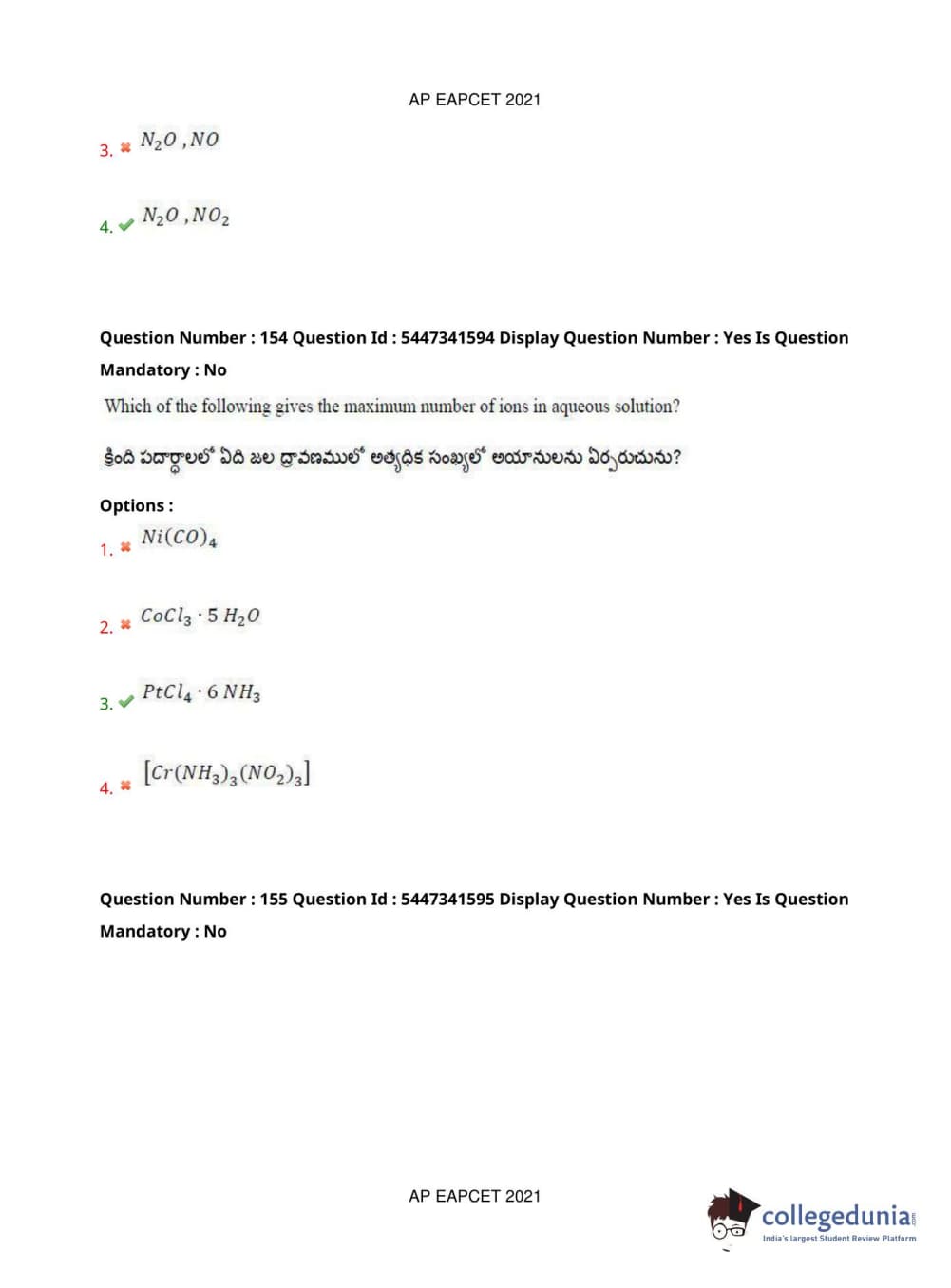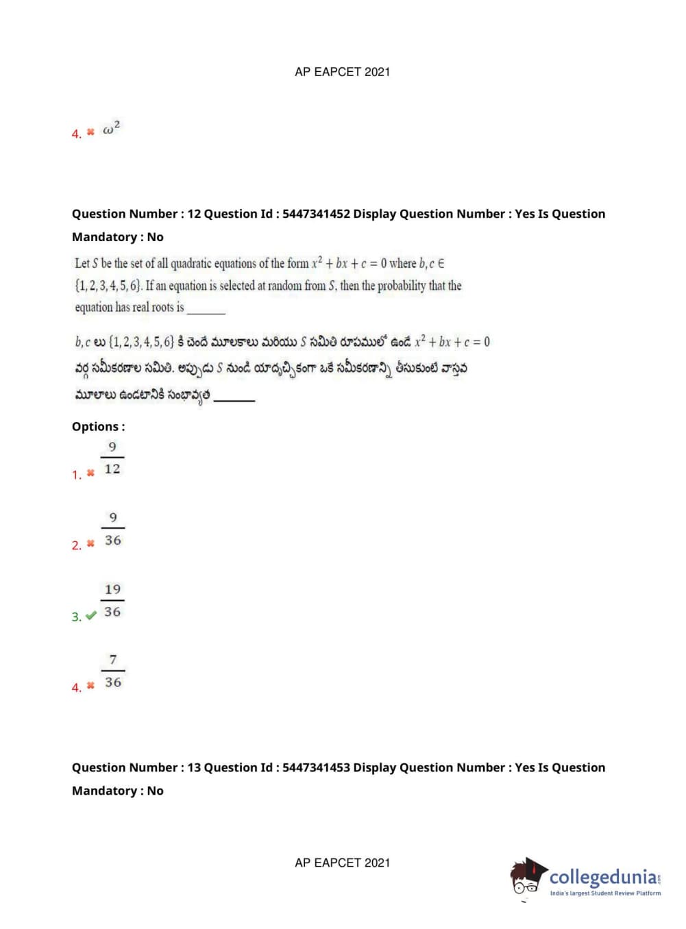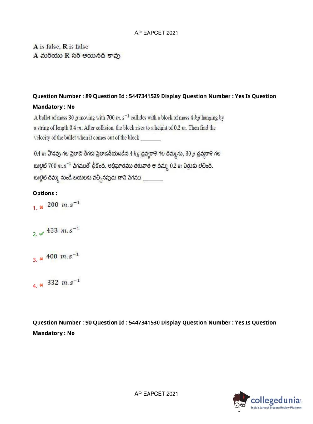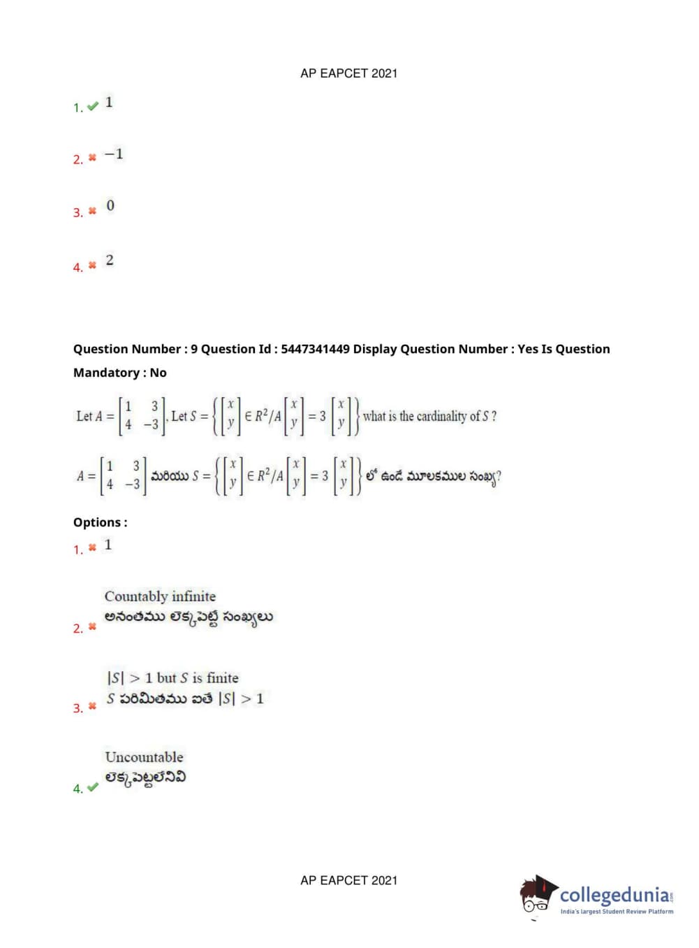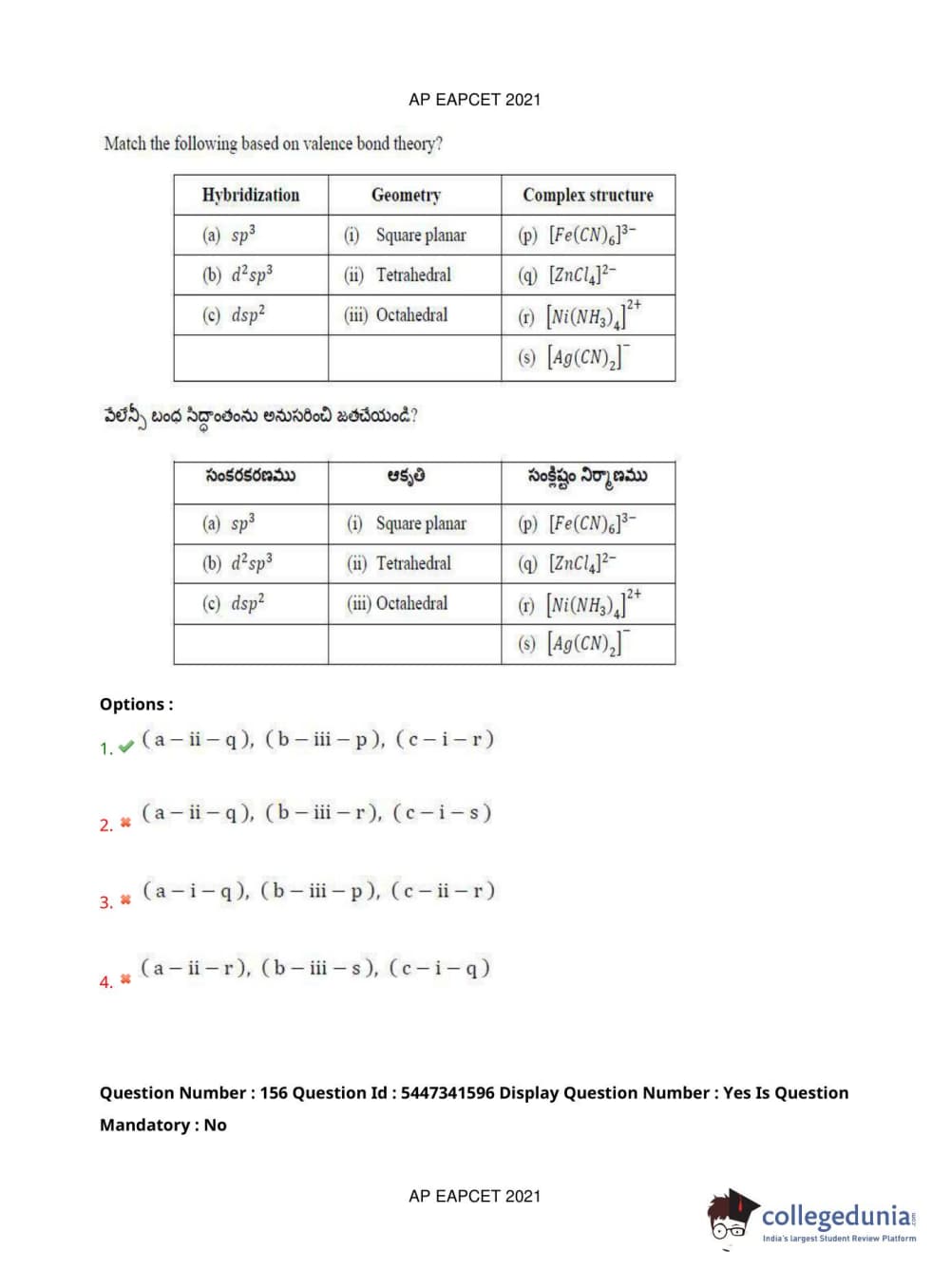AP EAPCET 2021 Engineering Question Paper with Answer Key PDFs Afternoon Session