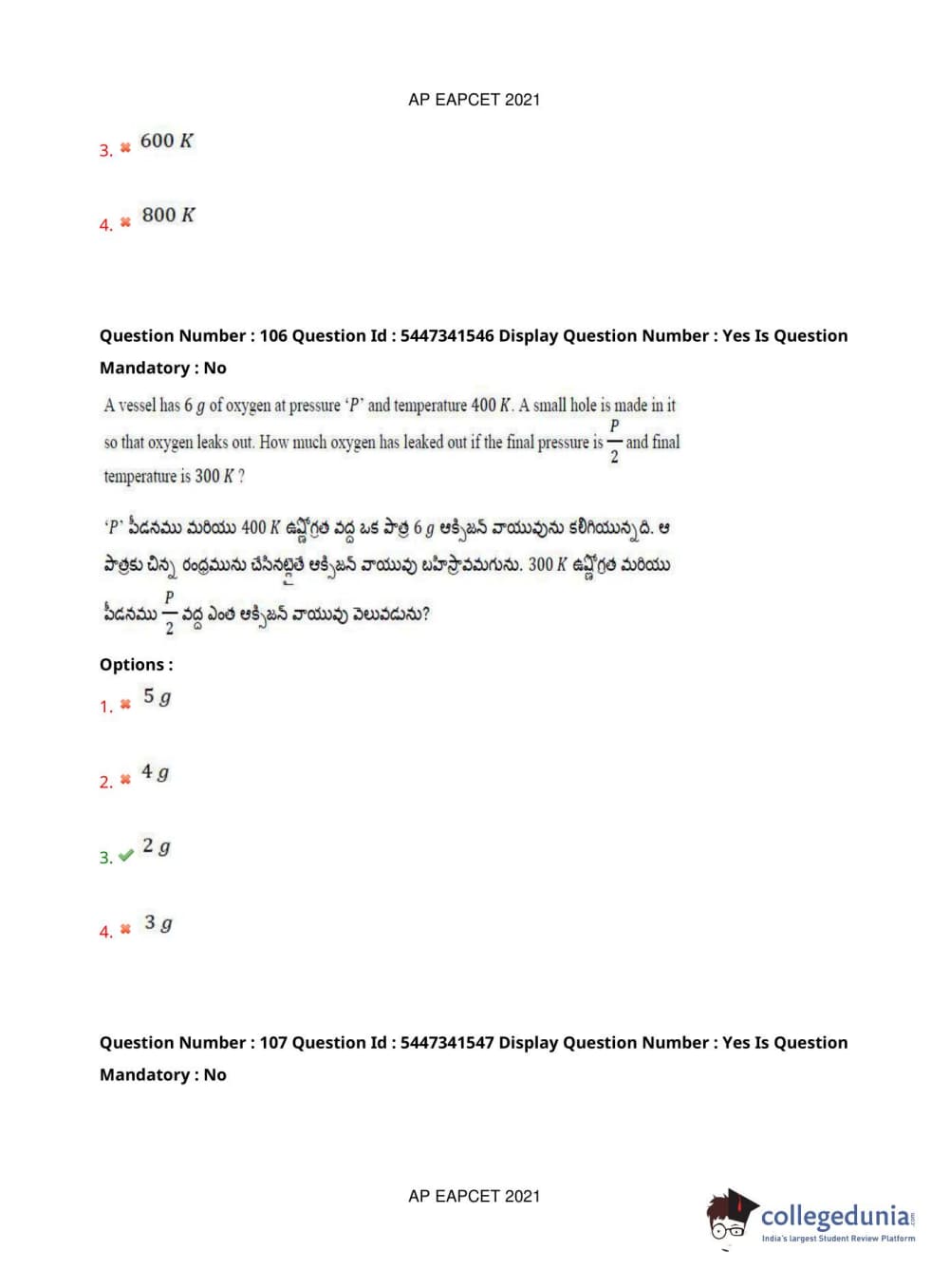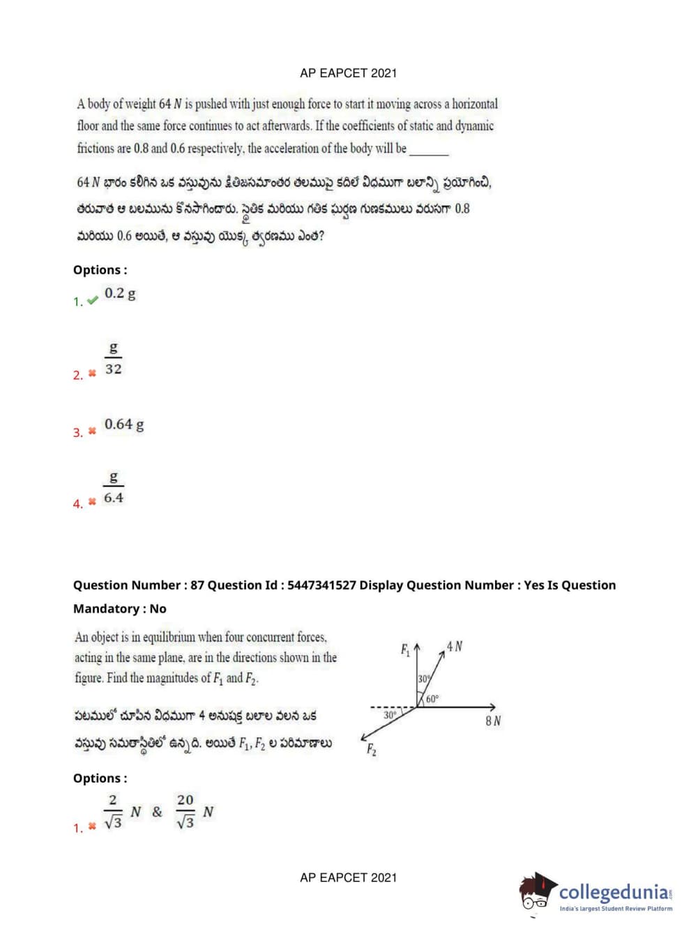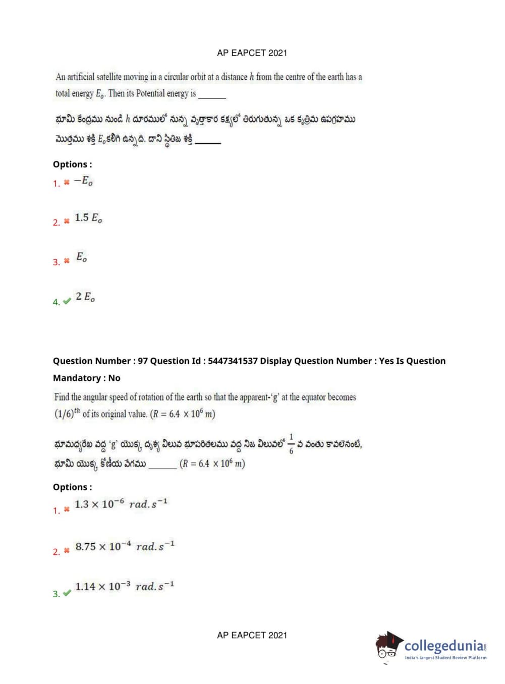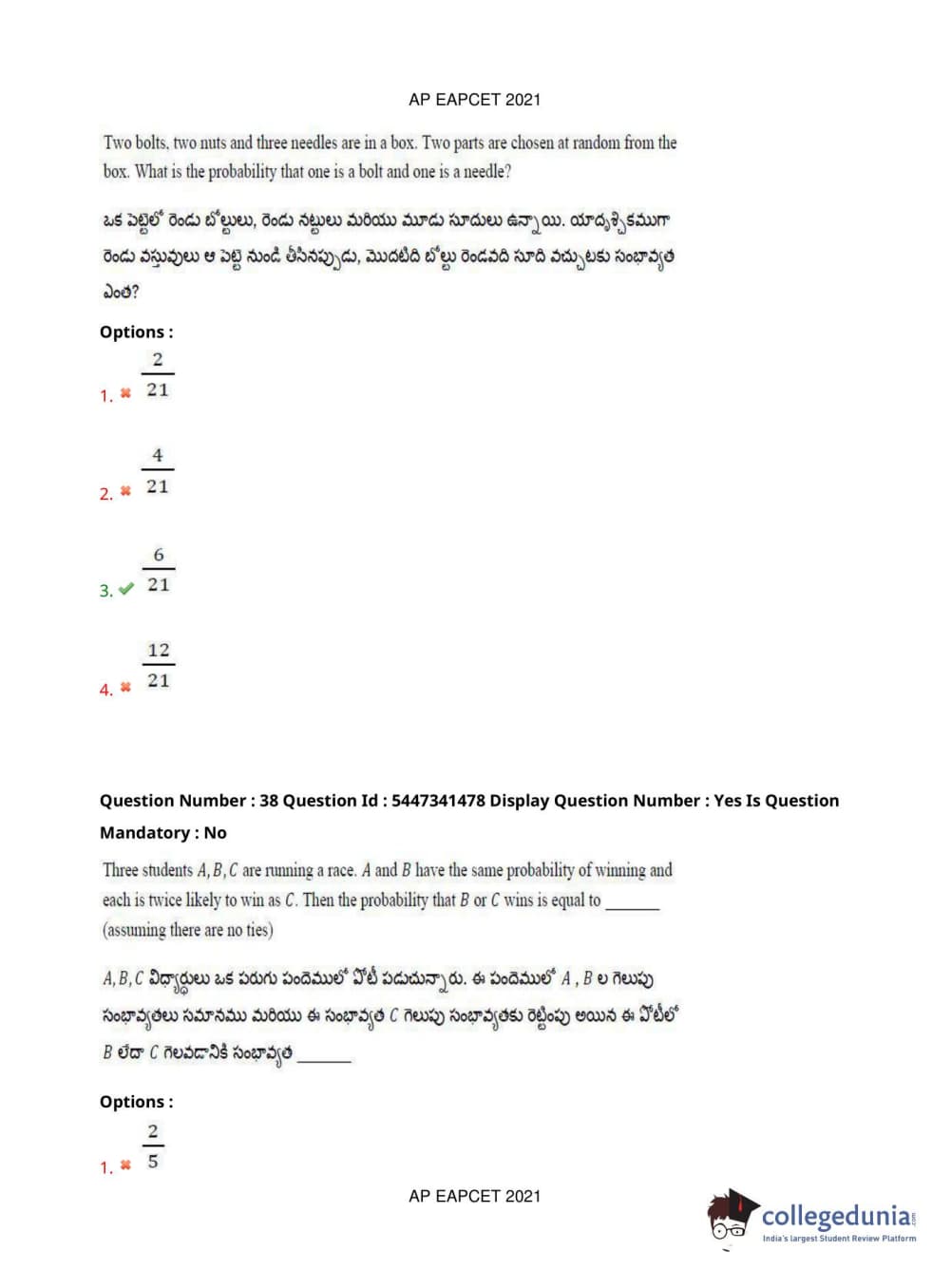 | AP EAPCET 2021 Engineering Question Paper PDF | AP EAPCET 2021 Engineering Answer Key PDF |
