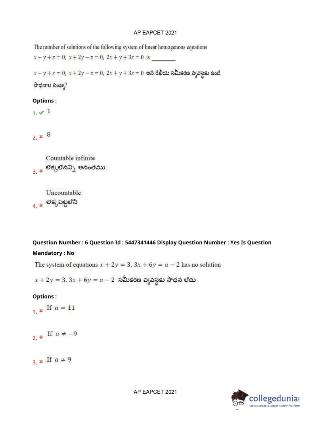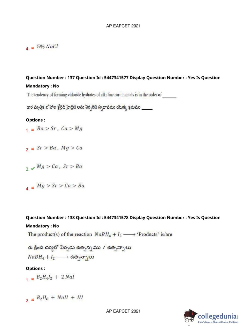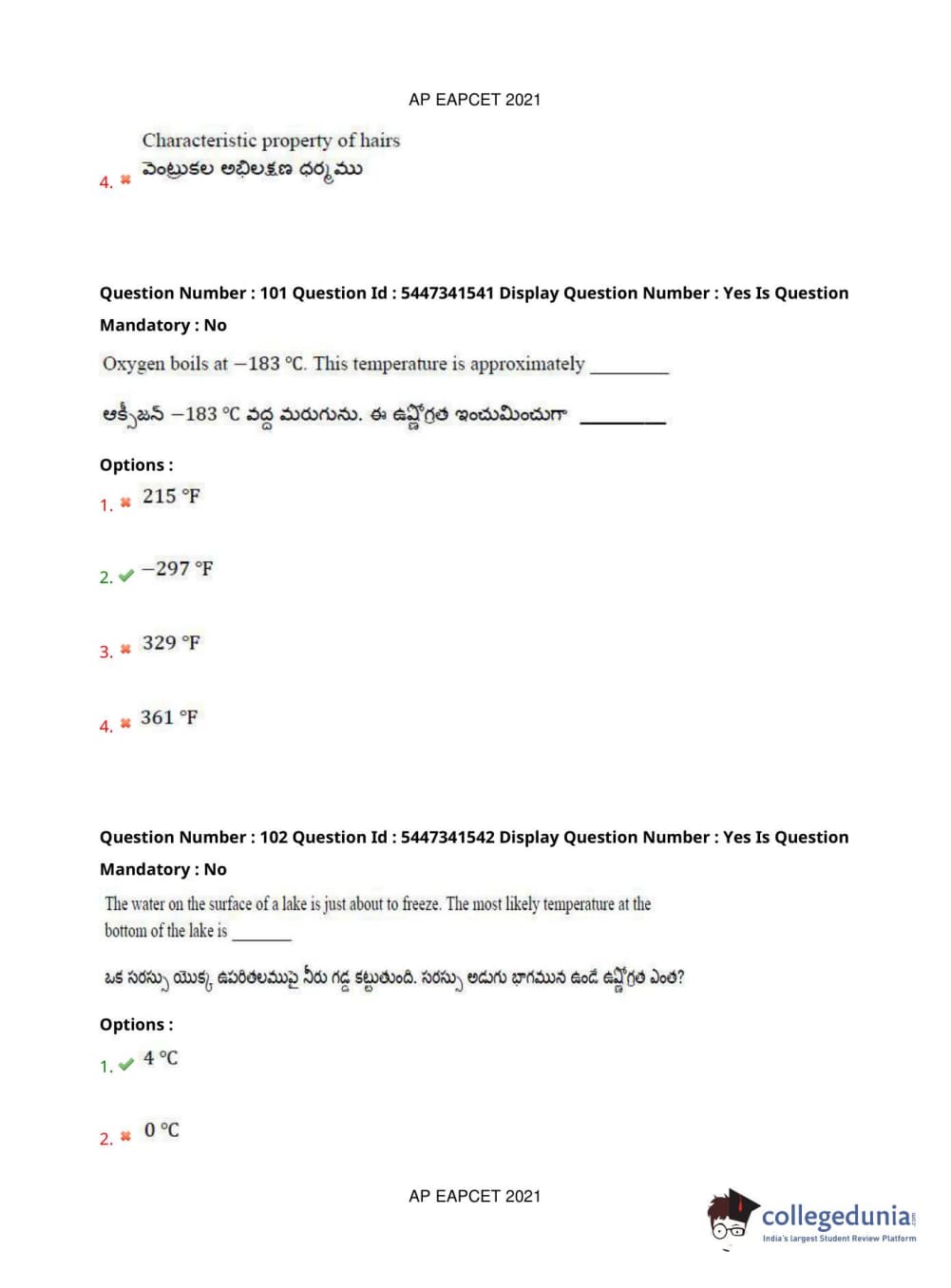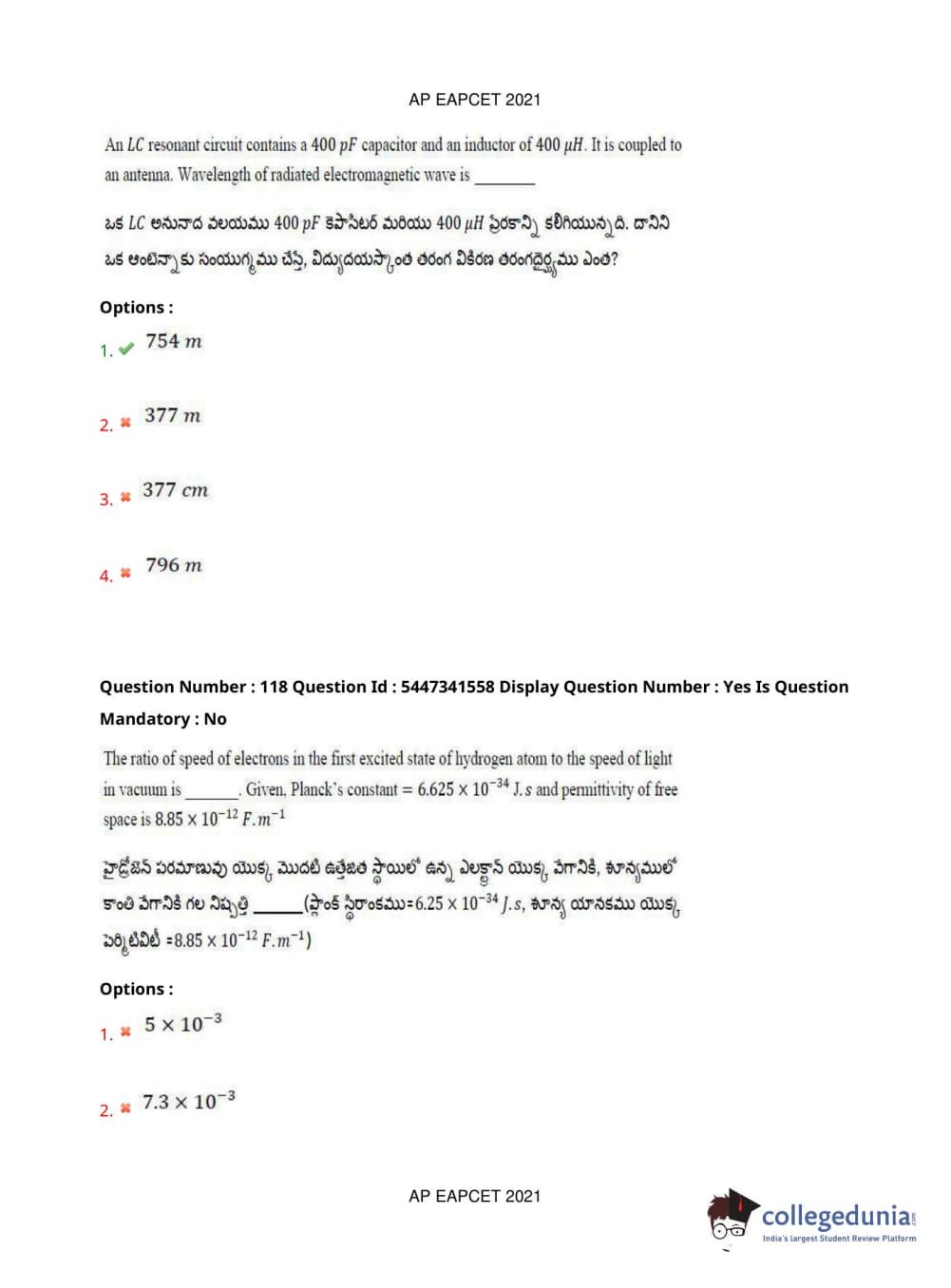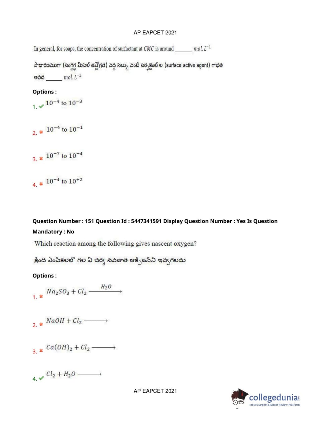 | AP EAPCET 2021 Engineering Question Paper PDF | AP EAPCET 2021 Engineering Answer Key PDF |