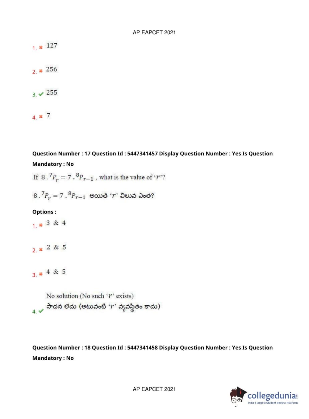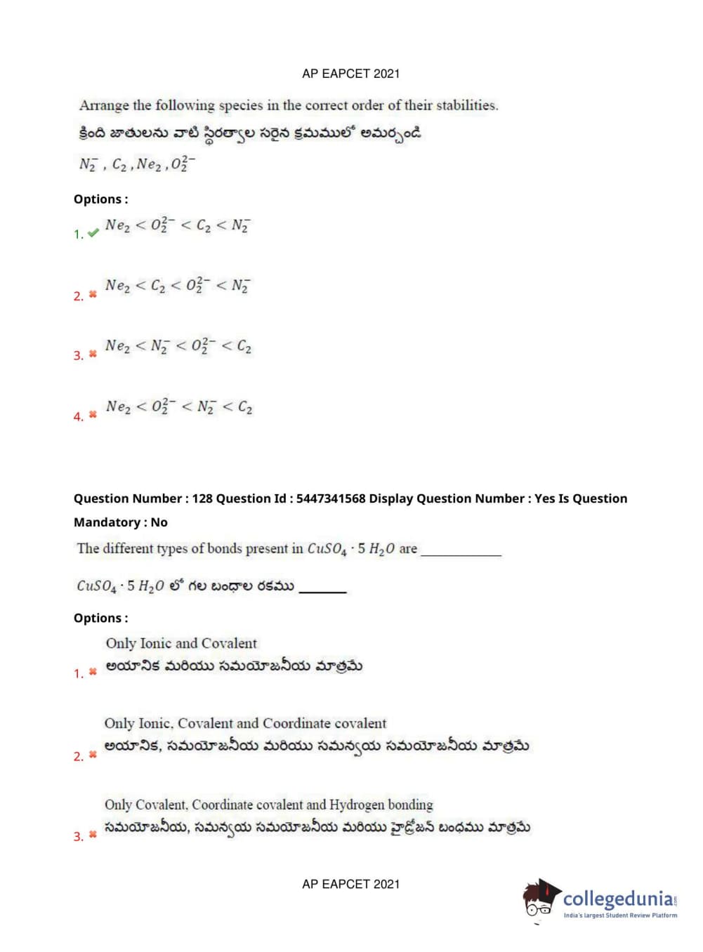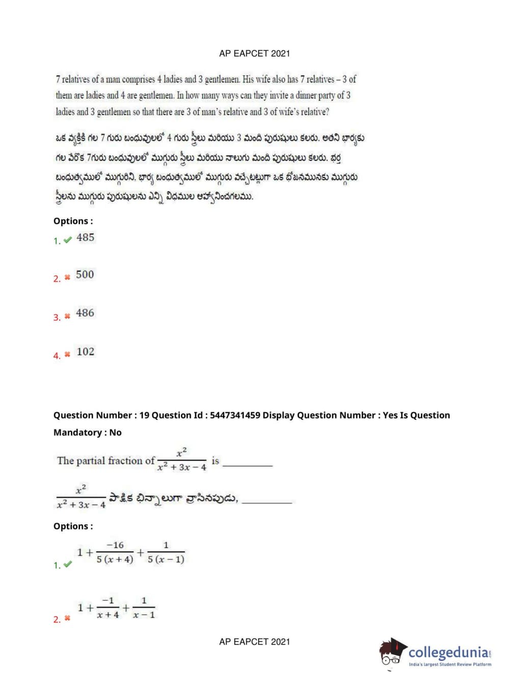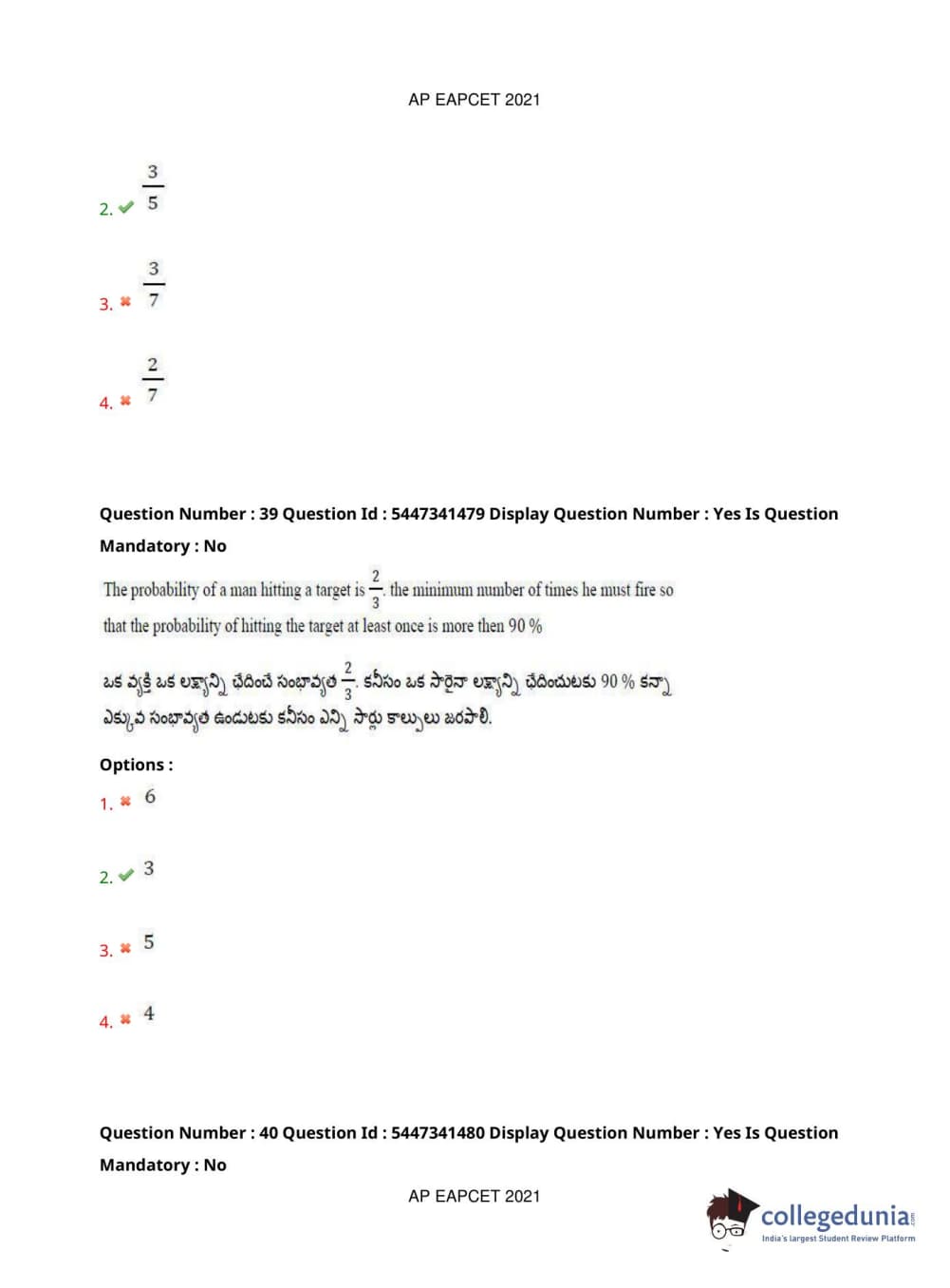 | AP EAPCET 2021 Engineering Question Paper PDF | AP EAPCET 2021 Engineering Answer Key PDF |