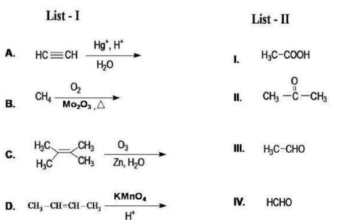 Thus, the correct reaction where oxygen is not one of the products is option (4). Quick Tip: Always check the products of each reaction to see if oxygen is involved in the final state of the compounds formed.