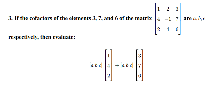 and the cofactors of entries 3, 7, and 6, which are the elements \( A_{13}, A_{23}, A_{33} \) respectively. We define: