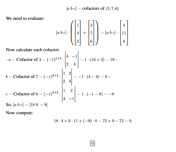 Quick Tip: When summing dot products, it’s efficient to combine vectors first, then apply cofactors. Pay attention to signs in cofactor expansion.