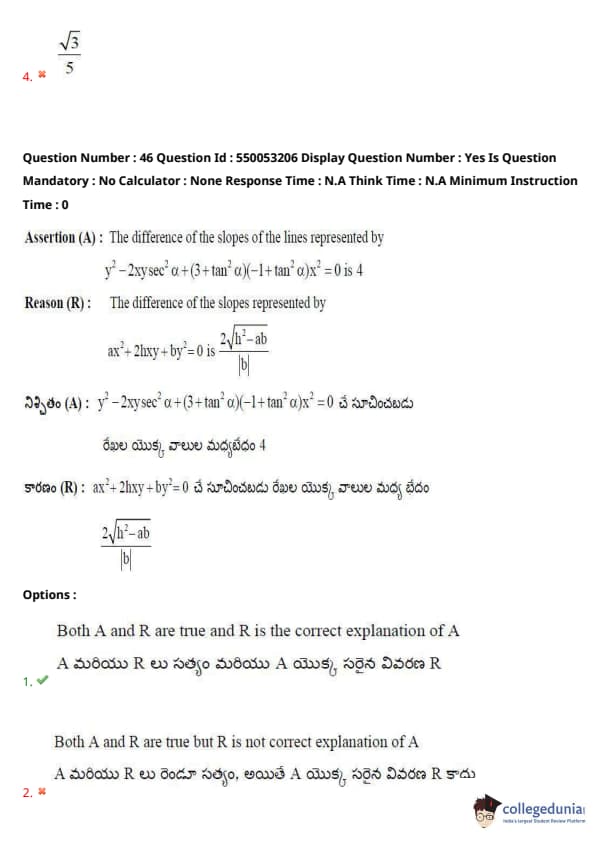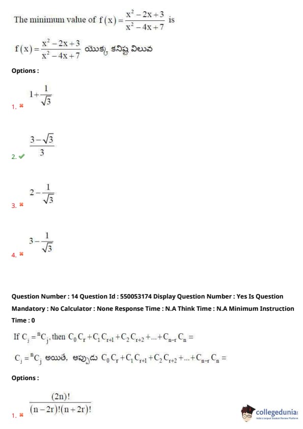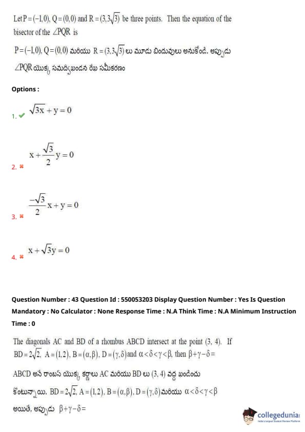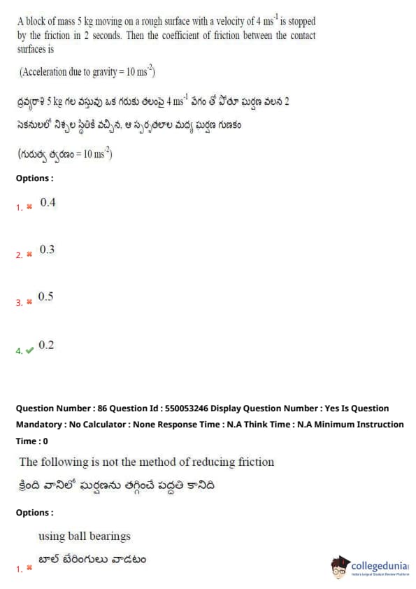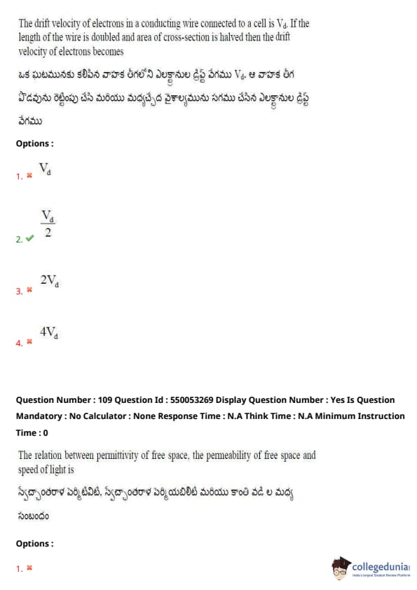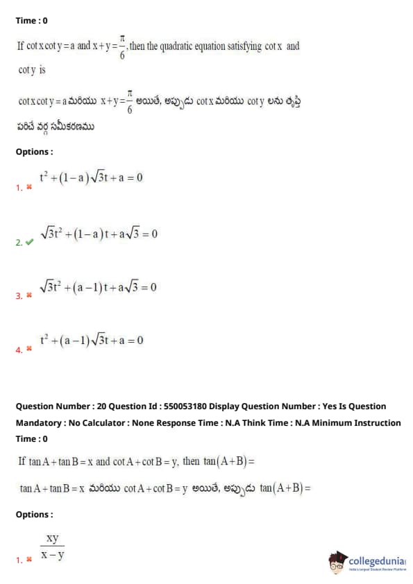 AP EAPCET Previous Year Question Paper