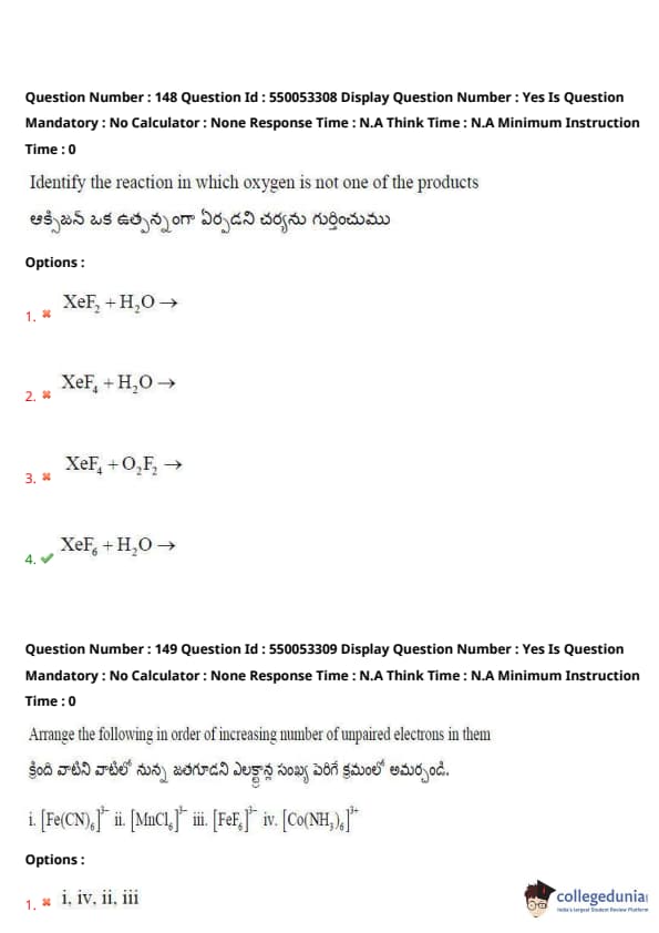 Thus, the correct order is option (3) iv, i, iii, ii. Quick Tip: When analyzing the number of unpaired electrons in coordination compounds, consider the metal’s oxidation state and the strength of the ligands involved.
