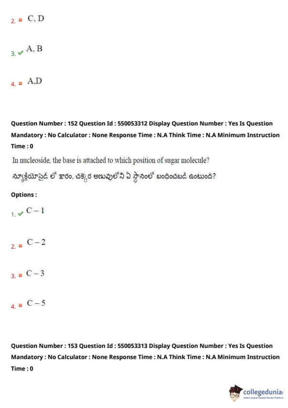Thus, the correct answer is (1) C-1. Quick Tip: In nucleosides, the base is always attached to the C-1 position of the sugar. This is key in distinguishing nucleosides from nucleotides.