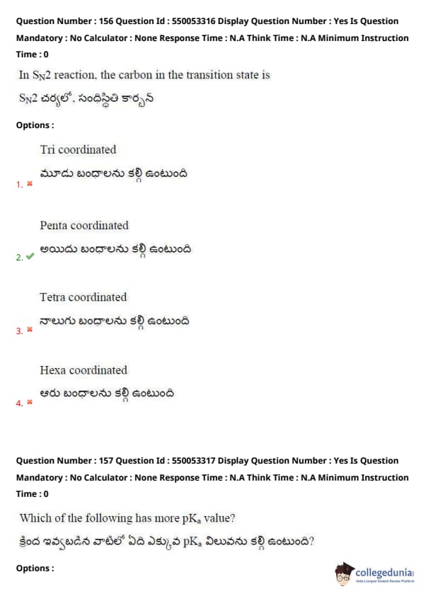 Thus, the correct answer is (3) Tetra coordinated. Quick Tip: In an SN2 reaction, remember that the transition state forms a five-coordinate structure with the carbon atom, which is tetra coordinated.
