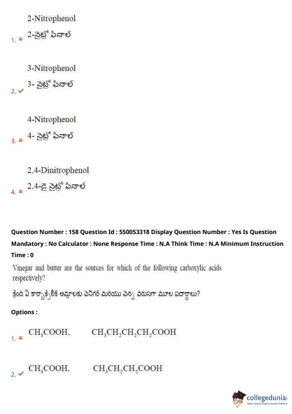 Thus, the correct answer is option (1). Quick Tip: Remember that vinegar contains acetic acid, and butter contains butyric acid, which have distinct structures and functional groups.