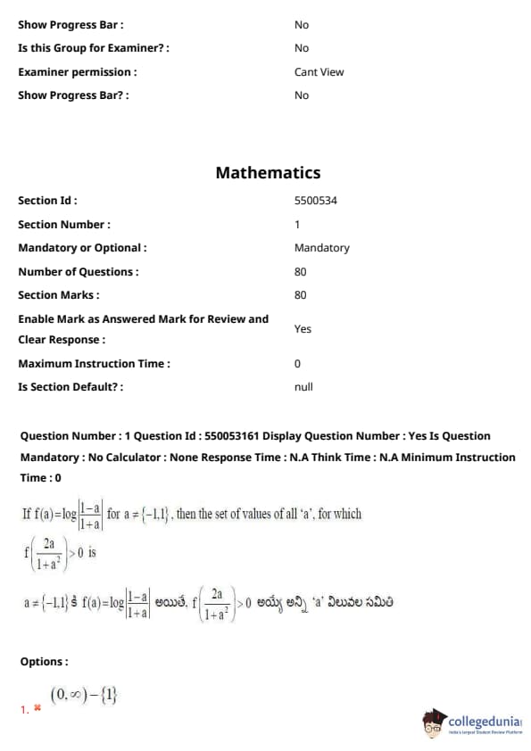 AP EAPCET (AP EAMCET) 2023 Question Paper include 160 MCQ-based questions in total, 80 from Mathematics, 40 from physics, and 40 from chemistry. Each candidate will be awarded +1 for correct answers, however, there will be no negative marking for incorrect responses. Students will get 3 hours to attempt AP EAPCET 2023 Question Paper. Check AP EAPCET Exam Pattern 2023