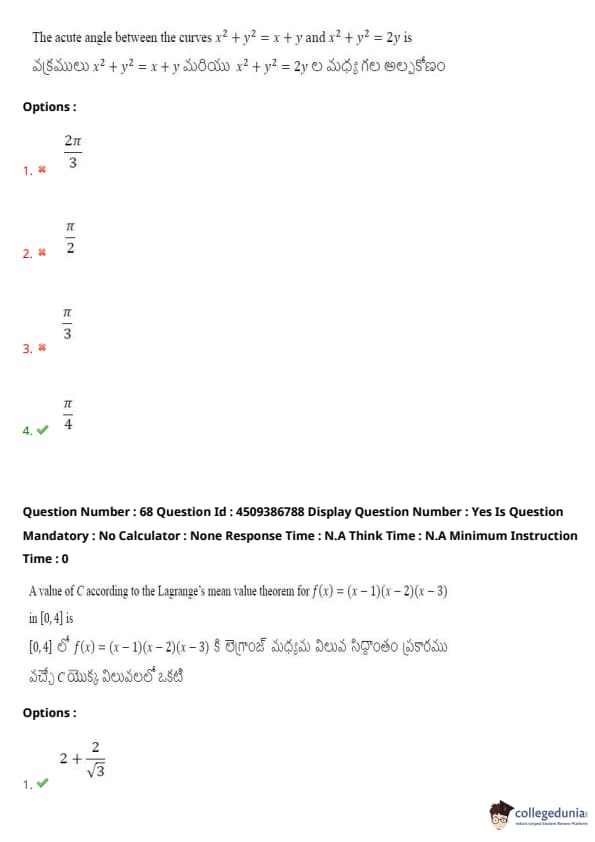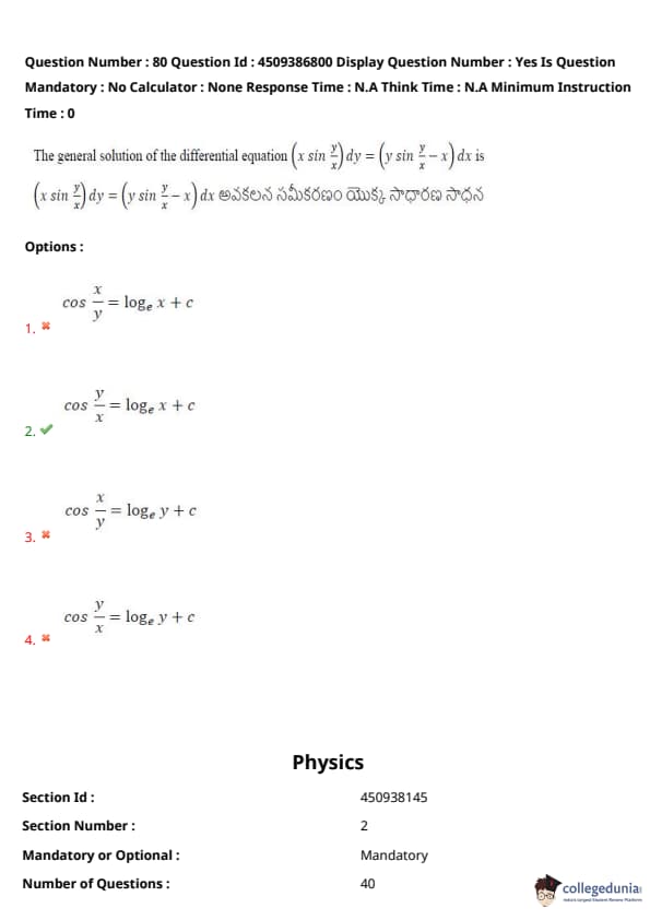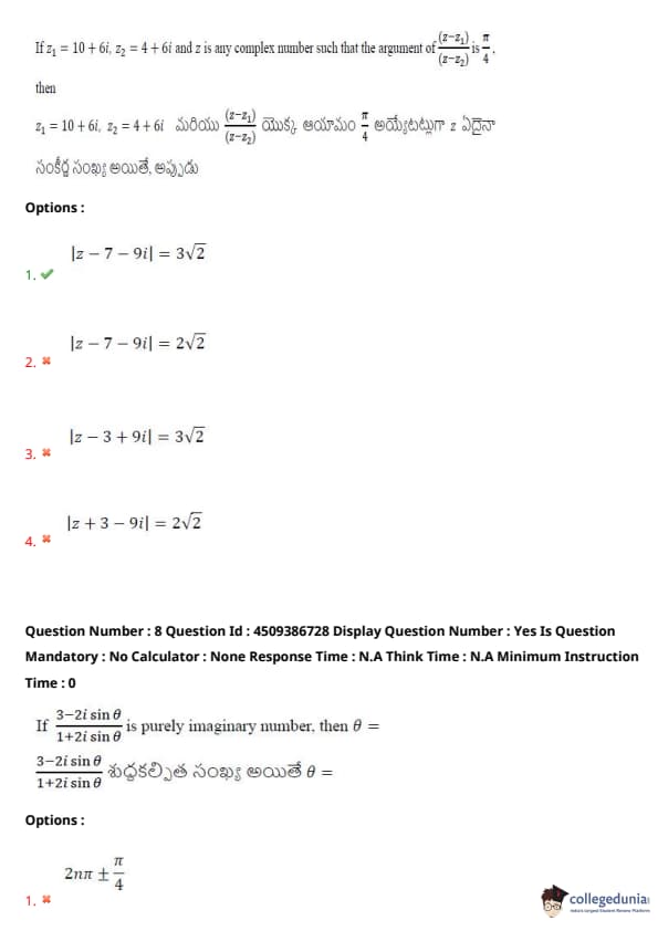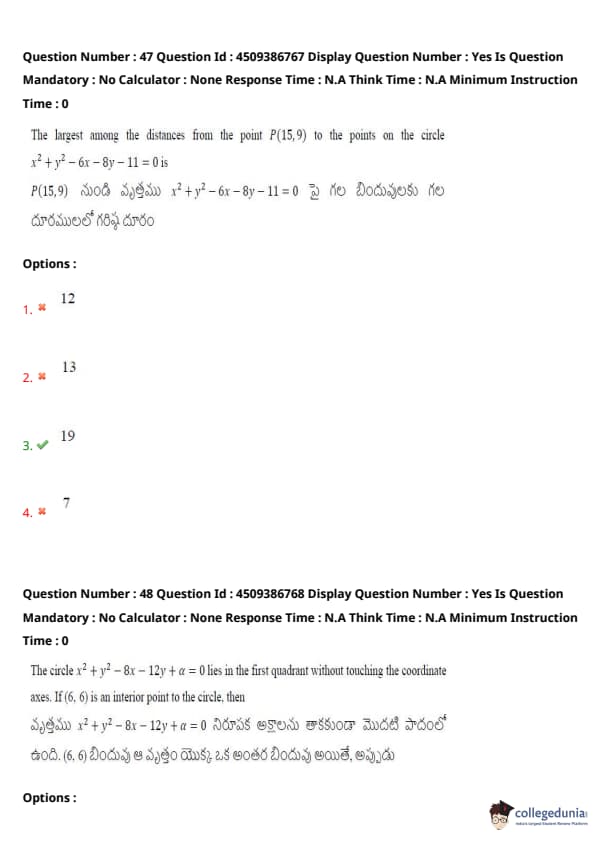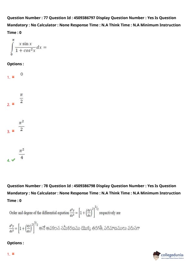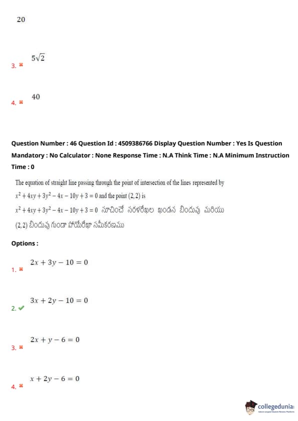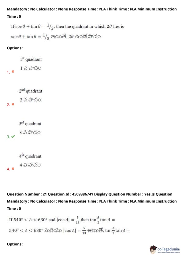 | AP EAPCET 2024 May 20 Shift 2 Question Paper with Answer Key | Check Solution |