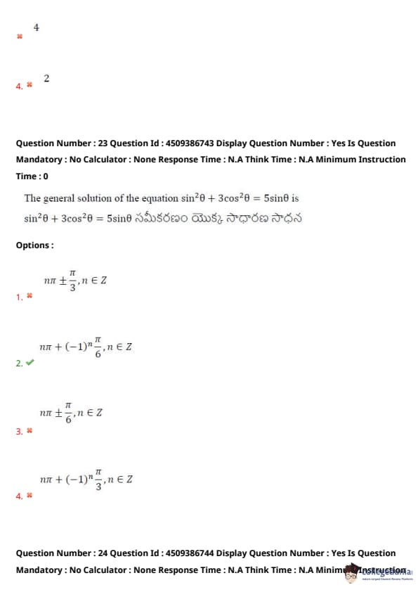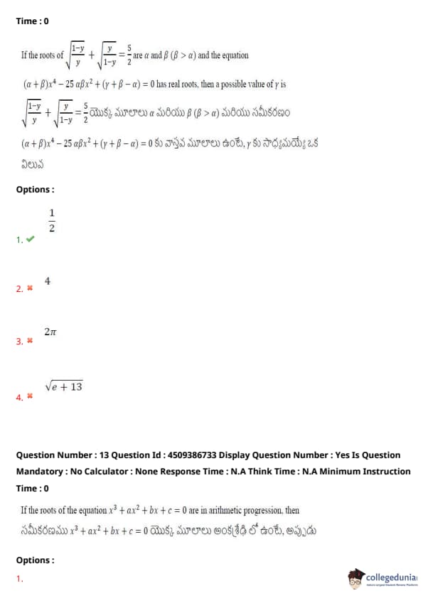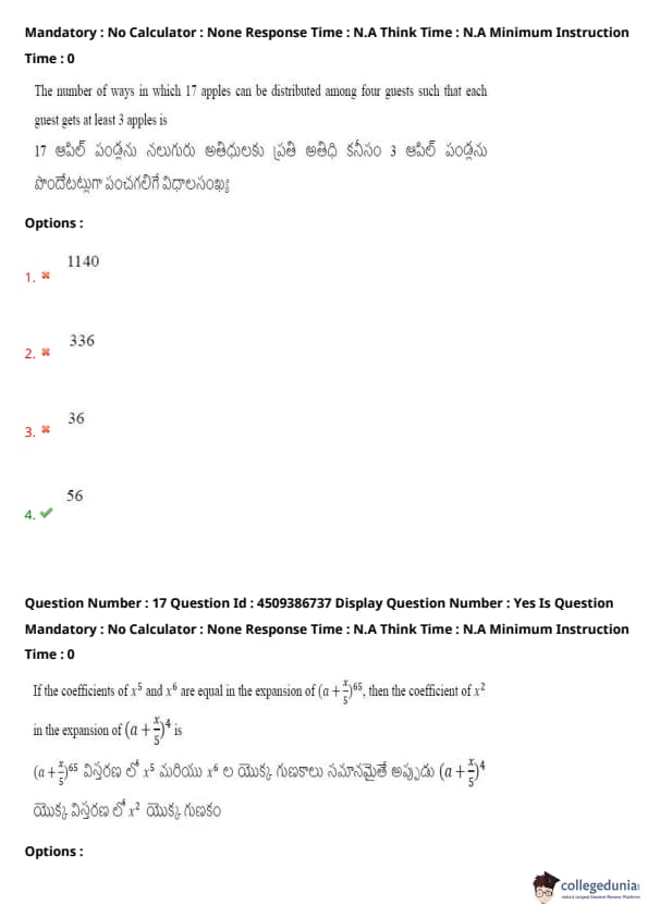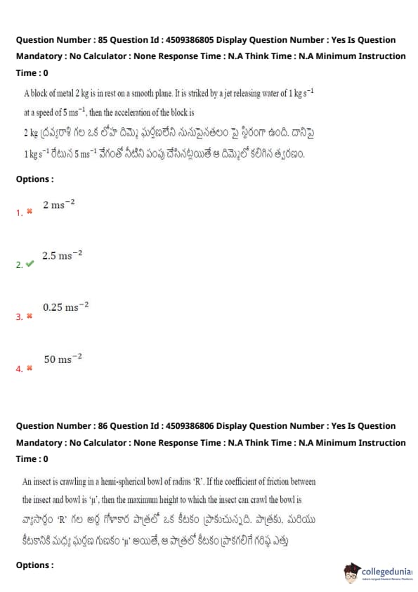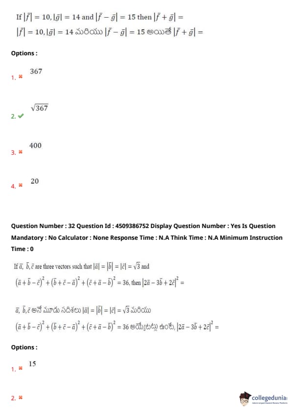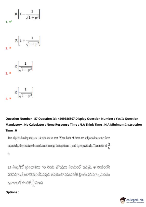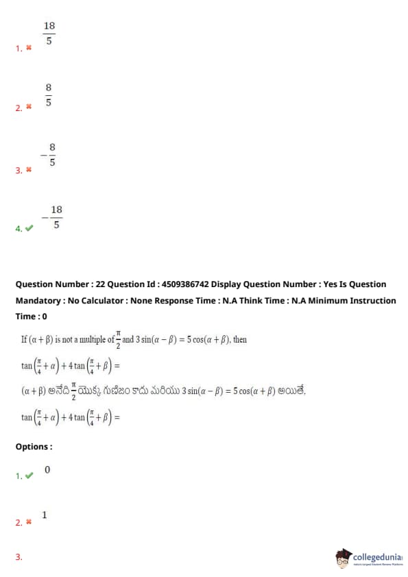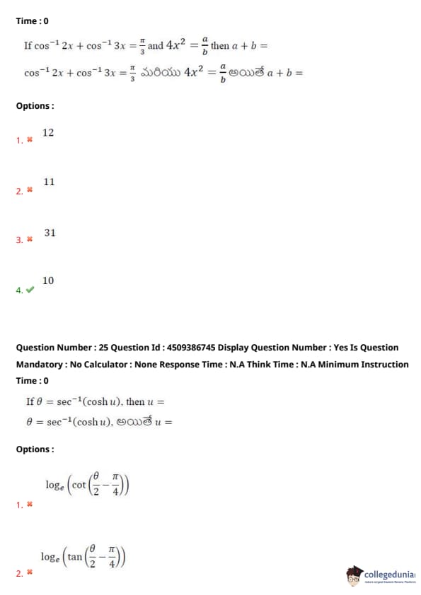 | AP EAPCET 2024 May 20 Shift 2 Question Paper with Answer Key | Check Solution |
