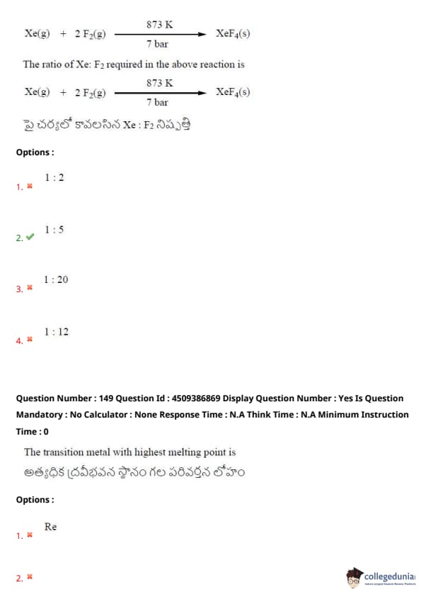 The ratio of Xe: F\textsubscript{2} required in the above reaction is: