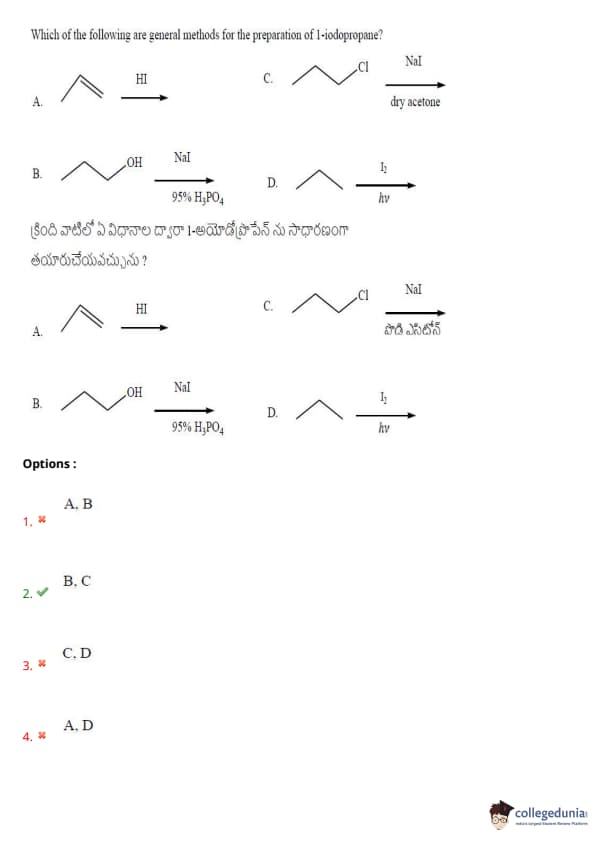 Which of the following are general methods for the preparation of 1-iodopropane?